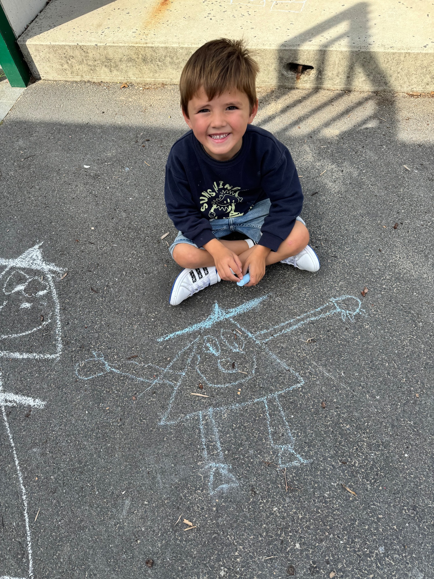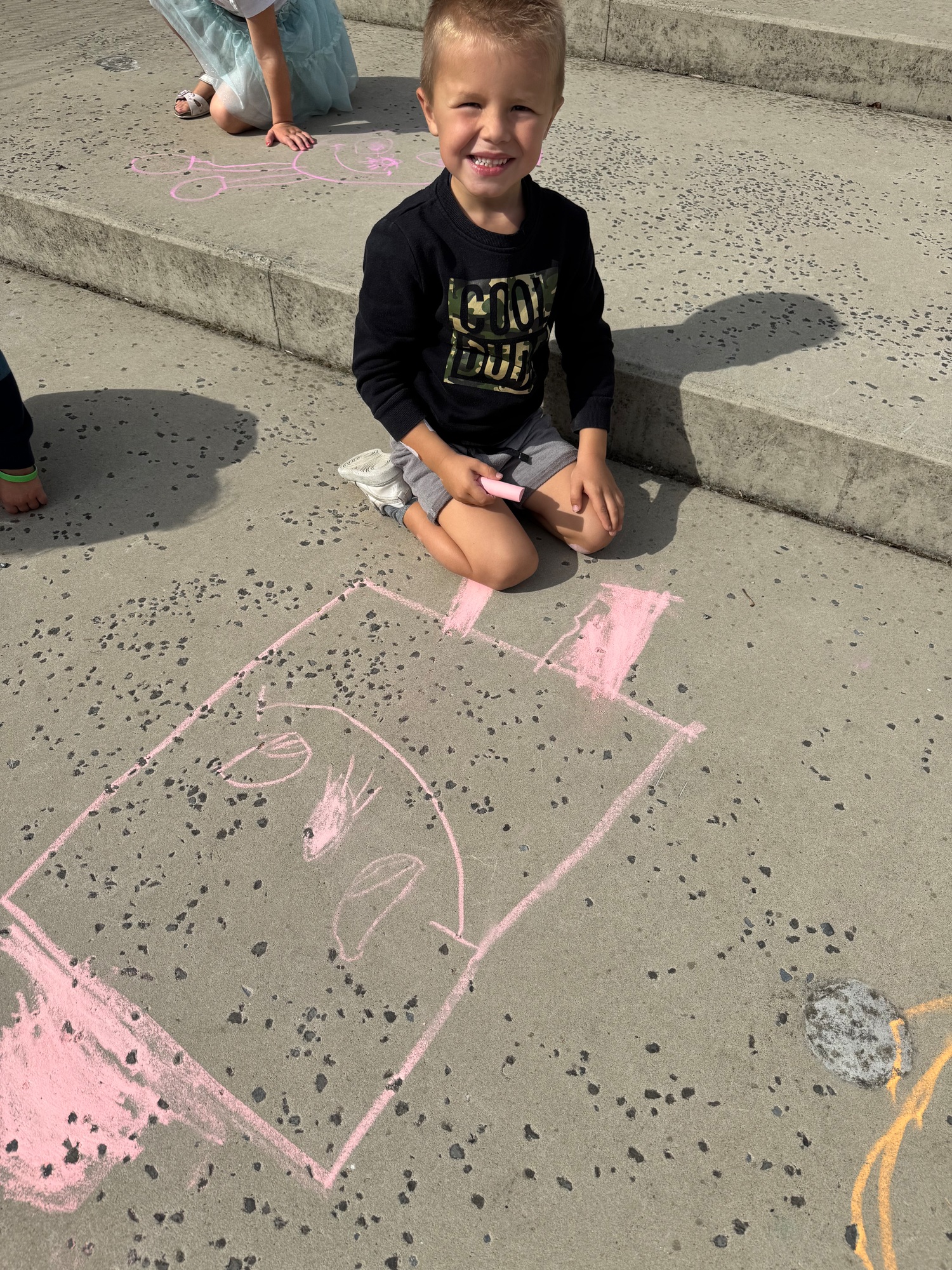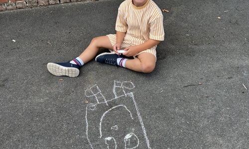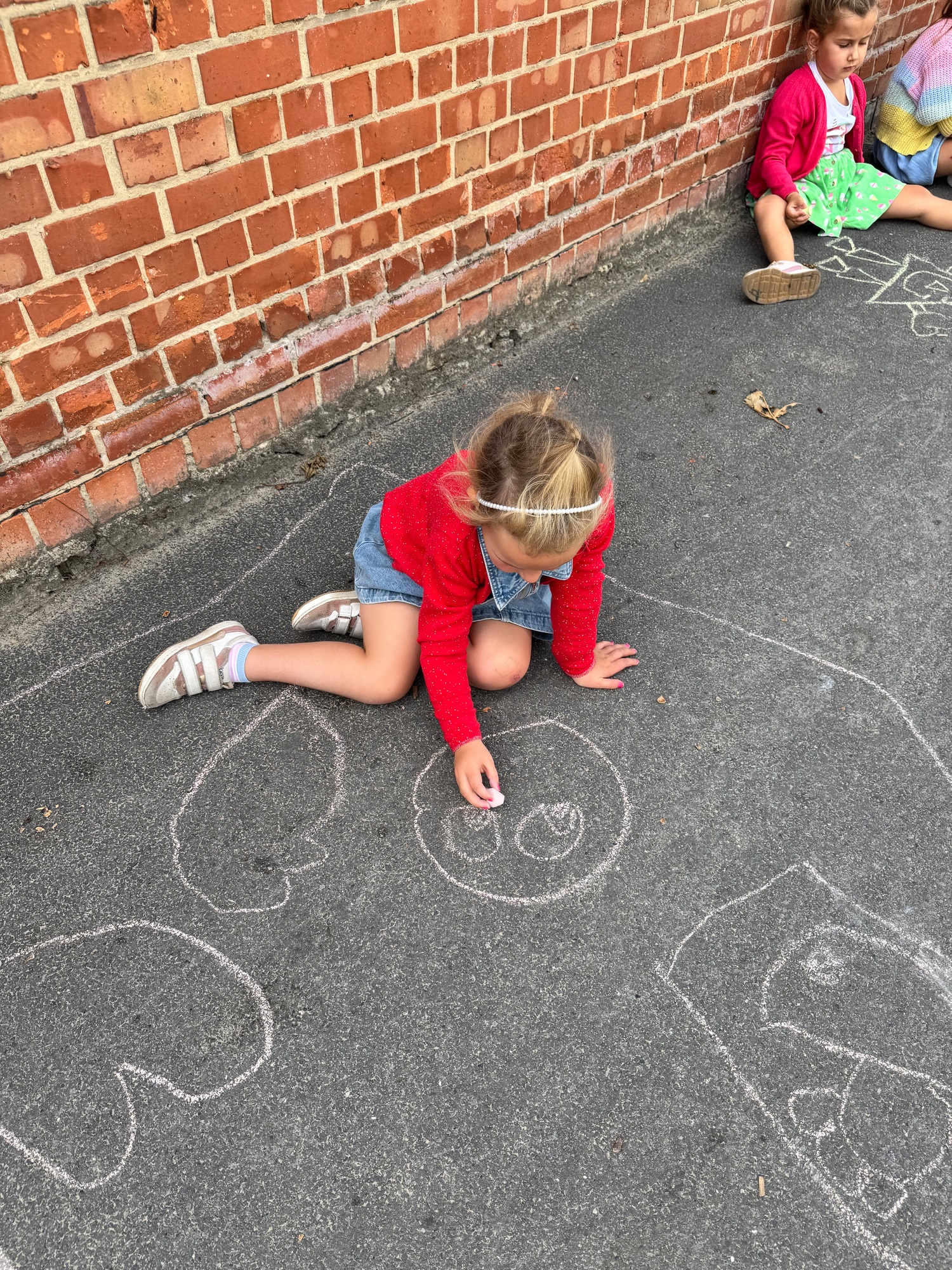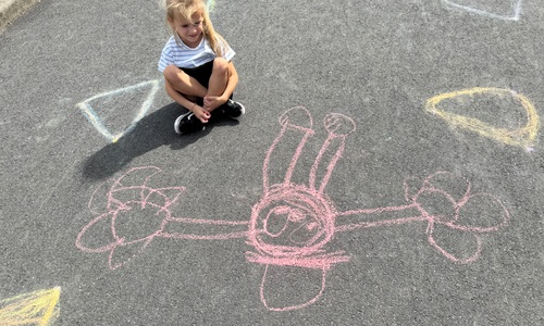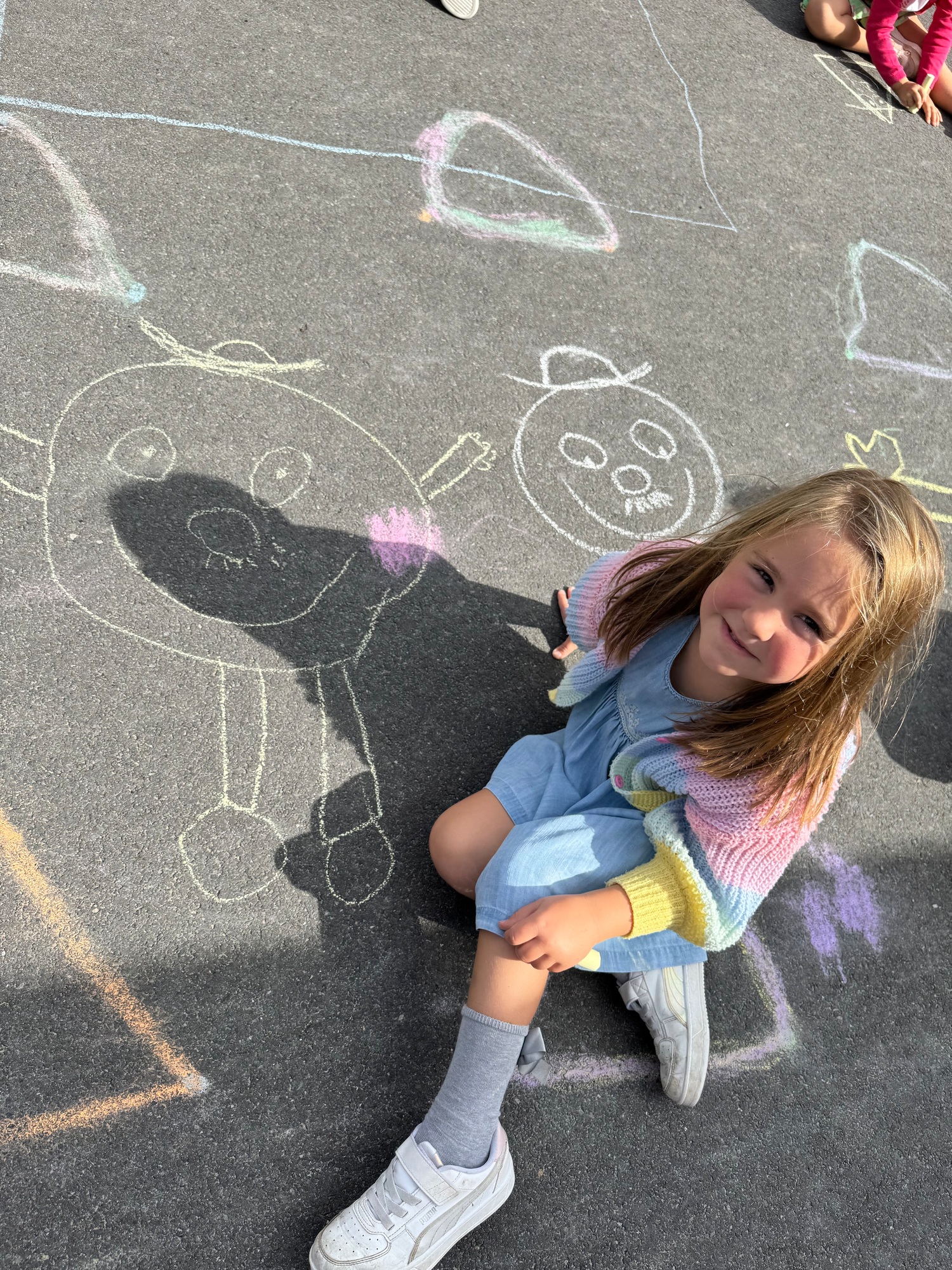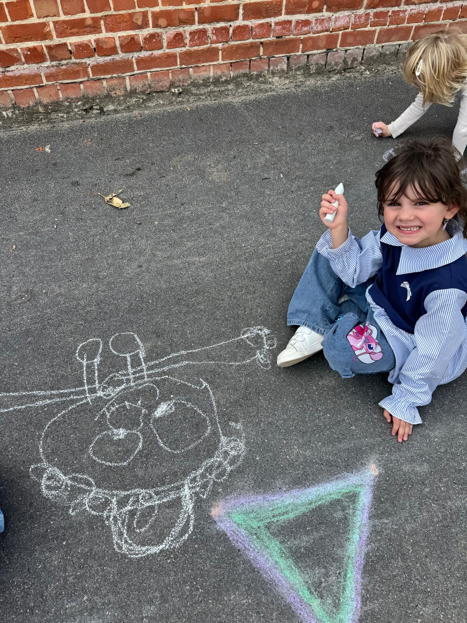 3KC Krullenbollen jullie mee? Meneertje Cirkel en Meneertje Driehoek krijten op de grond in de wachtzone.