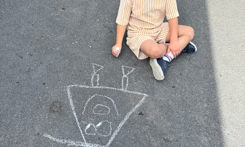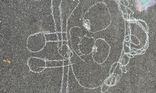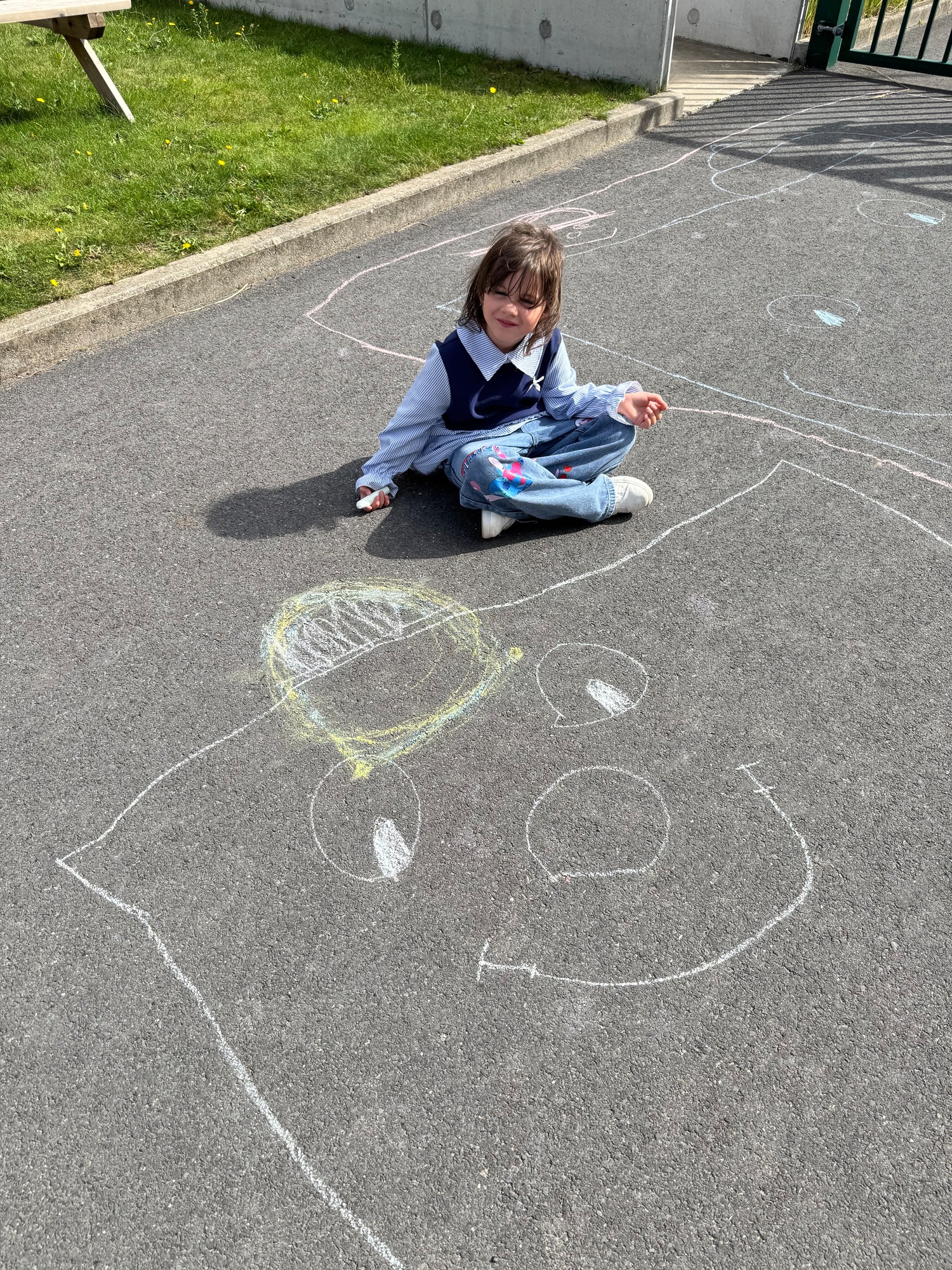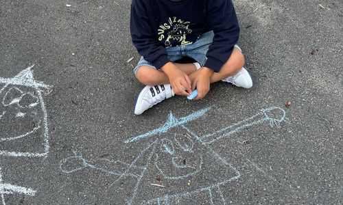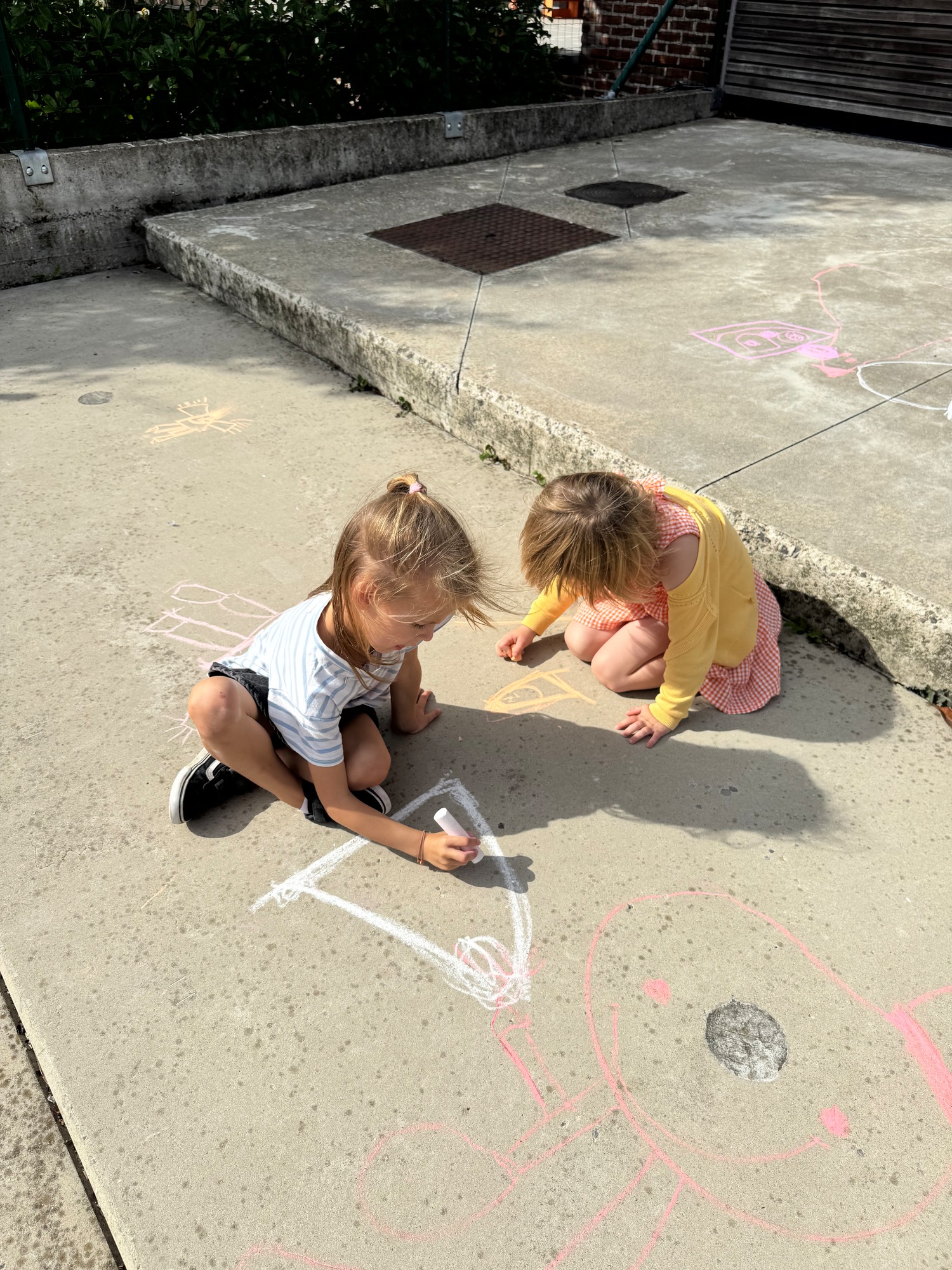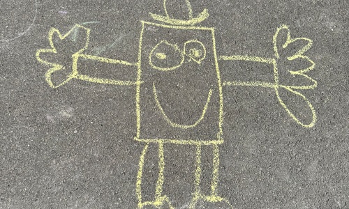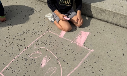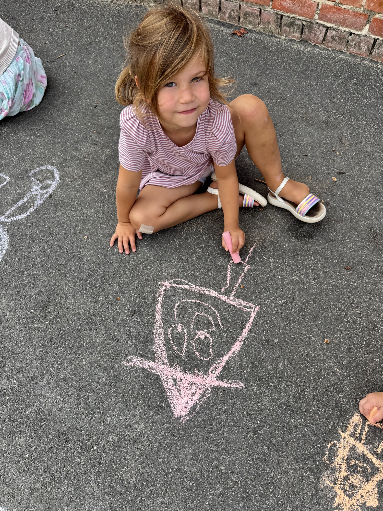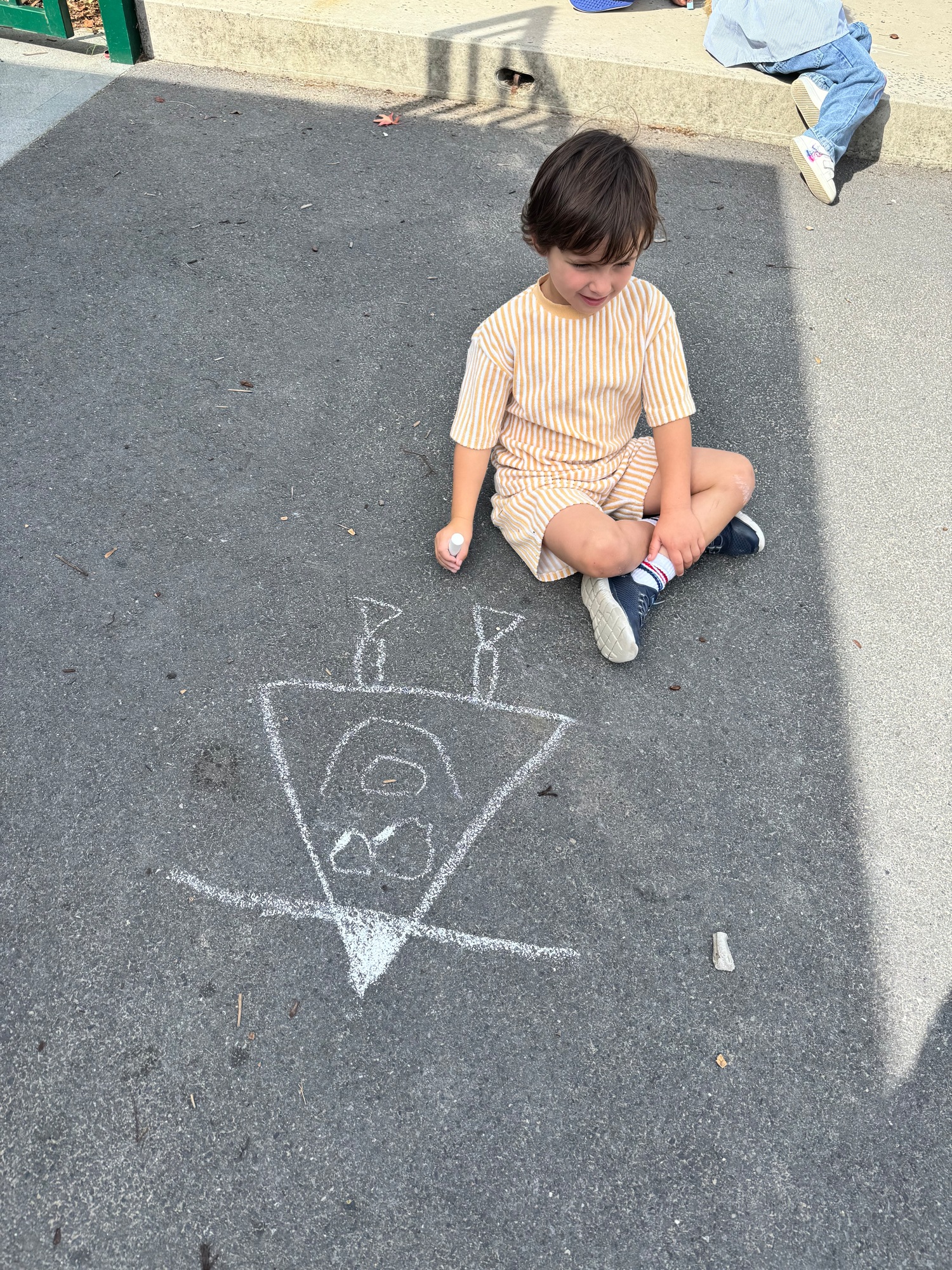 3KC Krullenbollen jullie mee? Meneertje Cirkel en Meneertje Driehoek krijten op de grond in de wachtzone.