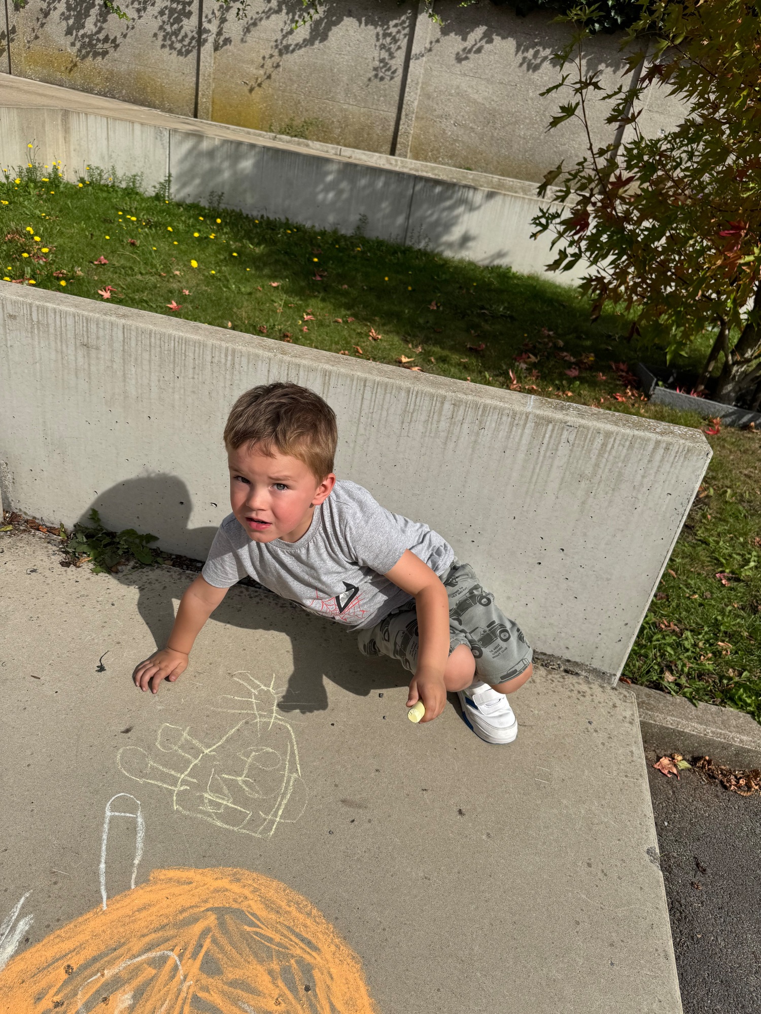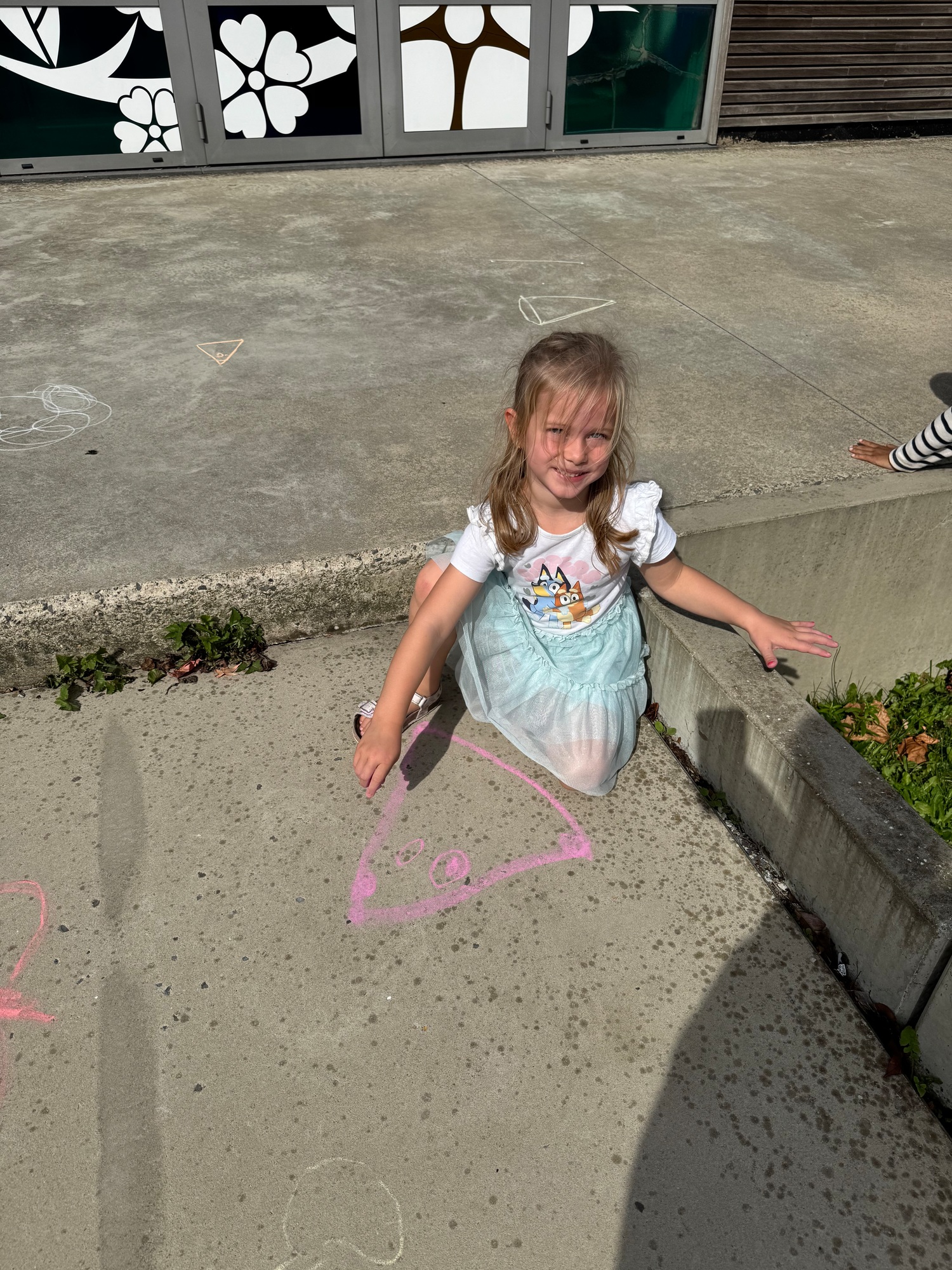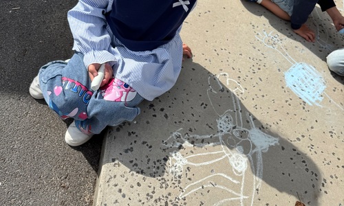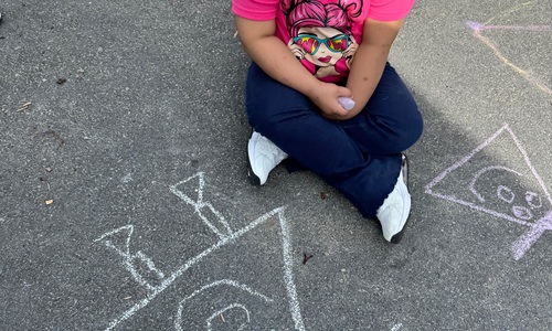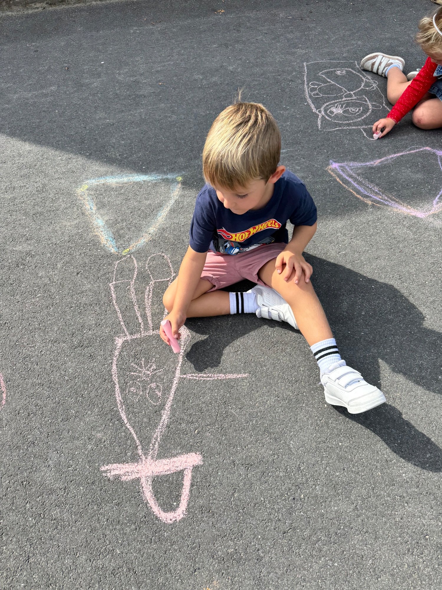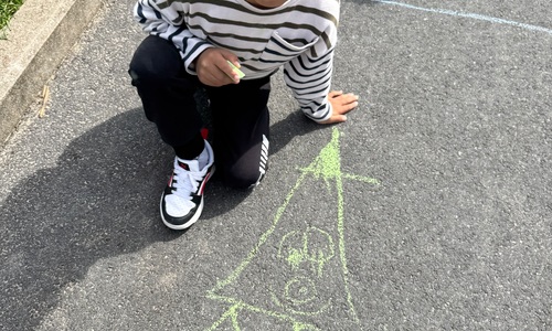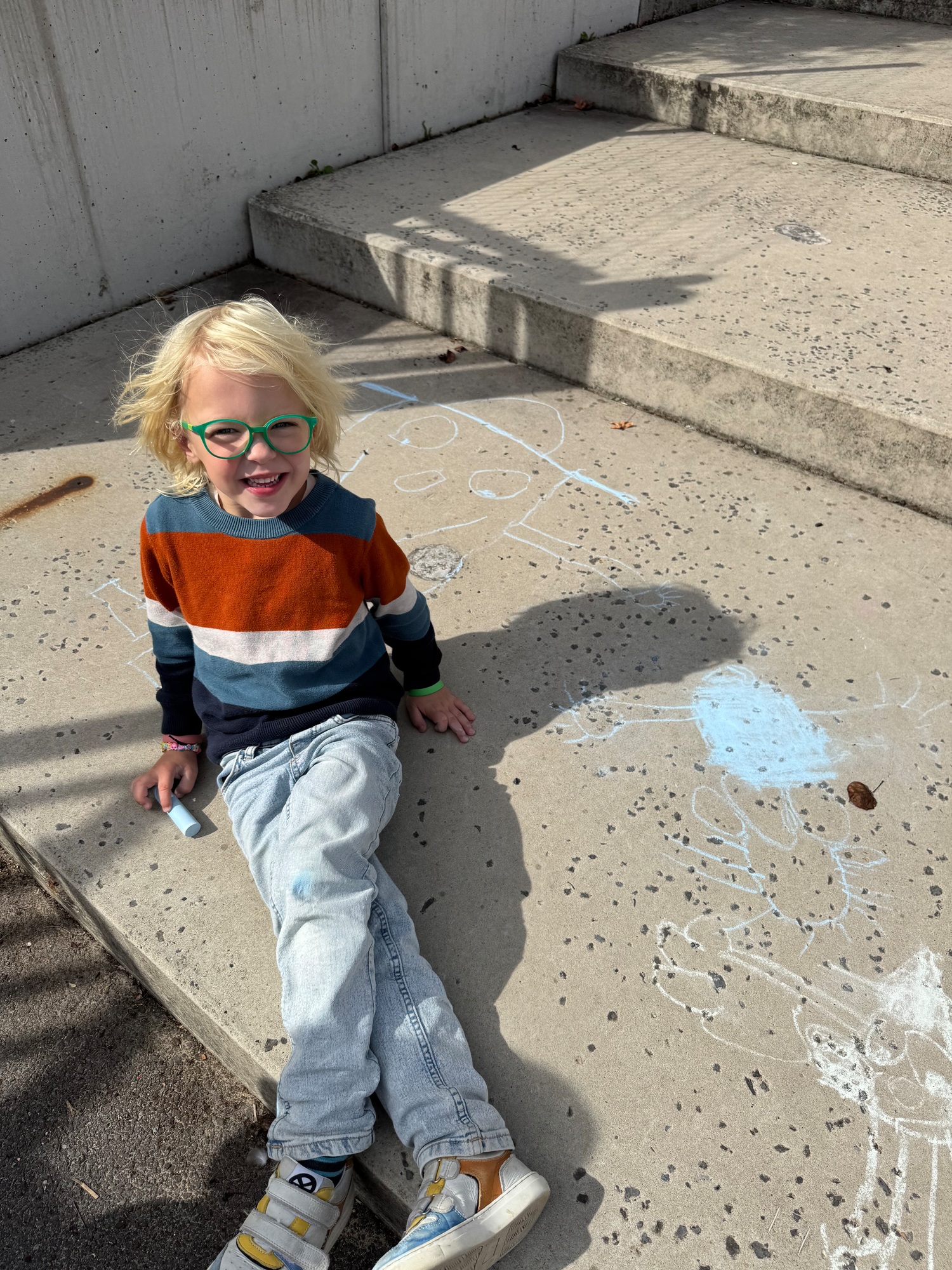 3KC Krullenbollen jullie mee? Meneertje Cirkel en Meneertje Driehoek krijten op de grond in de wachtzone.