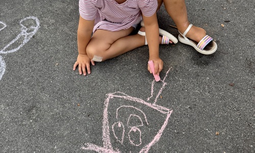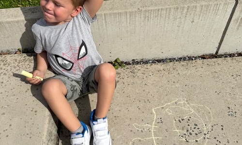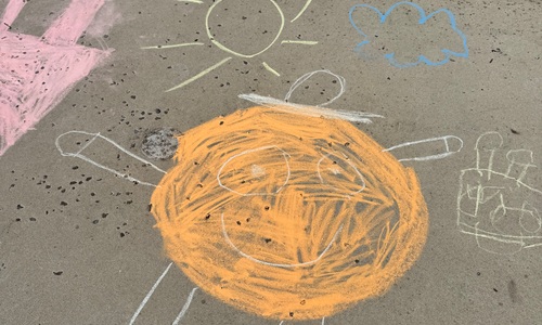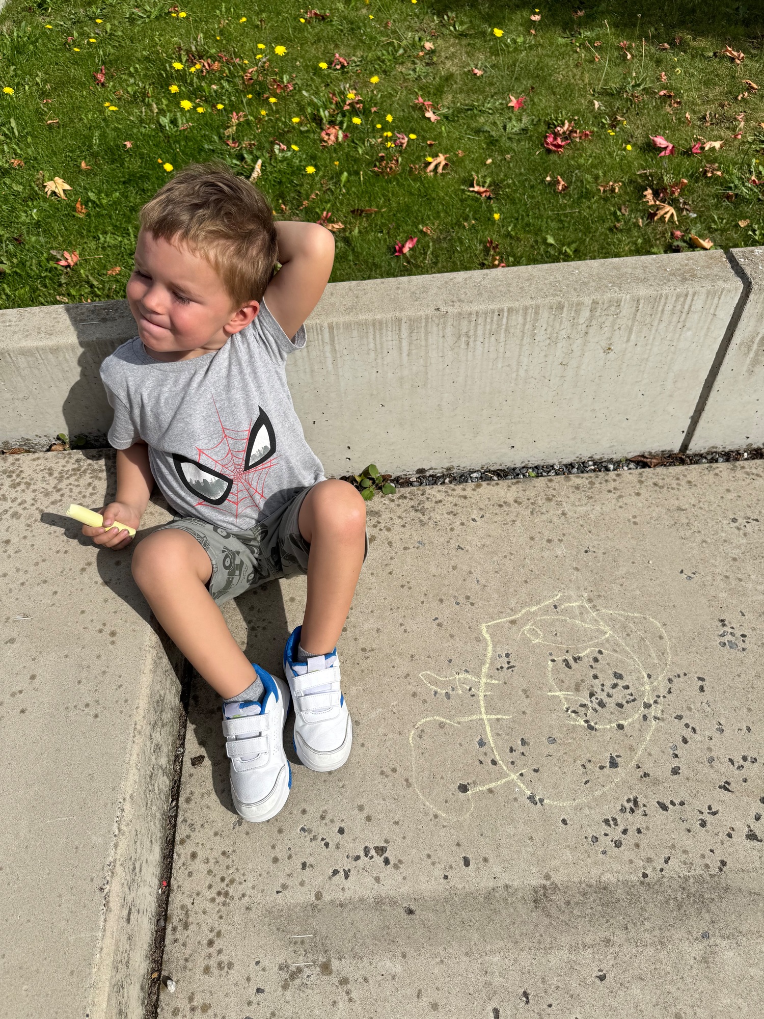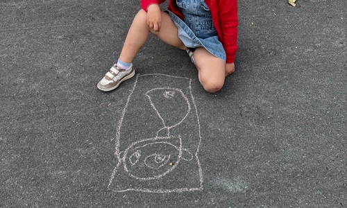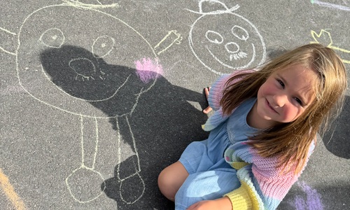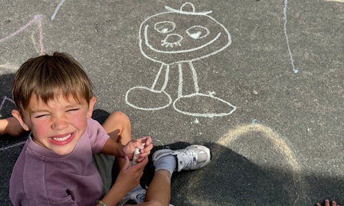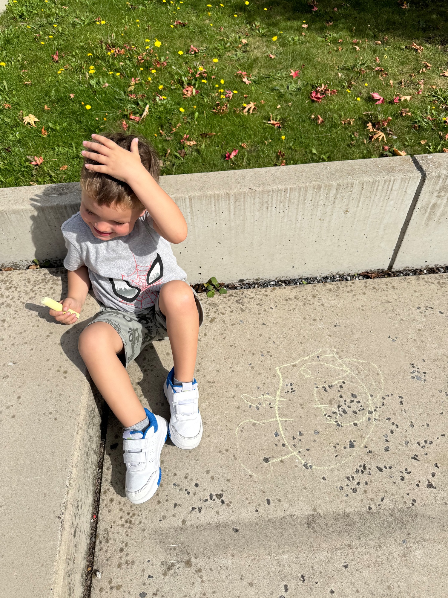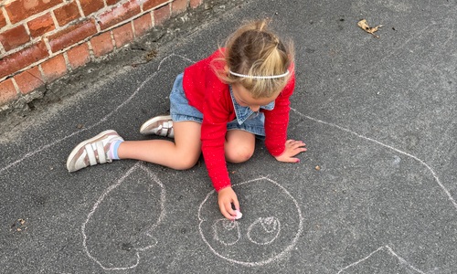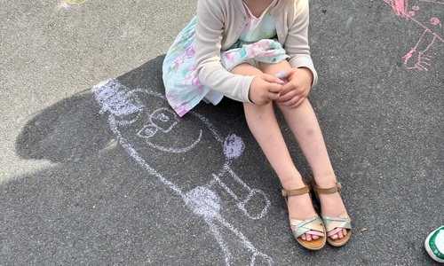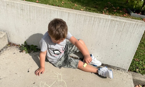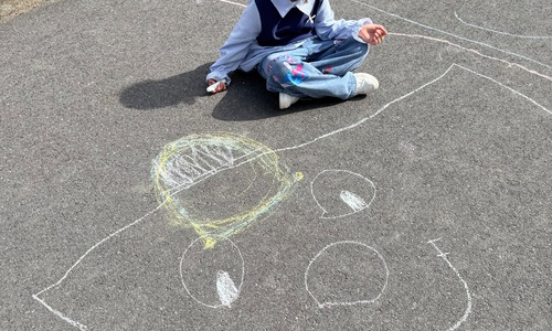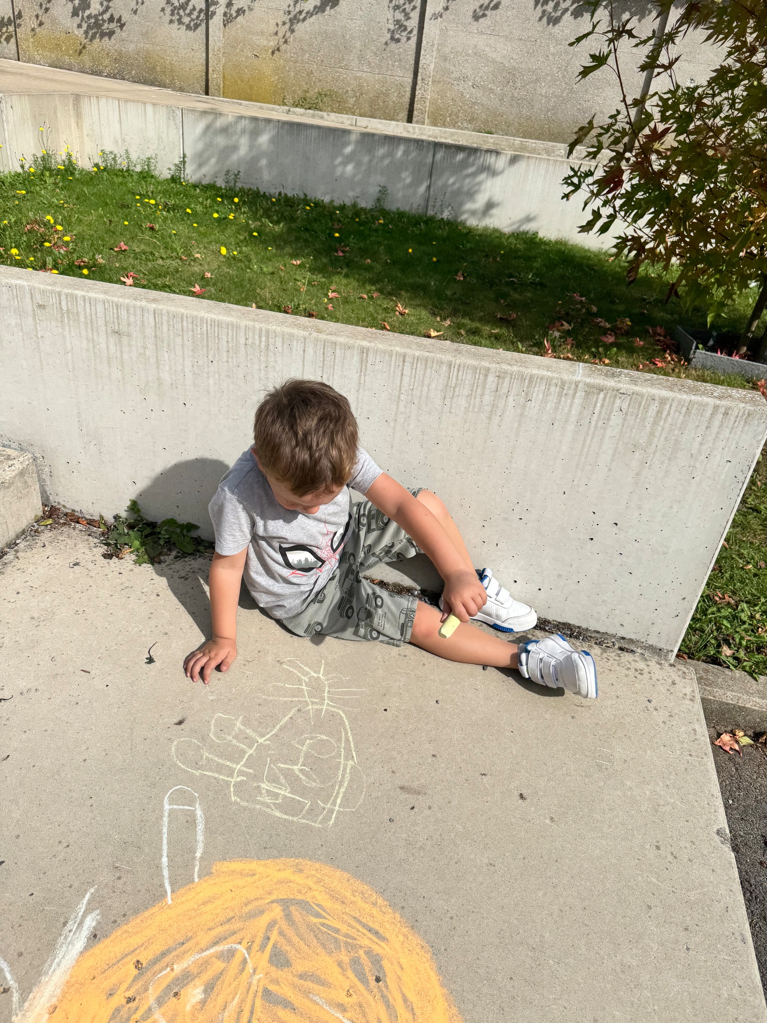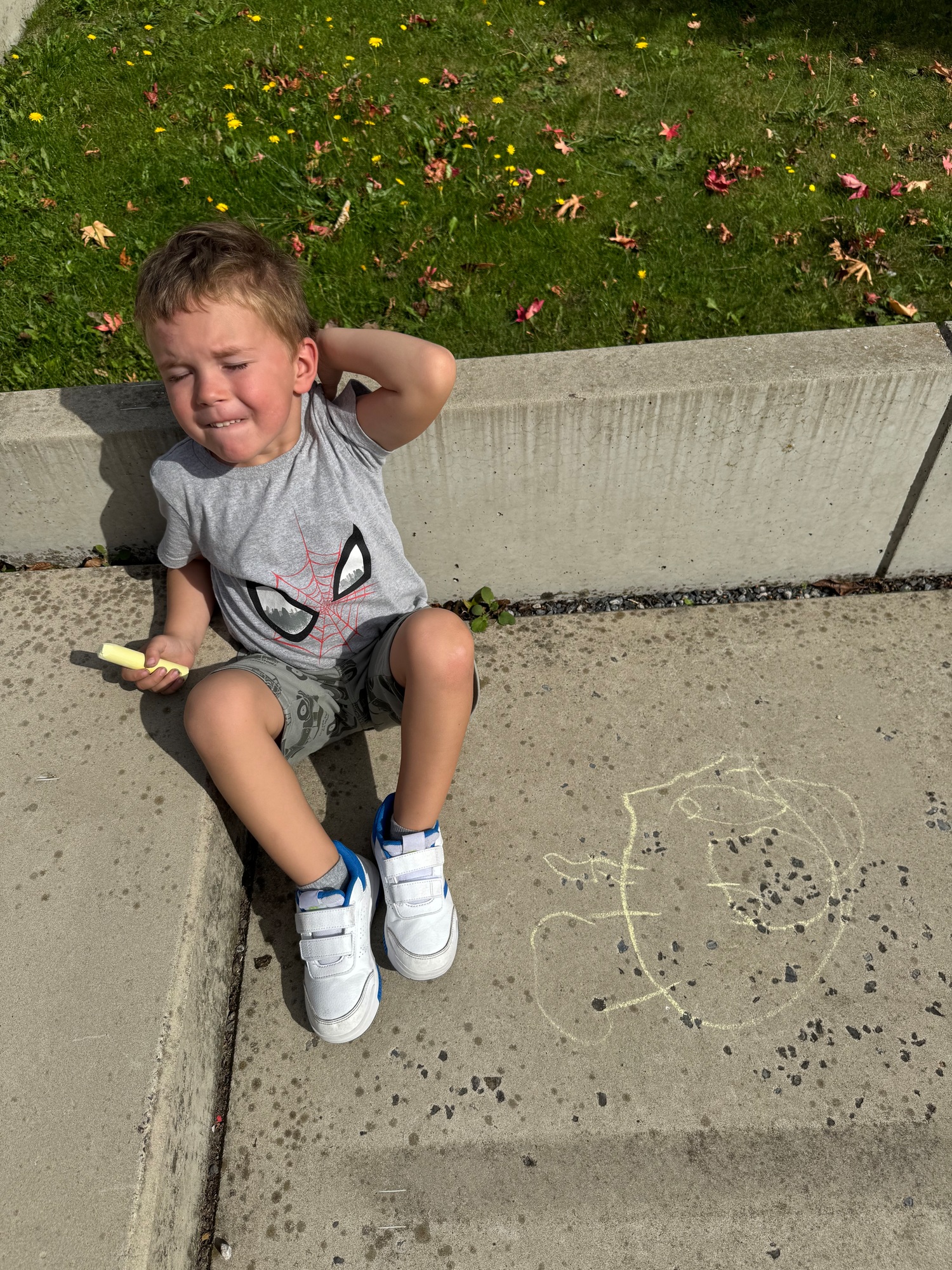 3KC Krullenbollen jullie mee? Meneertje Cirkel en Meneertje Driehoek krijten op de grond in de wachtzone.