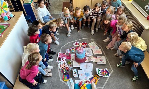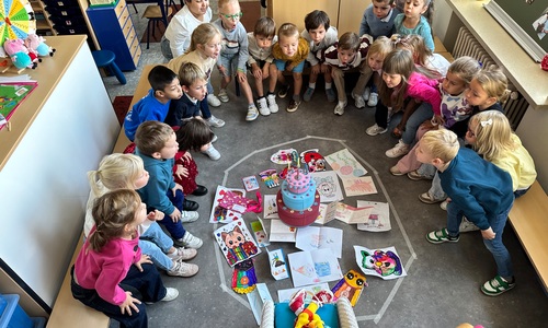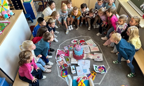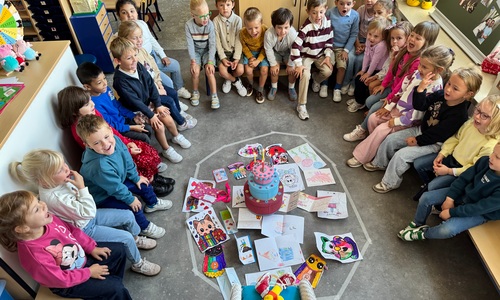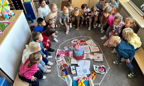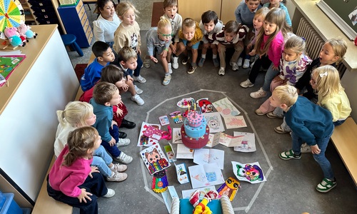 3KC Pompoms verjaardag vieren met de vriendjes van onze klas.