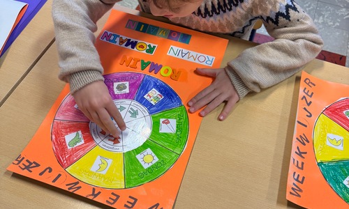 3KC Oefenen van de begrippen 'vandaag - gisteren - morgen - eergisteren - overmorgen aan de hand van onze zelfgemaakte weekwijzer.