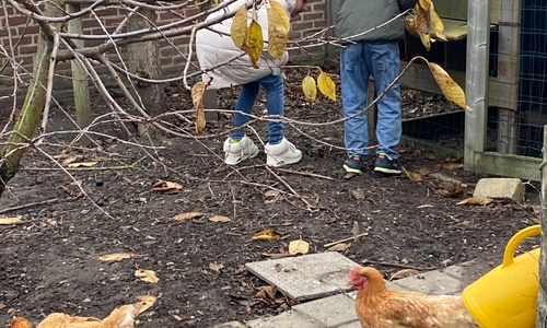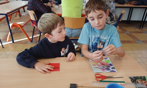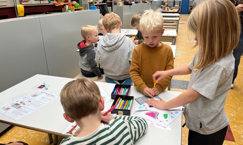 2KC - 3B: De kleuters maken samen met de leerlingen van juf Anja een windmolentje. Natuurlijk ook even testen buiten.
