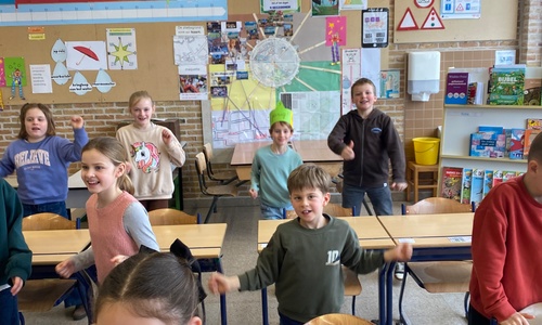 op leerwandeling om de afstand van 1 kilometer te leren kennen