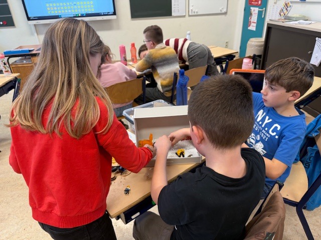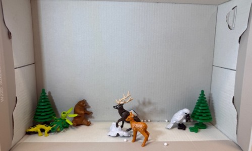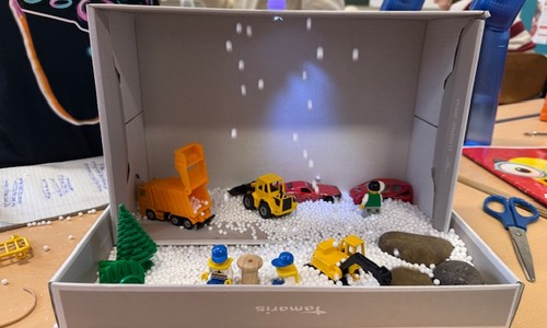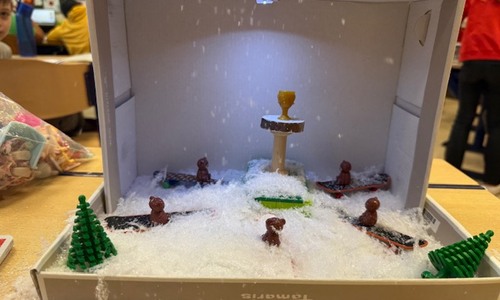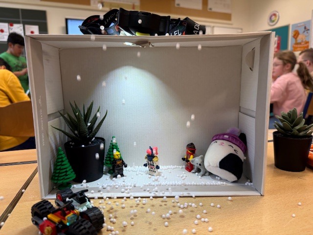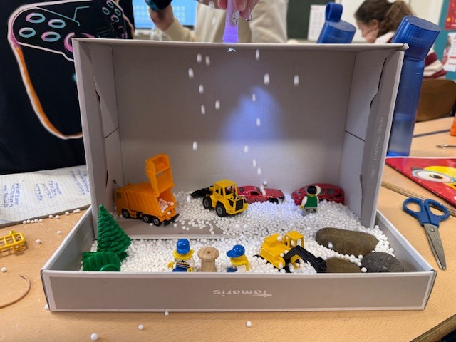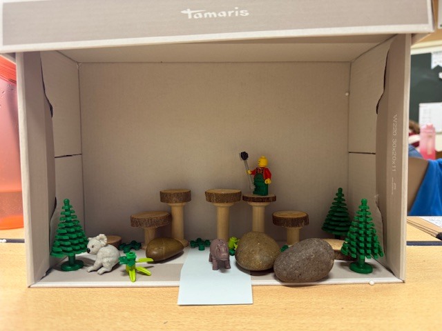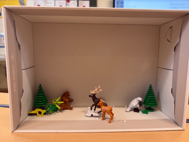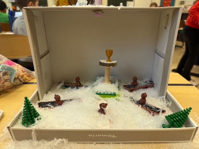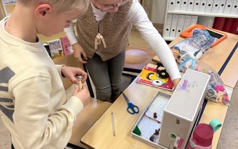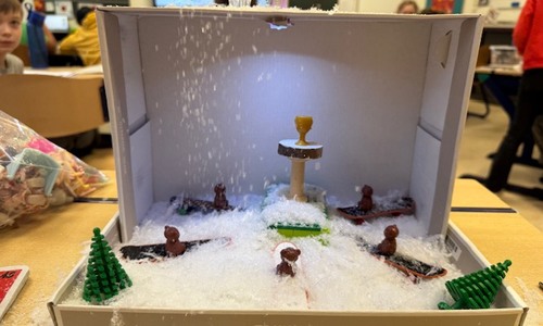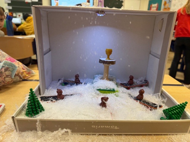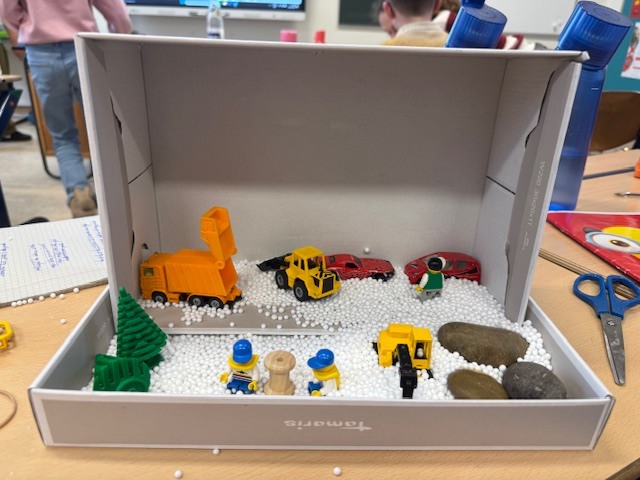 De laatste opdracht van Whizzkids deel 2 was een creatieve opdracht. De leerlingen moesten een diorama maken. We verzamelden heel wat materiaal en gingen per groep aan de slag.