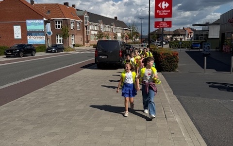 'Lang leve de fiets' is ons w.o. thema maar ook te voet gaan we op stap op zoek naar gevaarlijke en drukke verkeerspunten rond onze school. We oefenen ook om op een veilige manier het zebrapad over te steken.