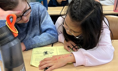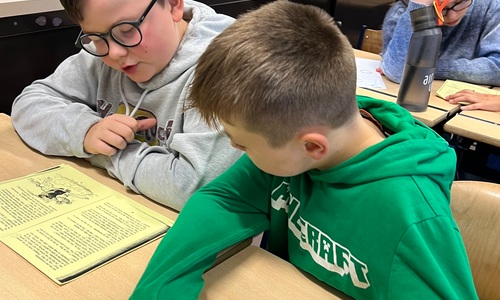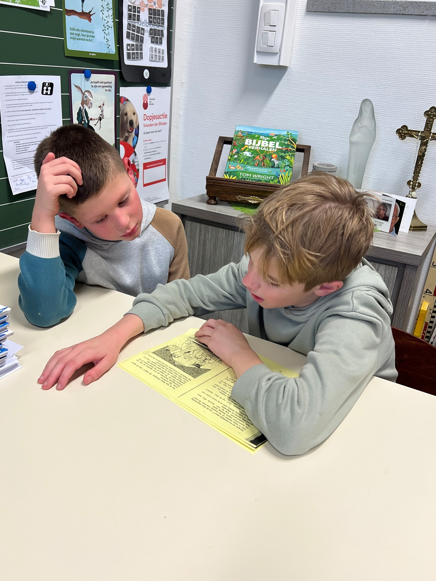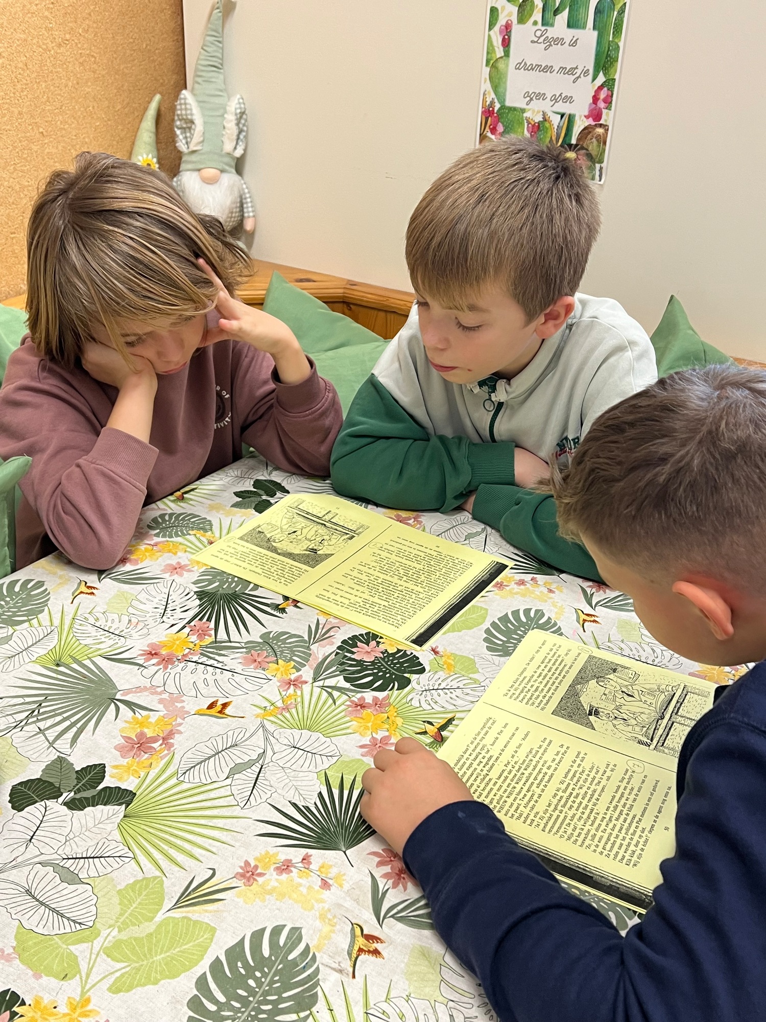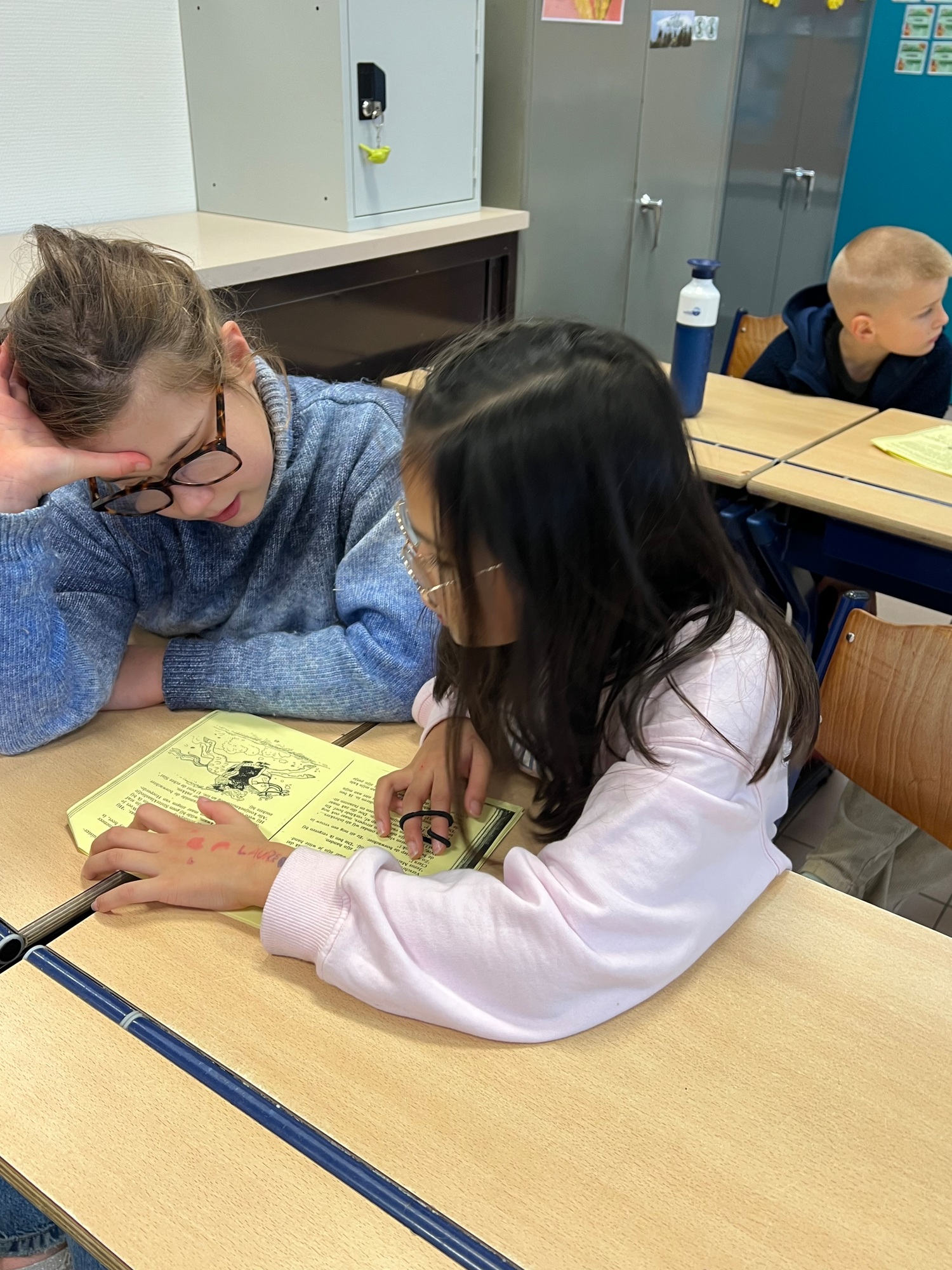 Meters en Peters lezen samen met de leerlingen van het vierde.