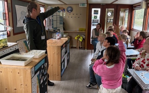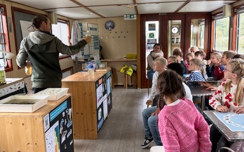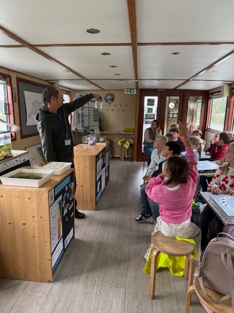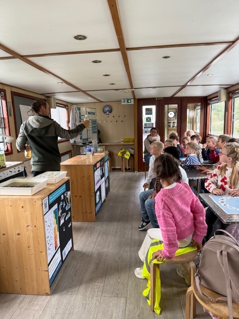 De milieuboot nam ons mee voor een boeiende en leerrijke verkenning van de waterloop in eigen streek! 3 uur lang mochten we meevaren met een binnenschip. Ondertussen maakten we kennis met het kanaal Roeselare-Leie, het leven op en om het water, het belang van water en watersystemen. We ondervonden waarom integraal waterbeheer, biodiversiteit en duurzaam omgaan met water en waterlopen van levensbelang zijn.