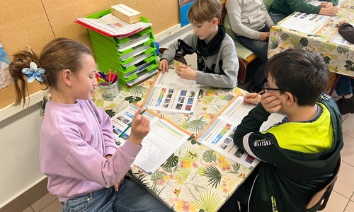 Het vijfde leerjaar op bezoek om te lezen en te timmeren...