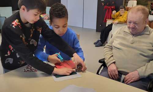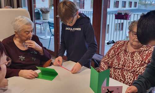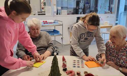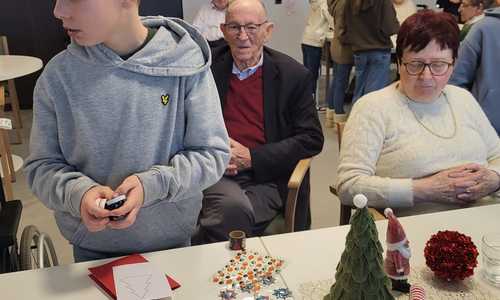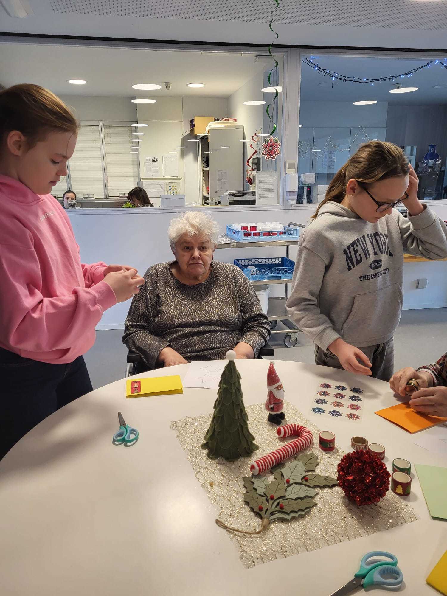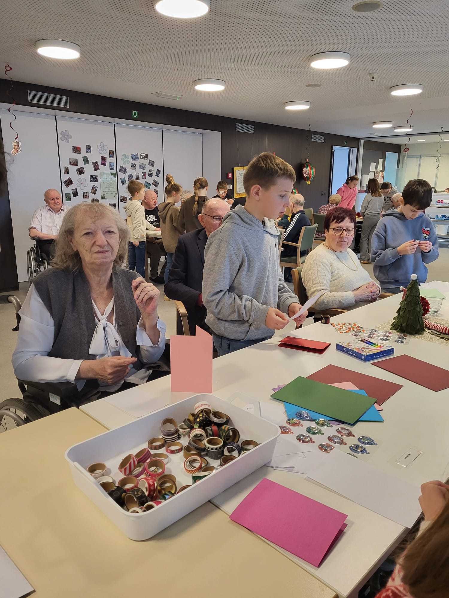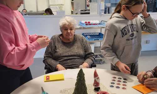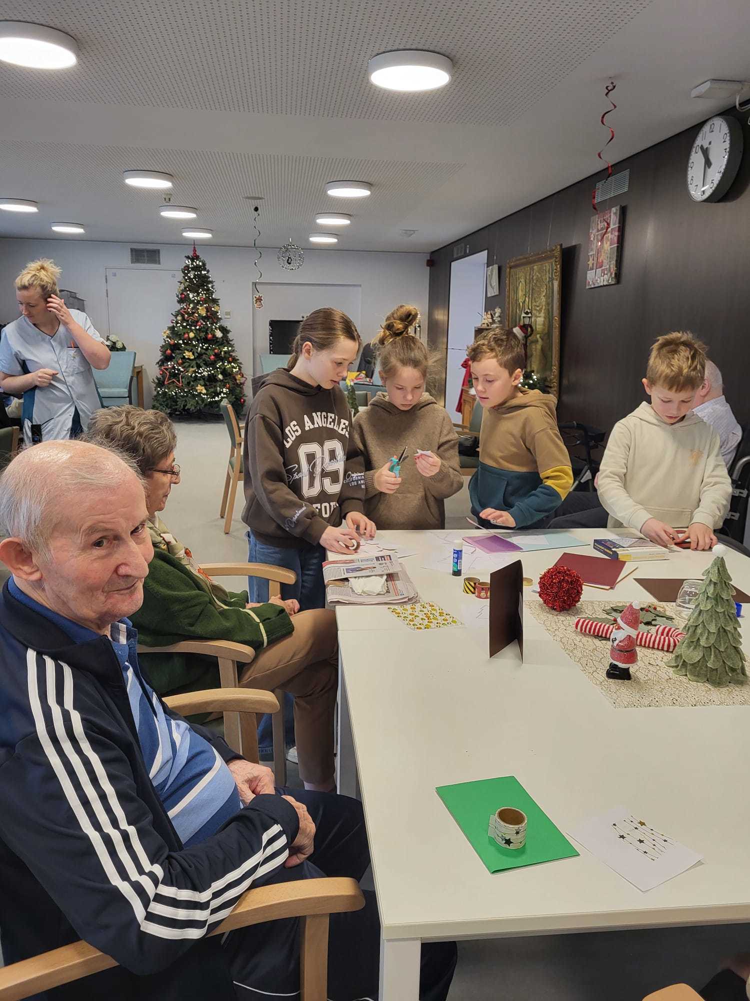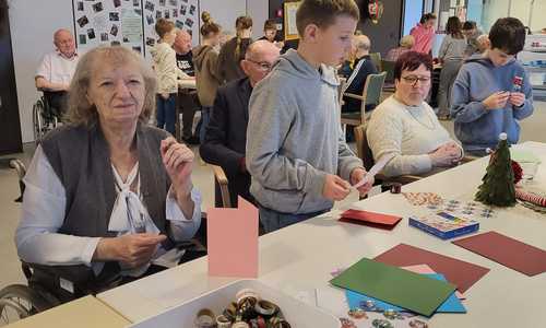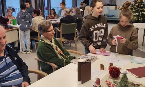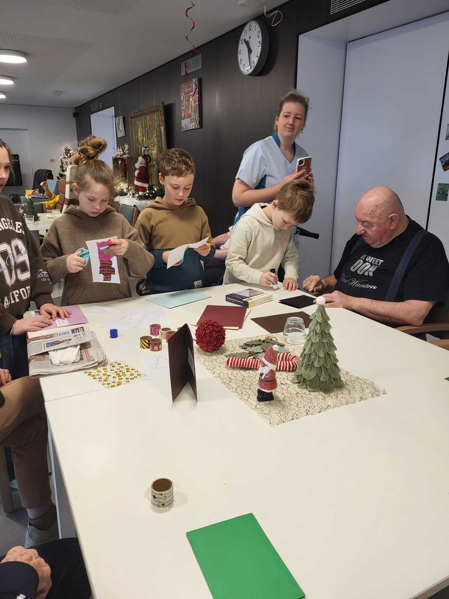 5B kerstliederen zingen en kerstkaarten maken voor de bewoners van het rusthuis