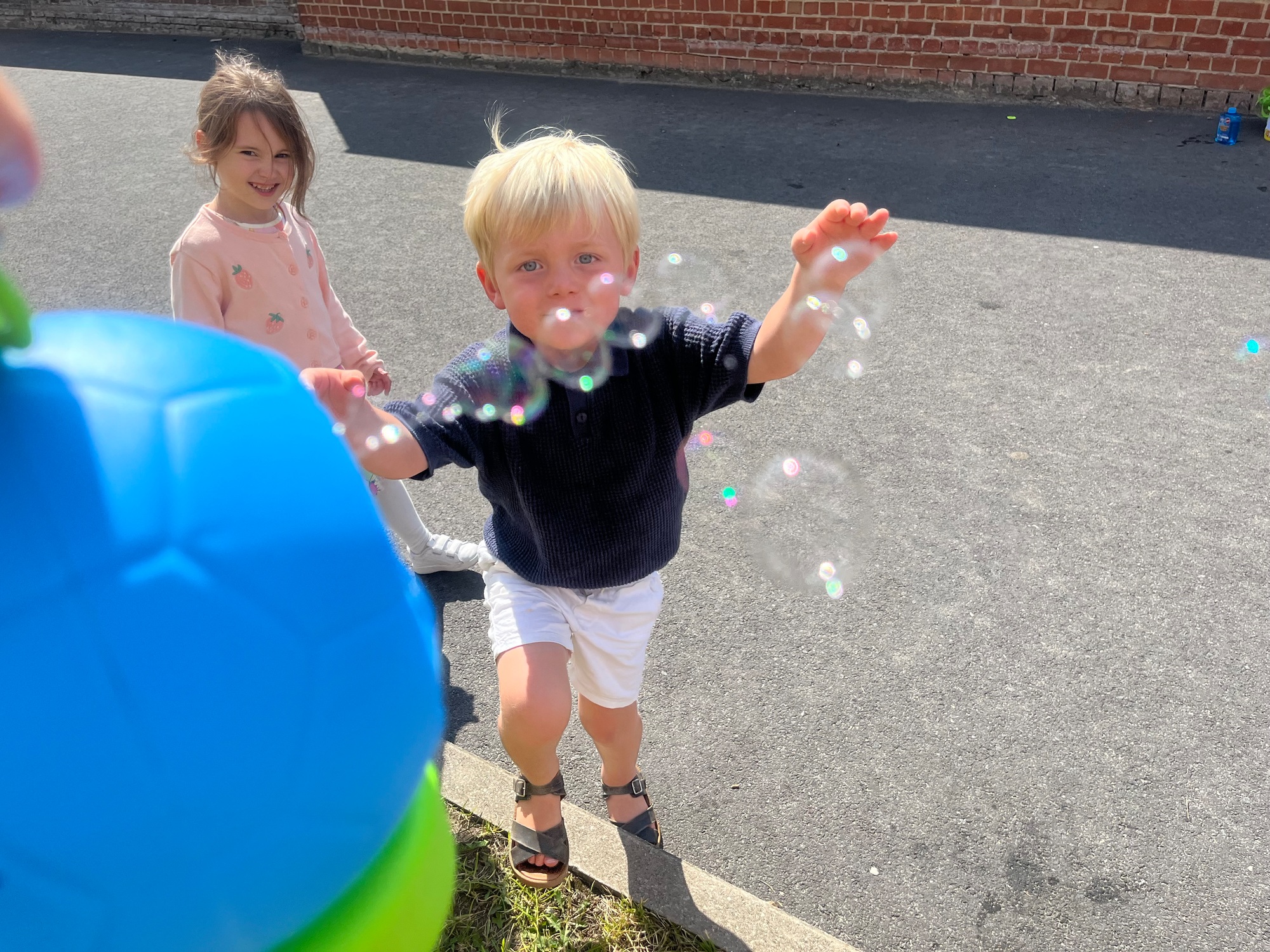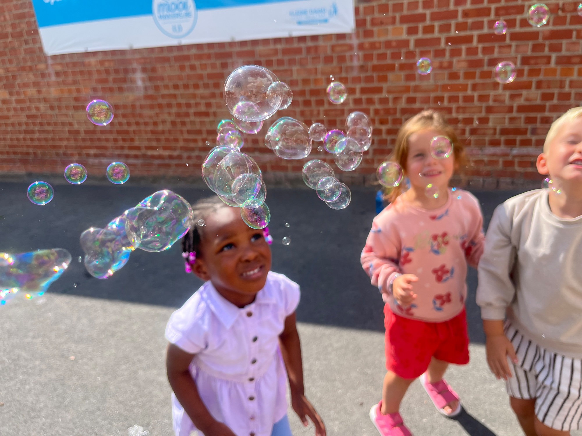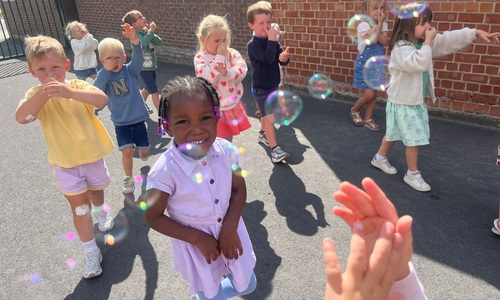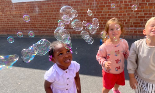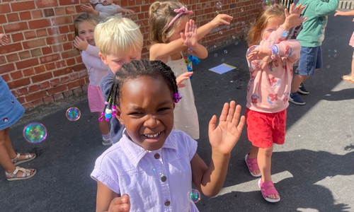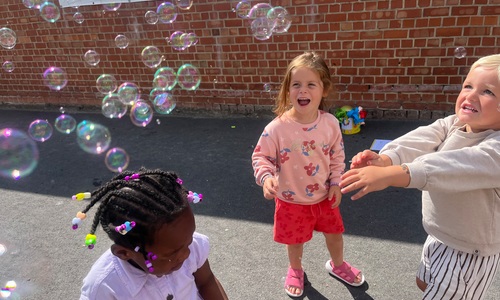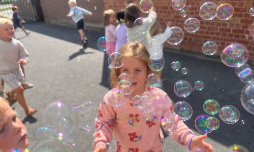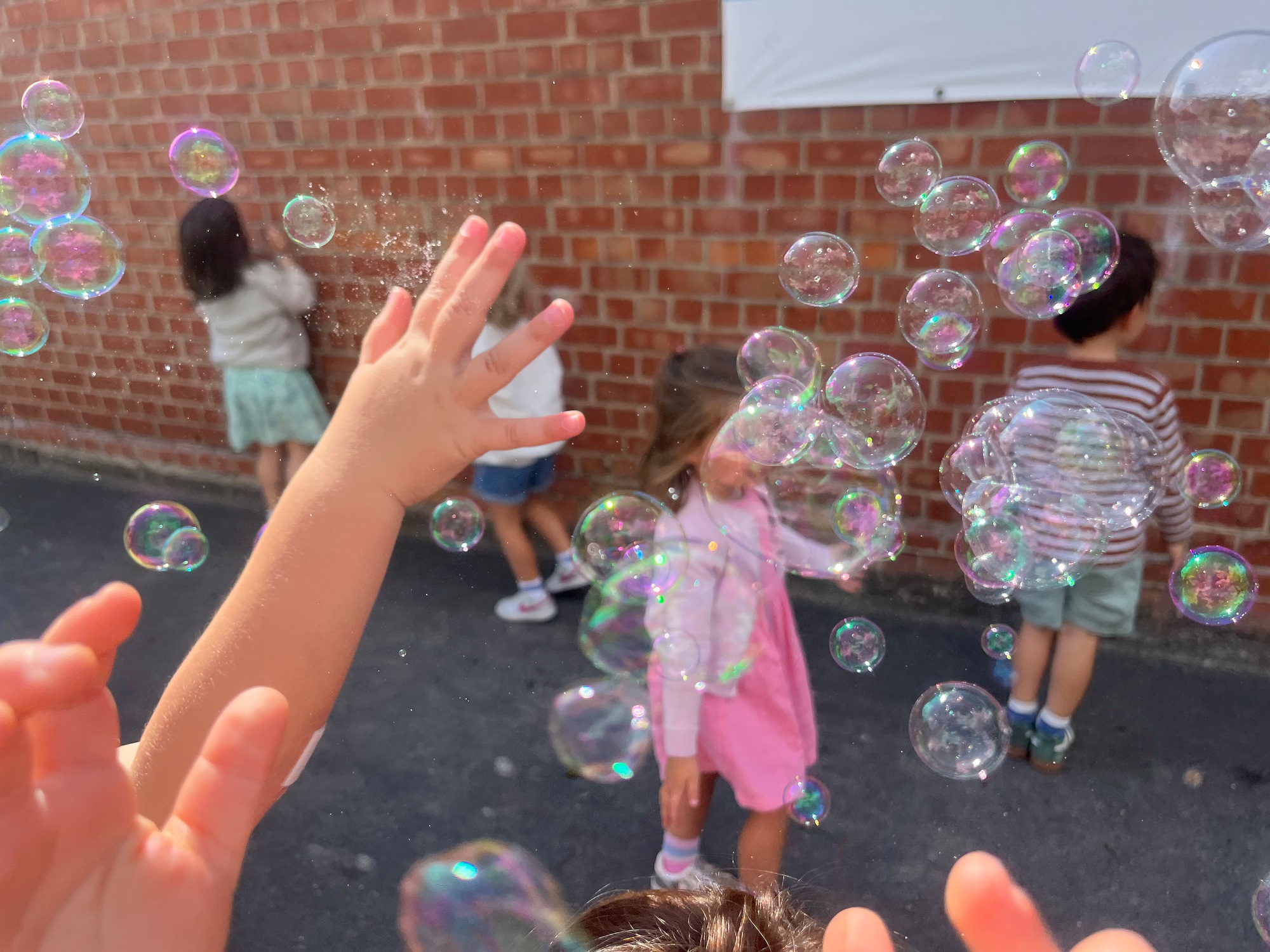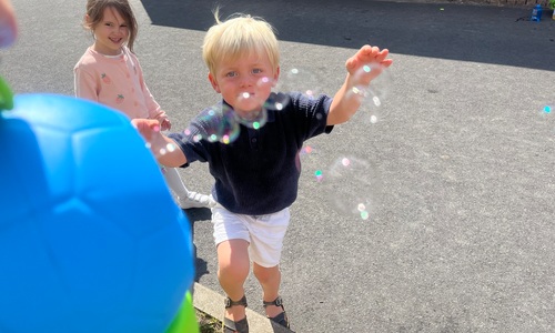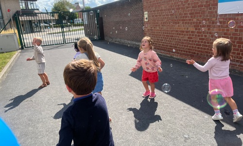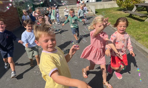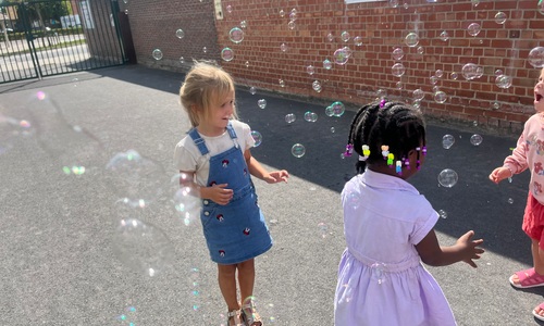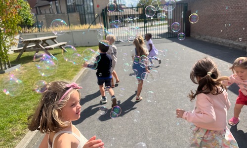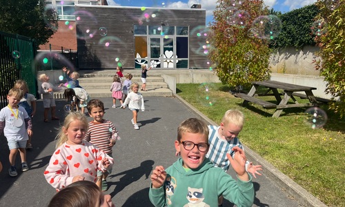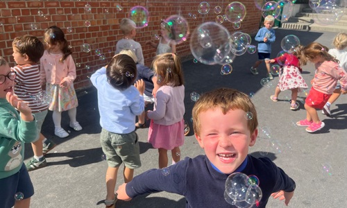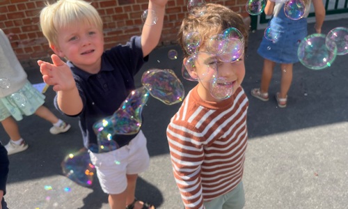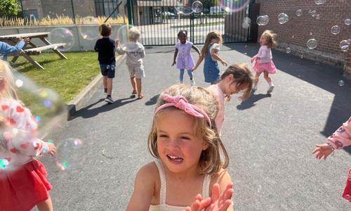 Leeuw brult heel luid en vangt de bellen, aap springt op en neer, olifant vangt de bellen met zijn slurf en krokodil vangt ze met zijn grote bek.