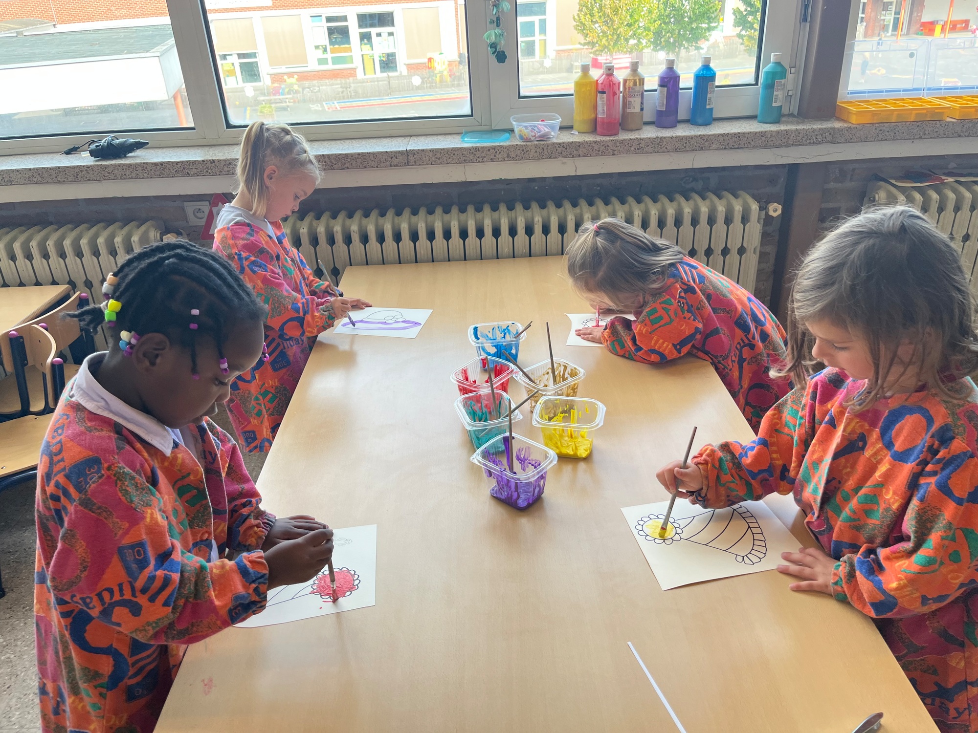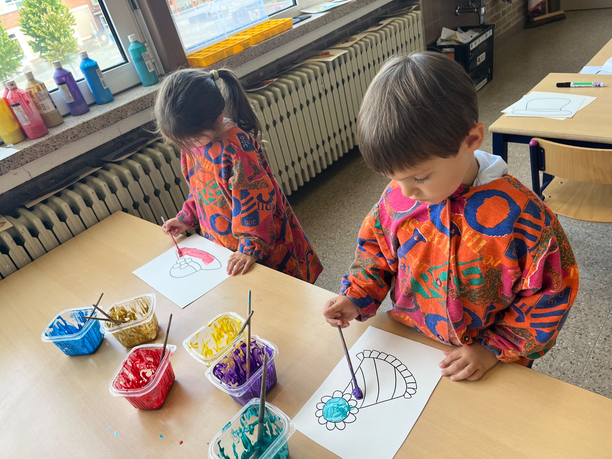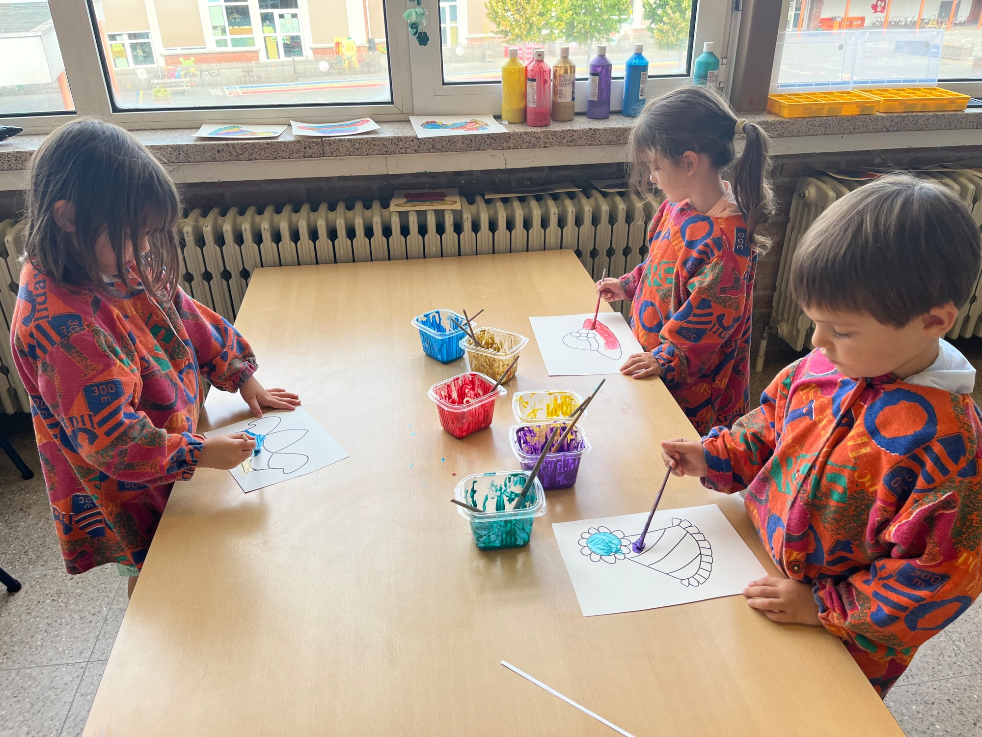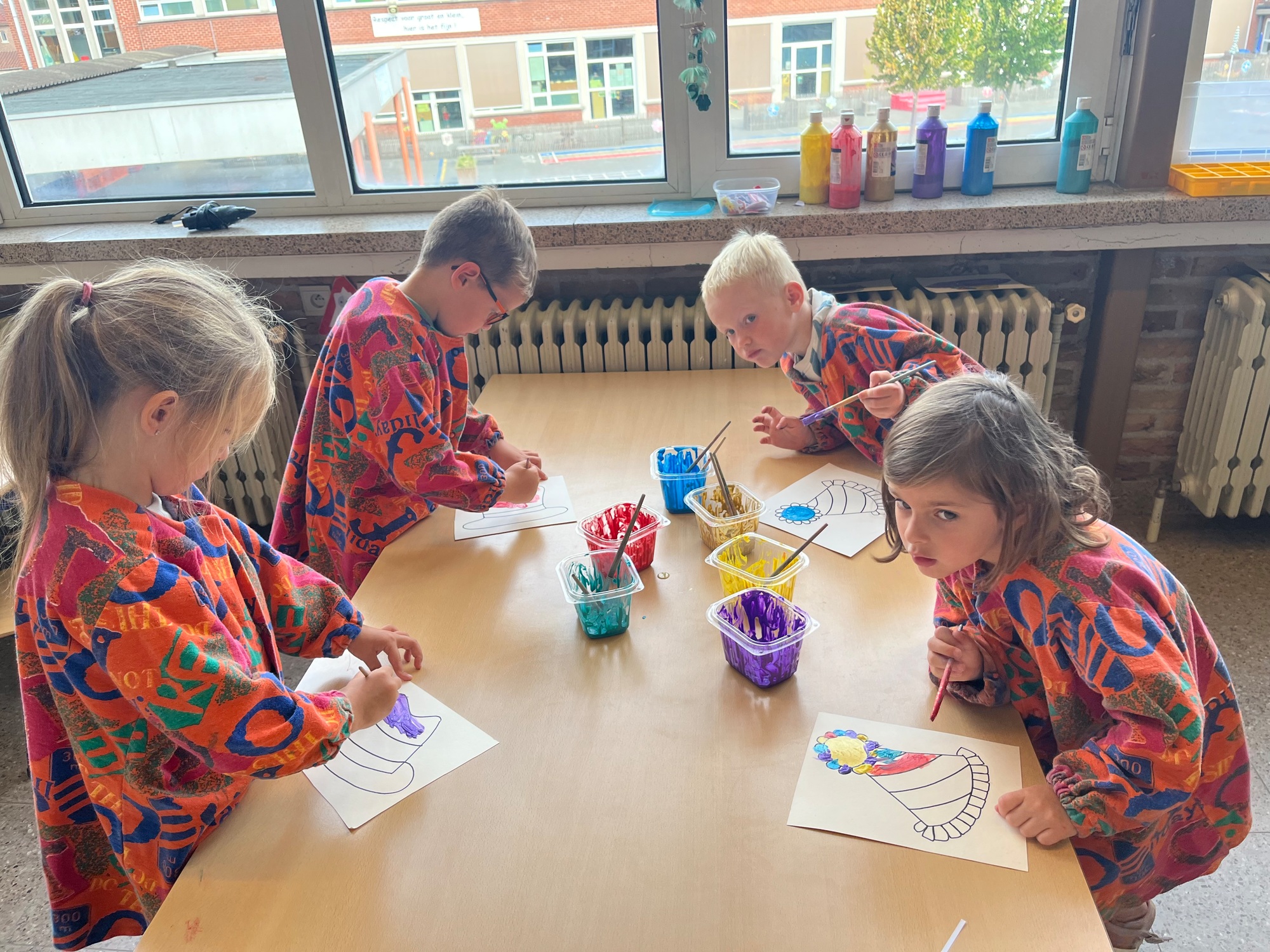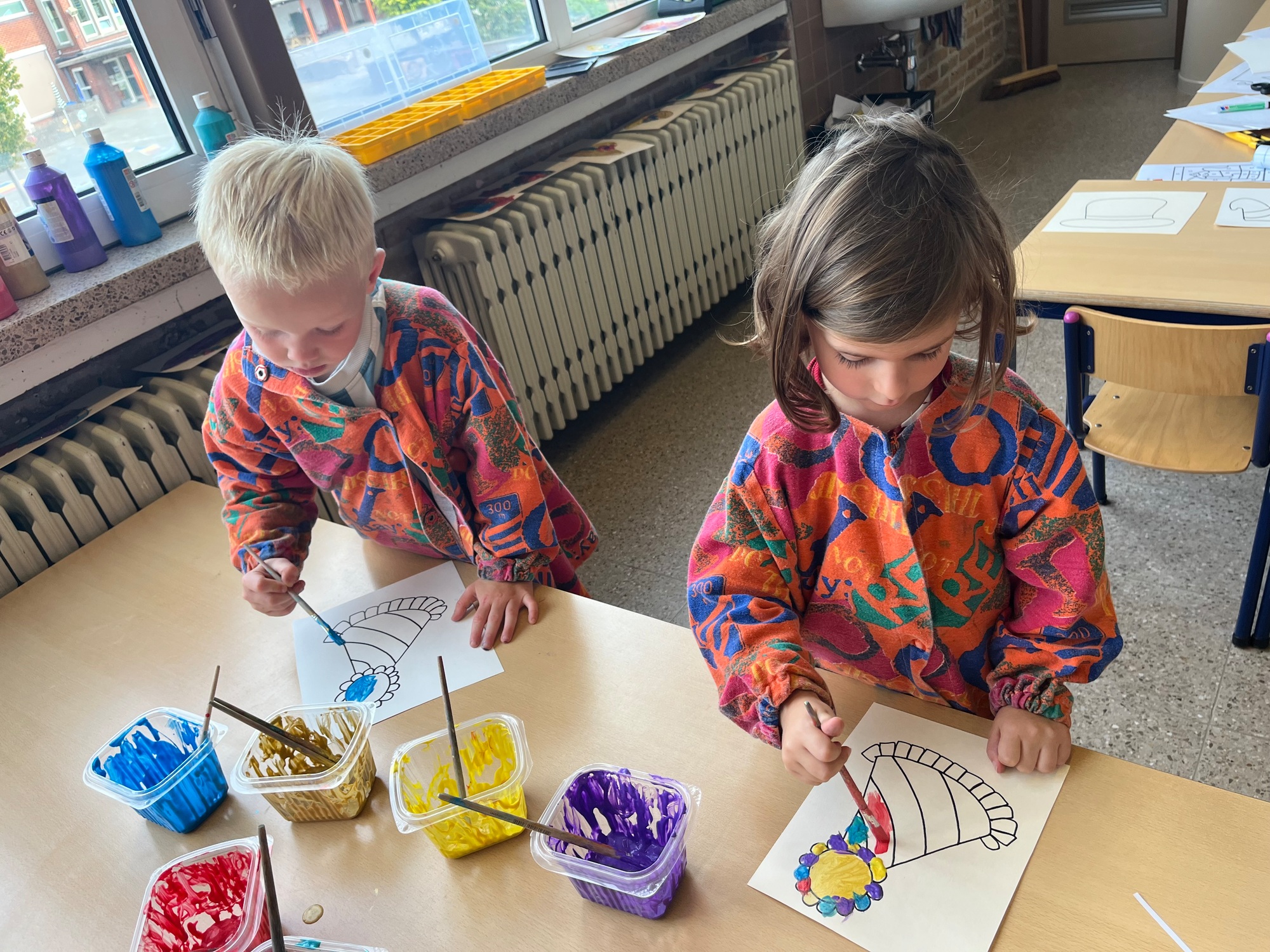 Schilderen van een hoedje voor onze verjaardagslijn.
