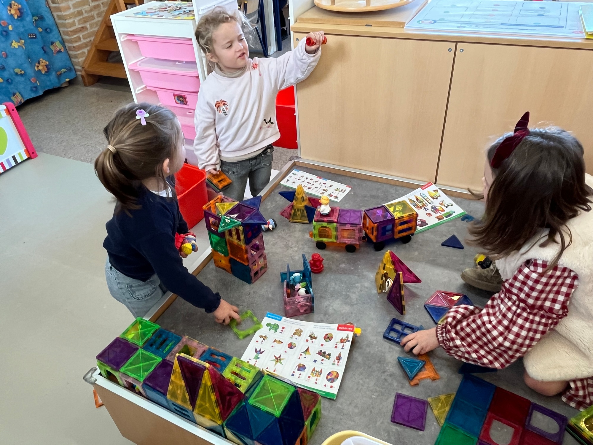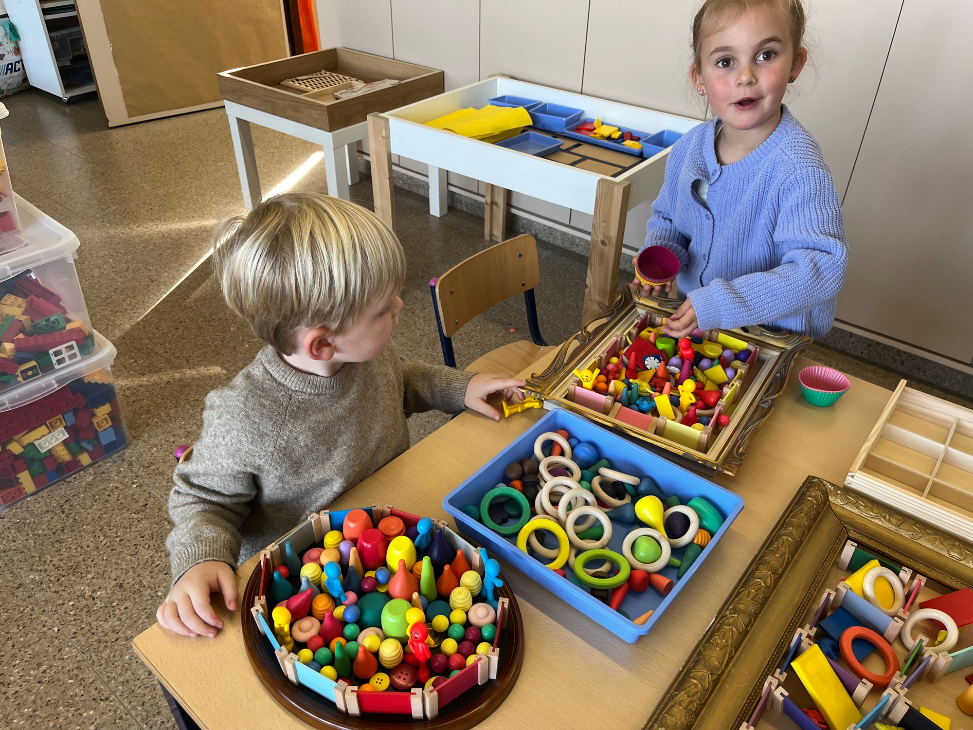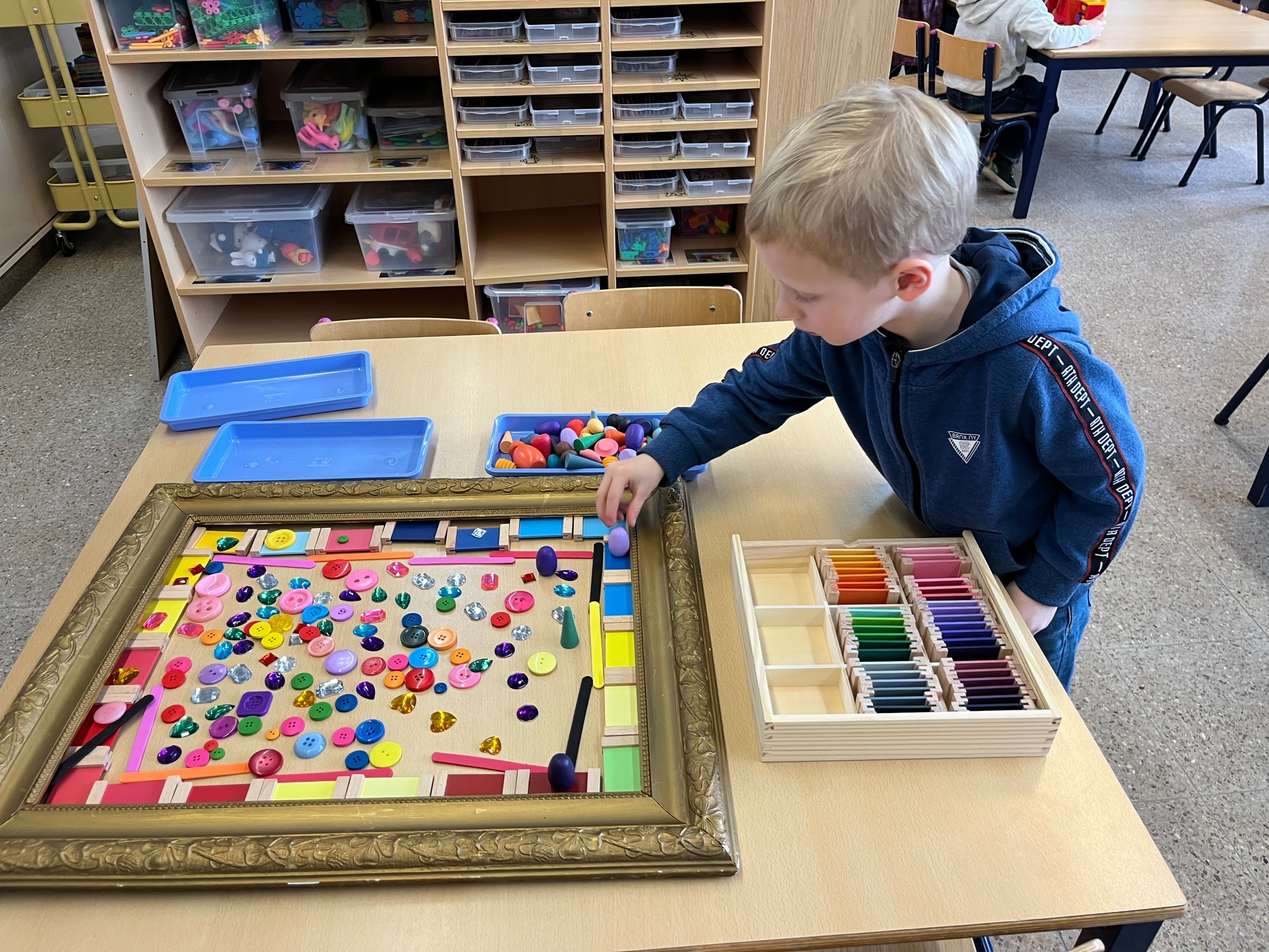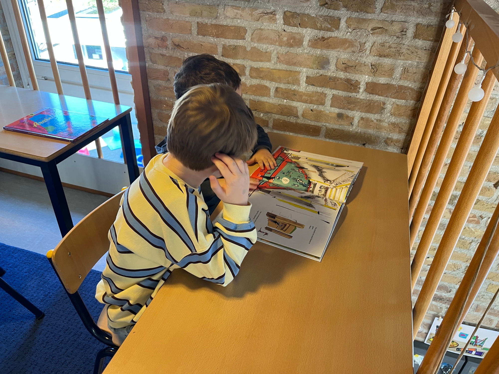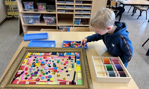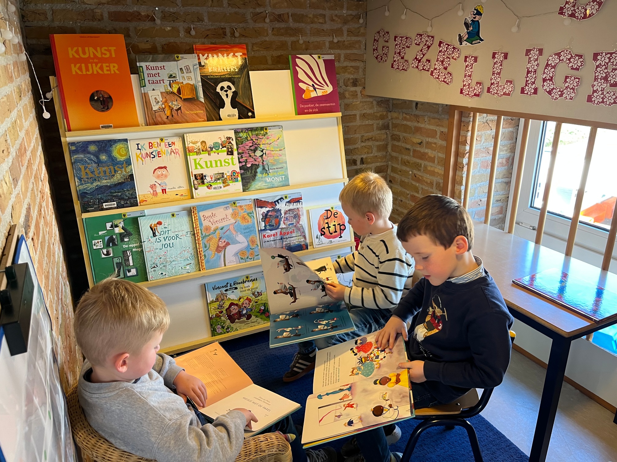 Kunstwerken maken met loose parts, museums bouwen met de magneten, kijken inboeken en vertellen aan elkaar in de boekenhoek