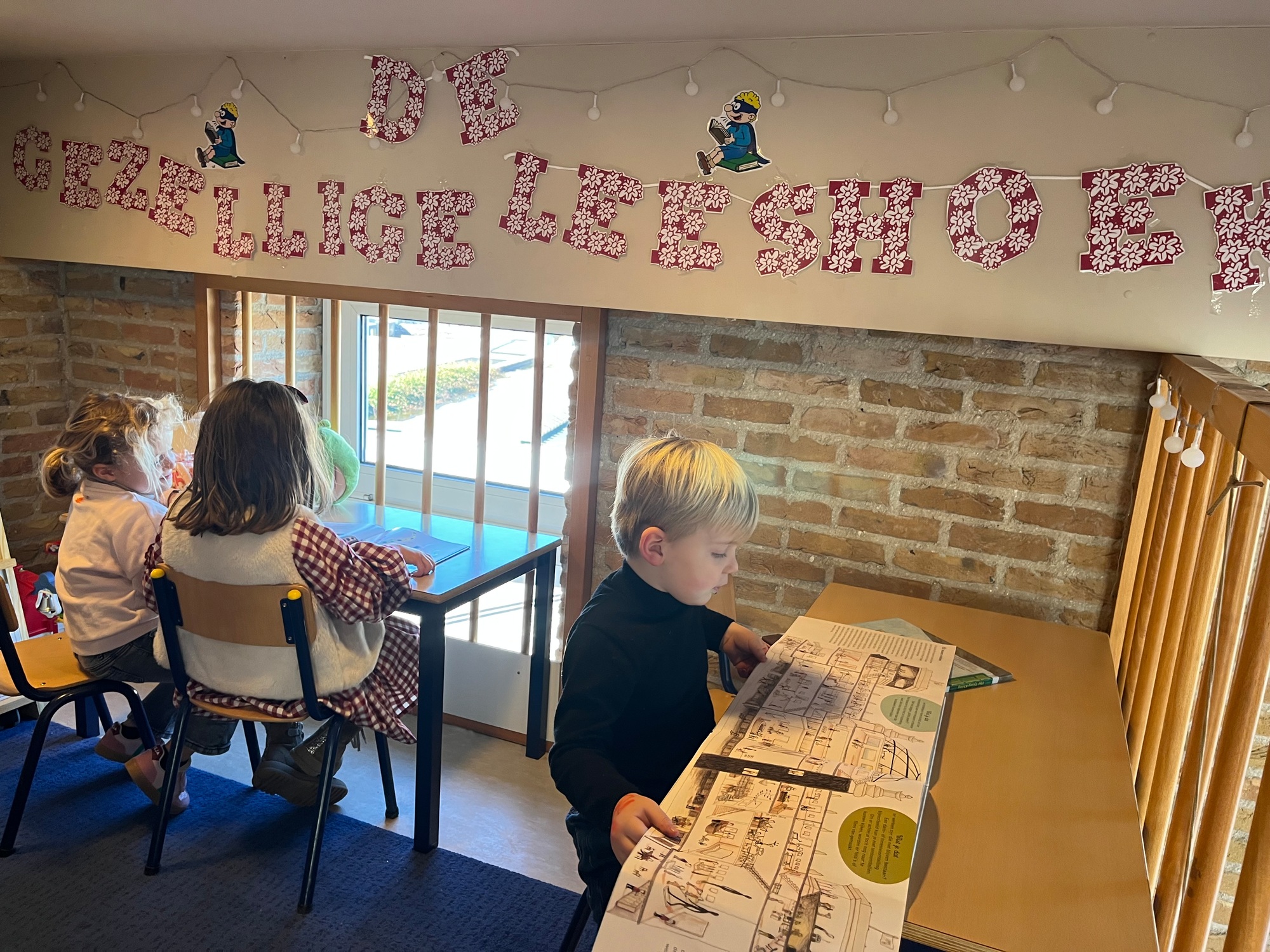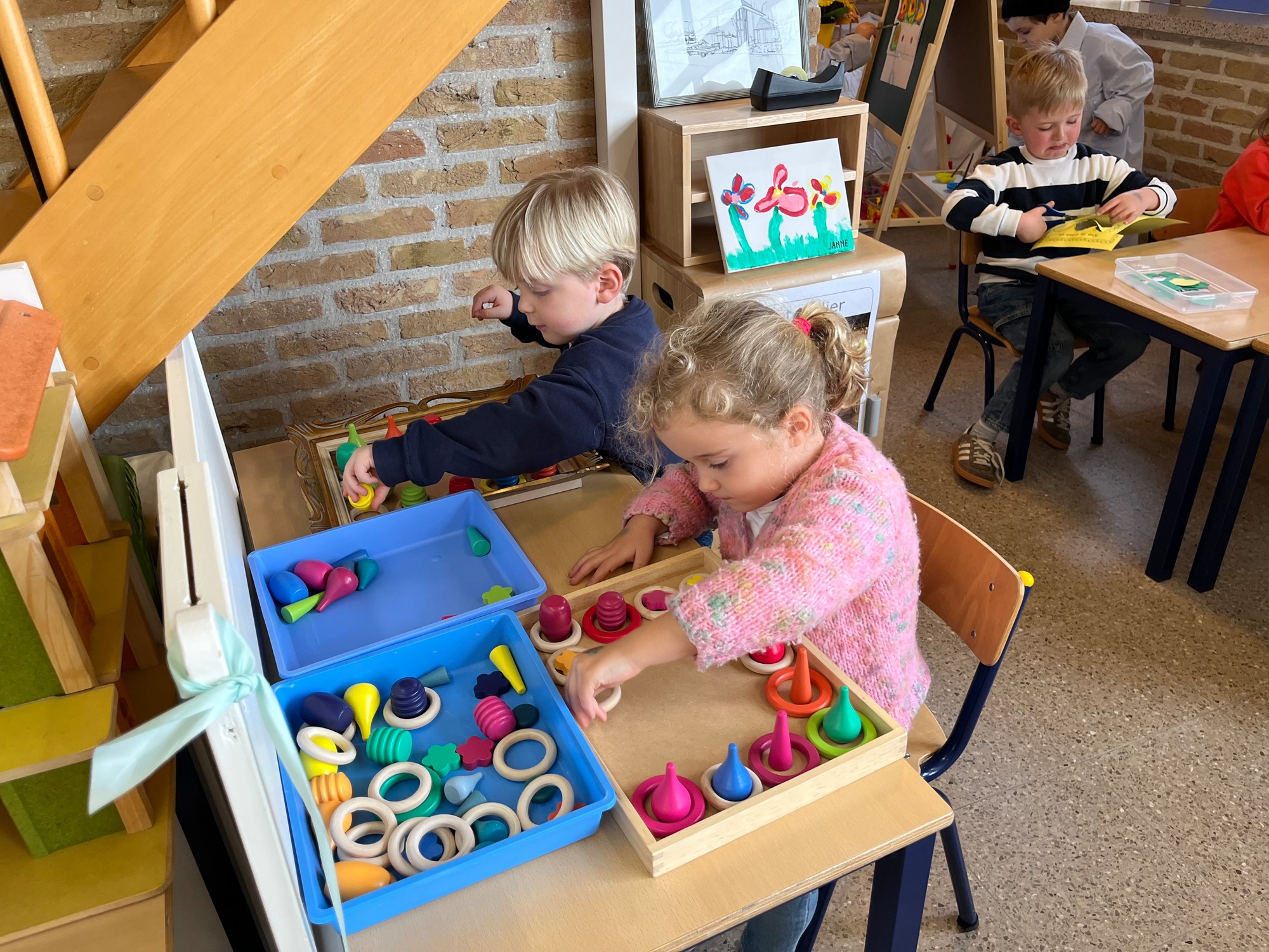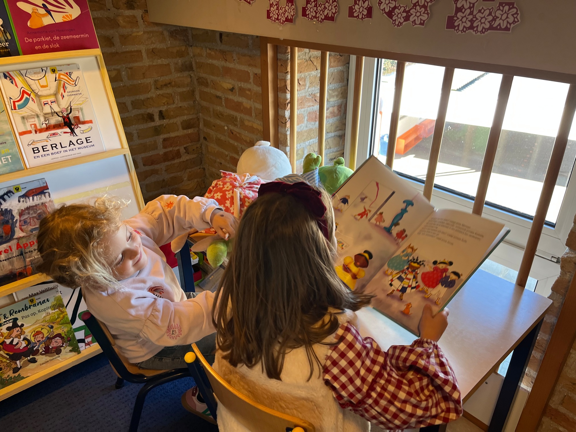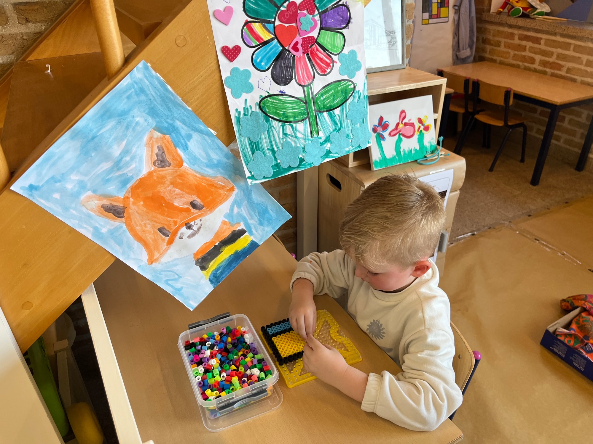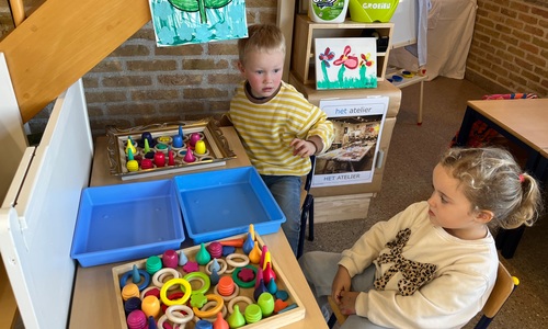 Kunstwerken maken met loose parts, museums bouwen met de magneten, kijken inboeken en vertellen aan elkaar in de boekenhoek