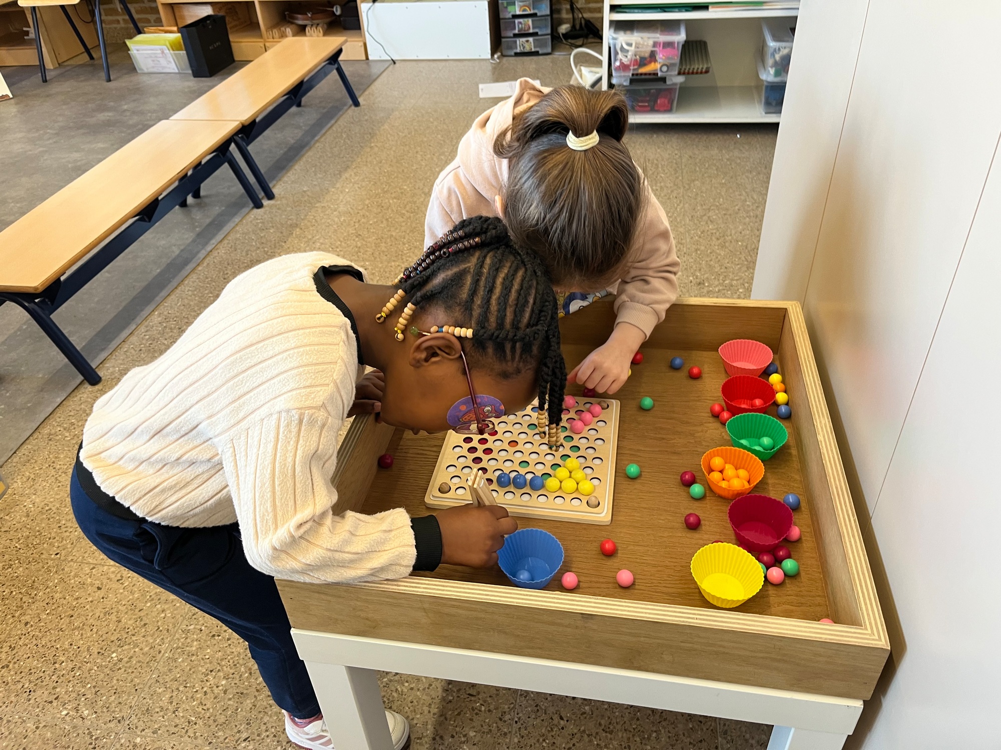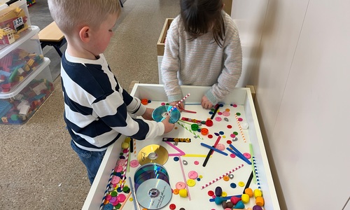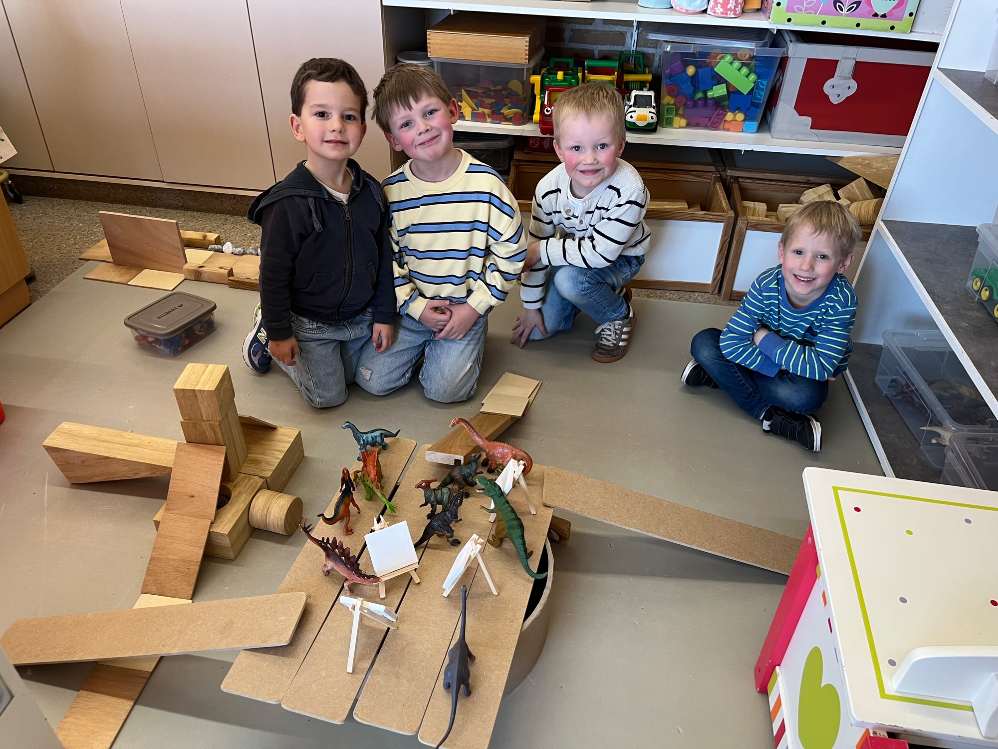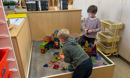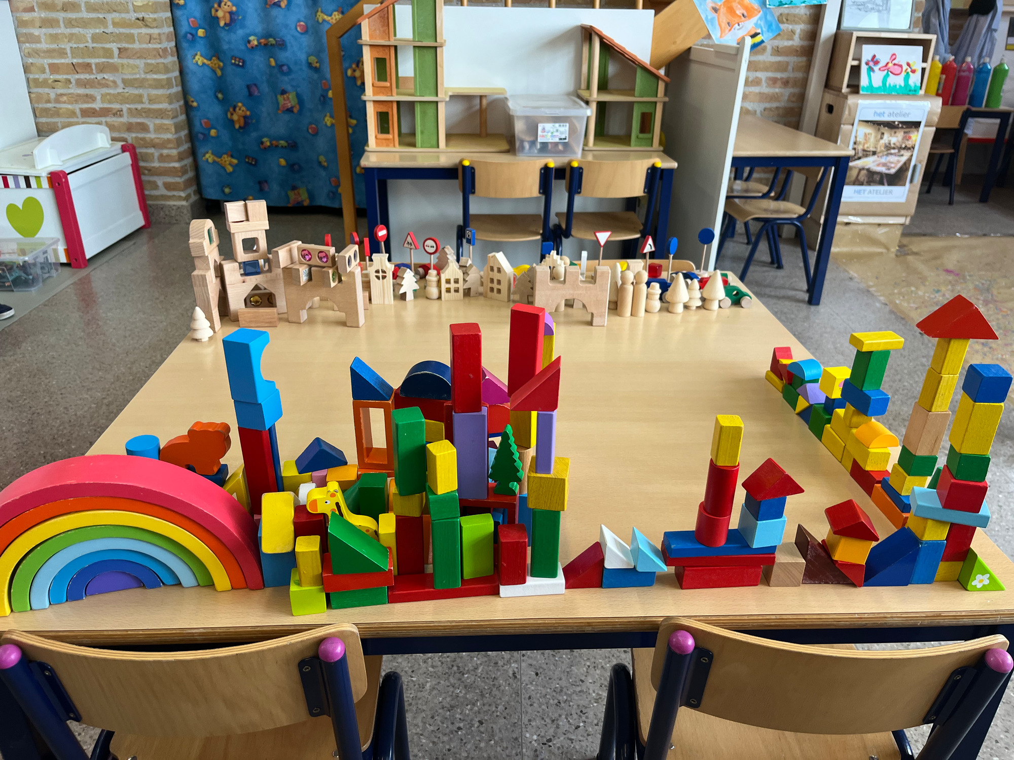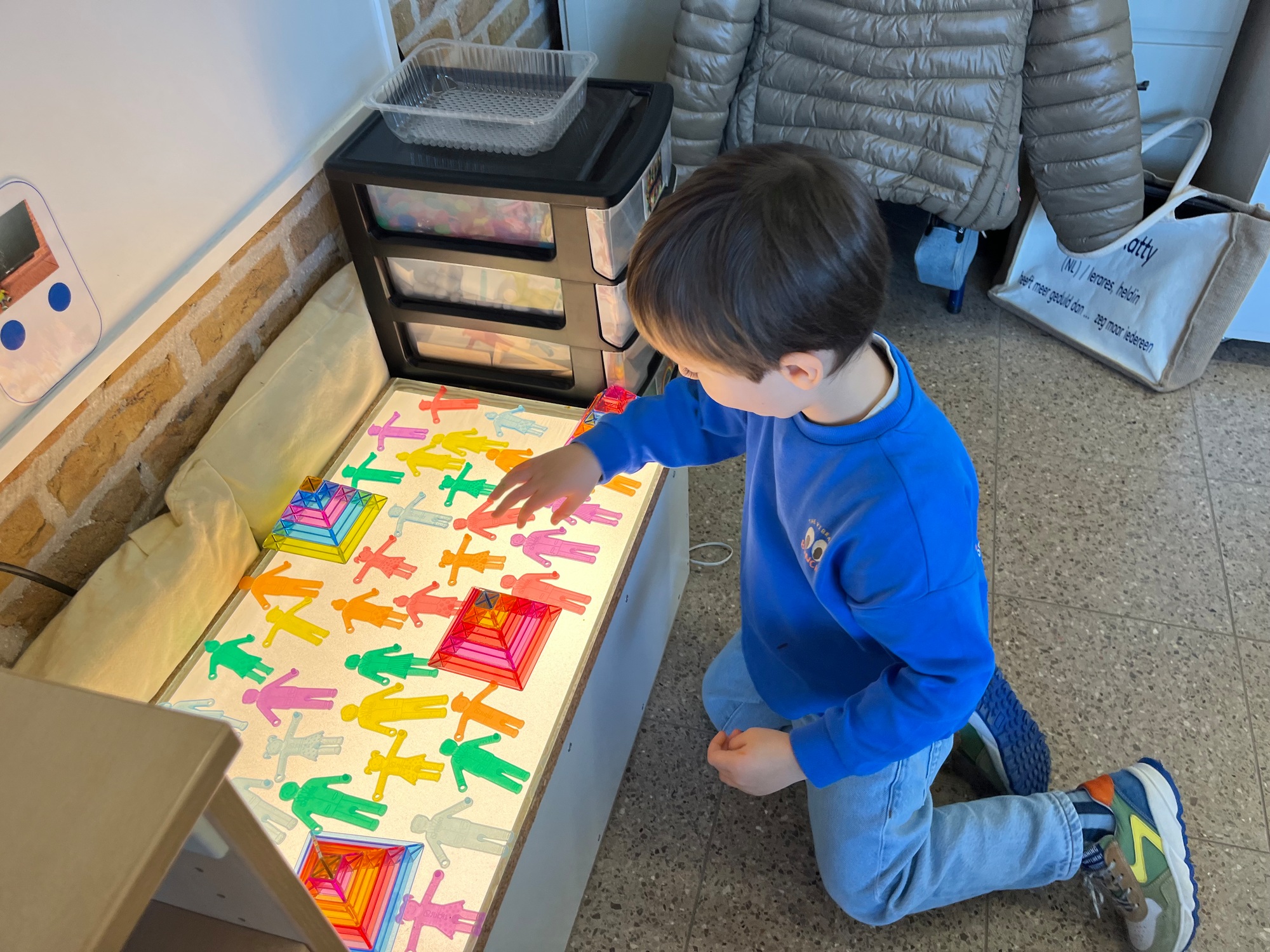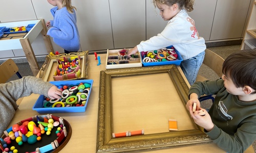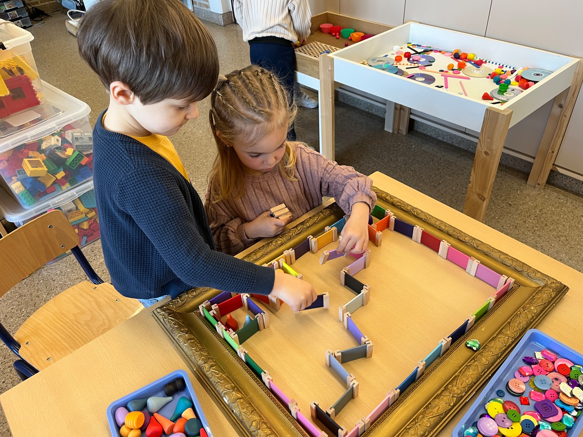 Kunstwerken maken met loose parts, museums bouwen met de magneten, kijken inboeken en vertellen aan elkaar in de boekenhoek