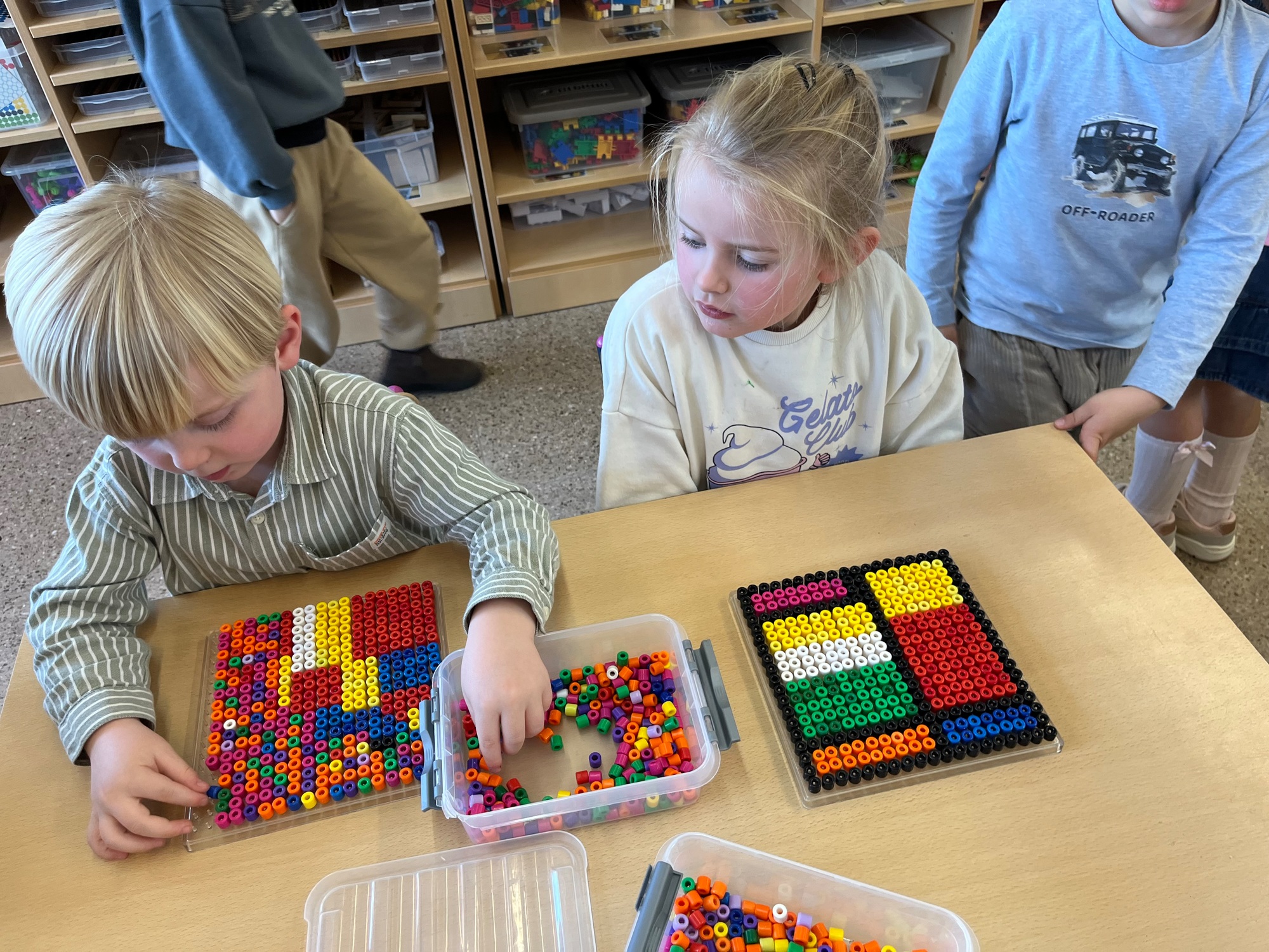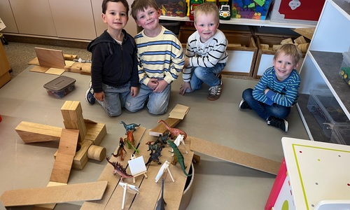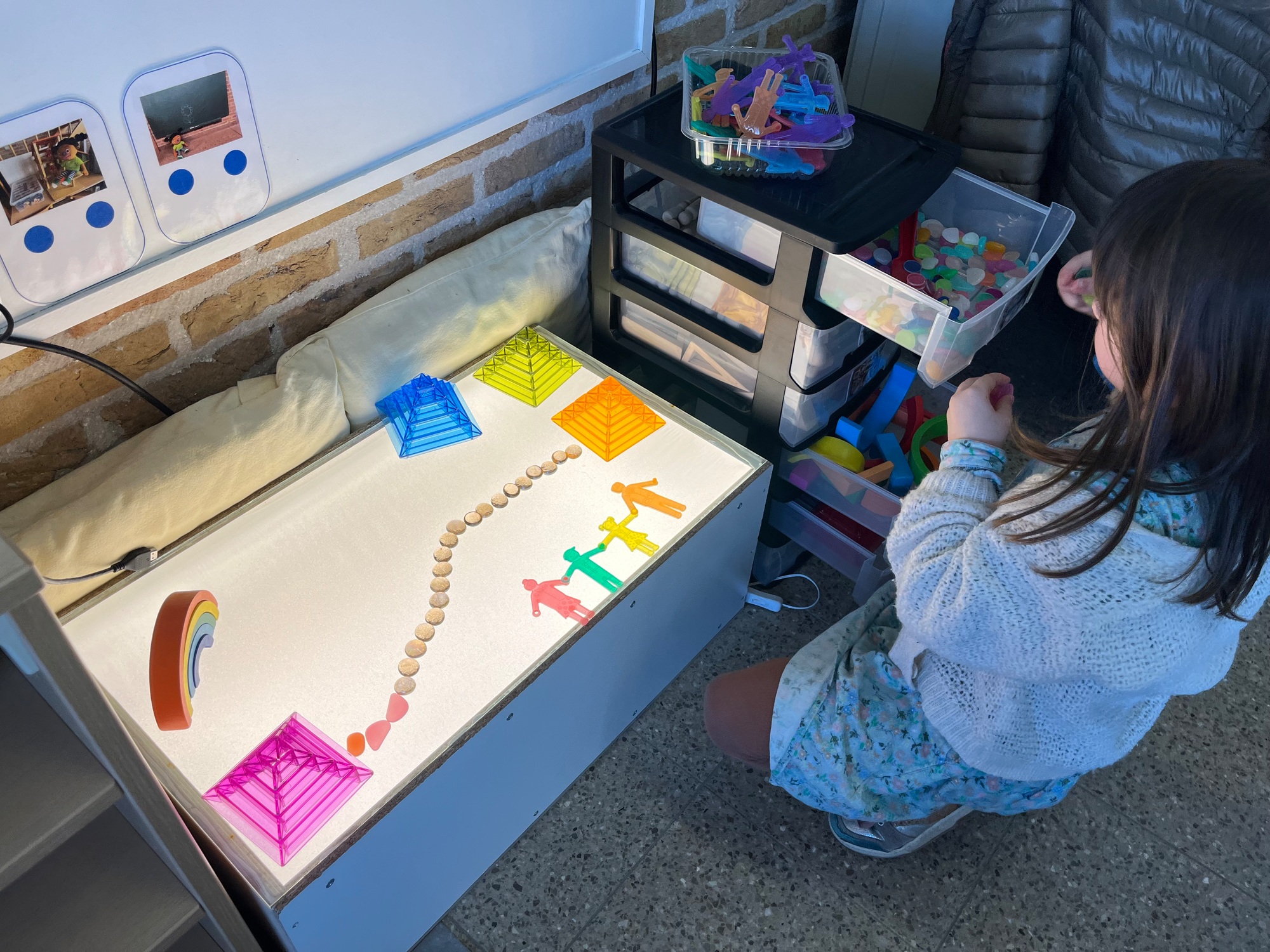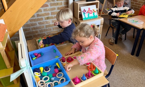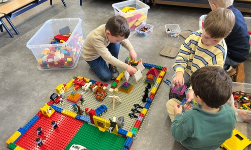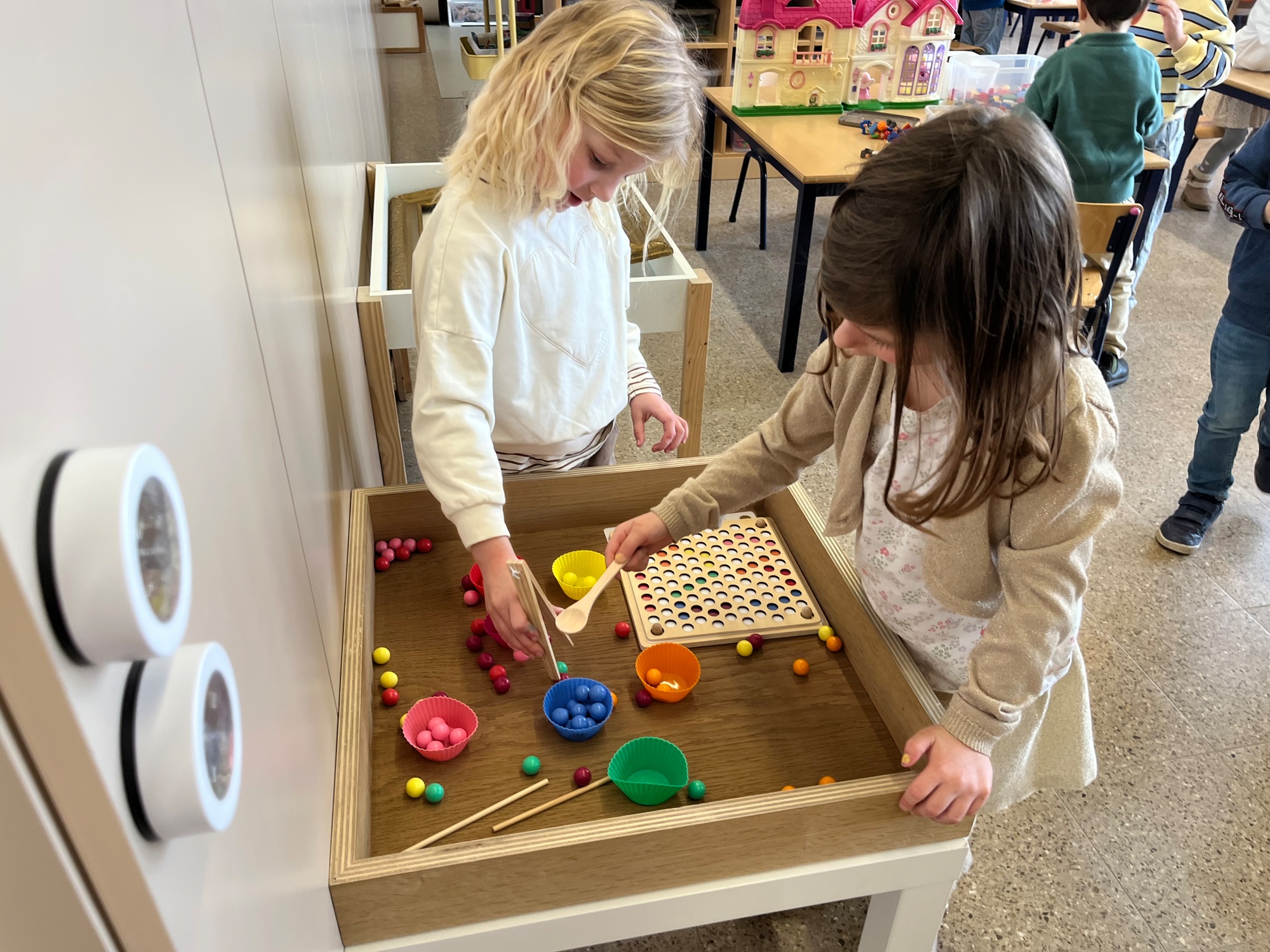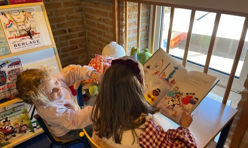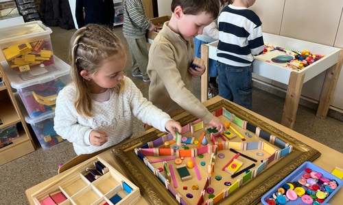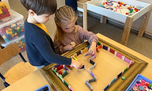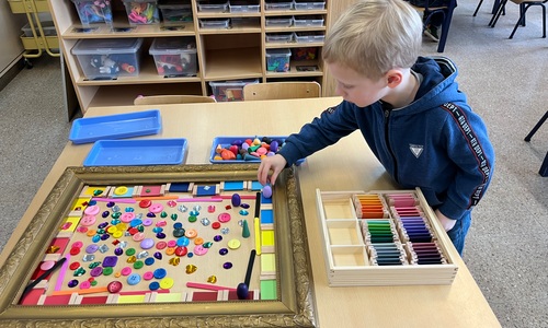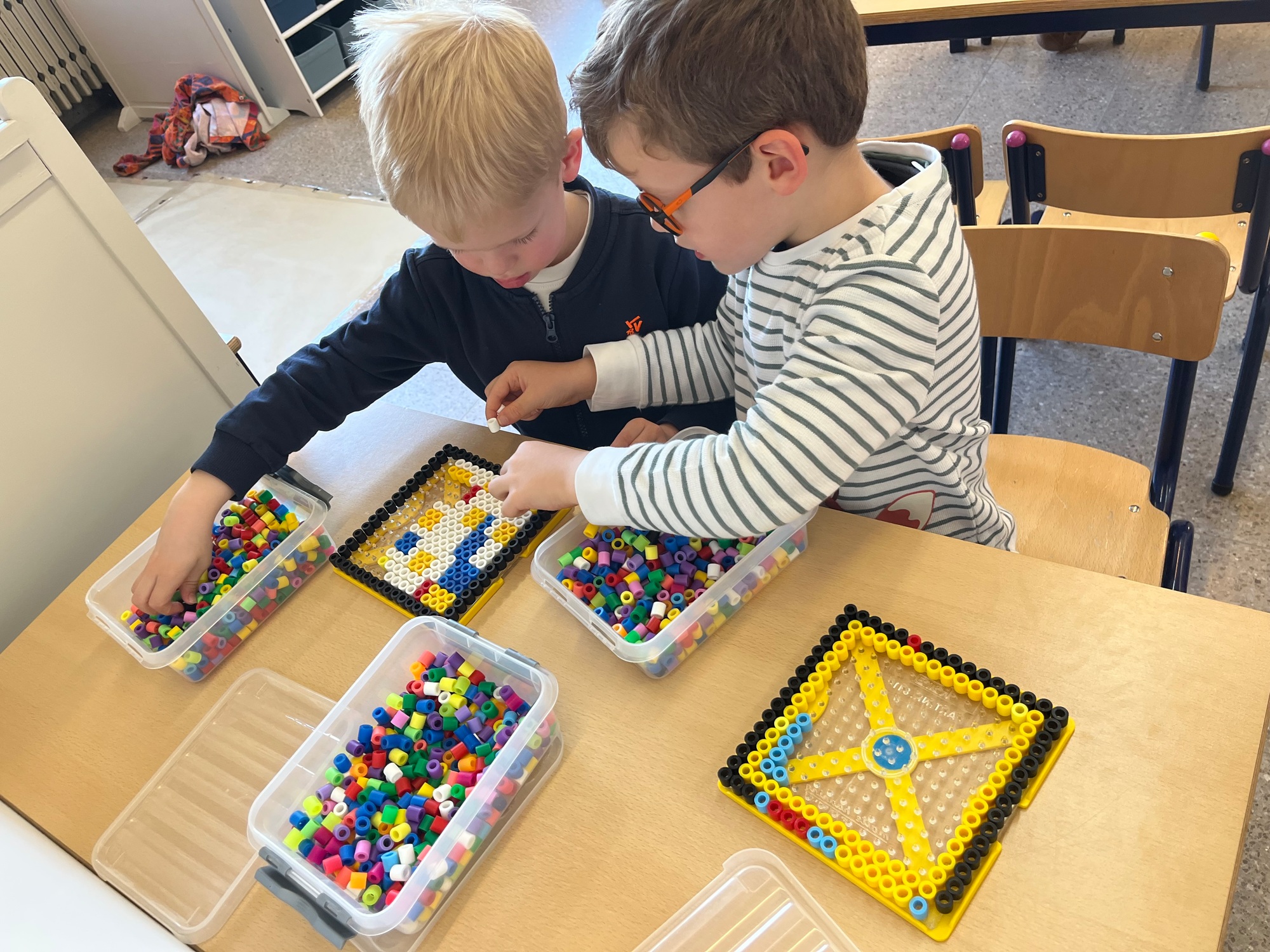 Kunstwerken maken met loose parts, museums bouwen met de magneten, kijken inboeken en vertellen aan elkaar in de boekenhoek