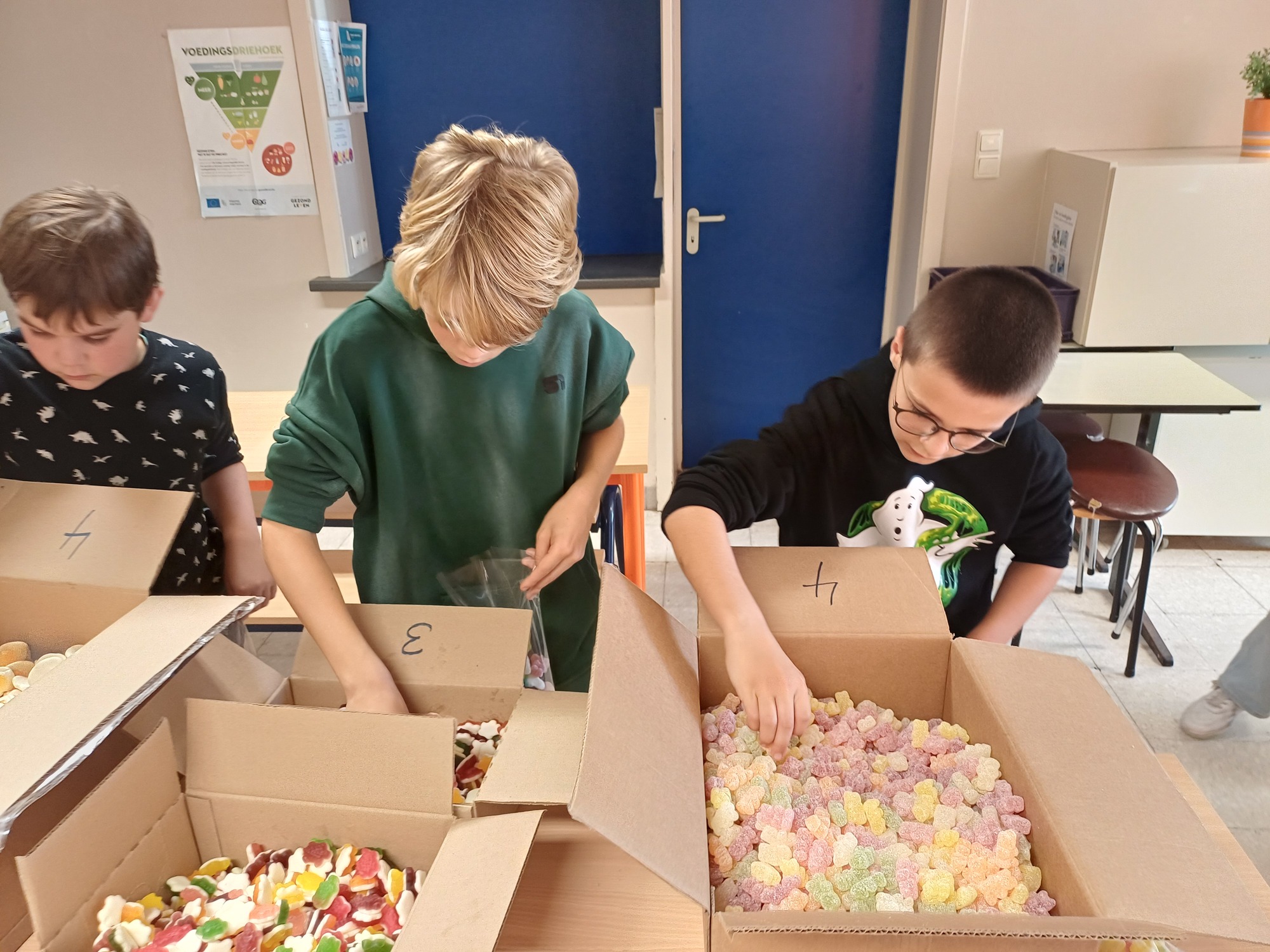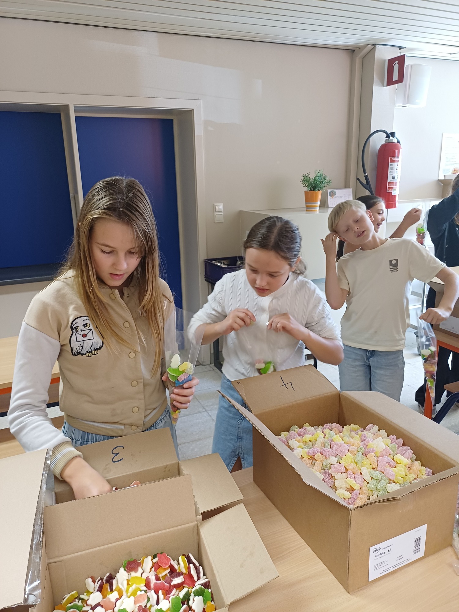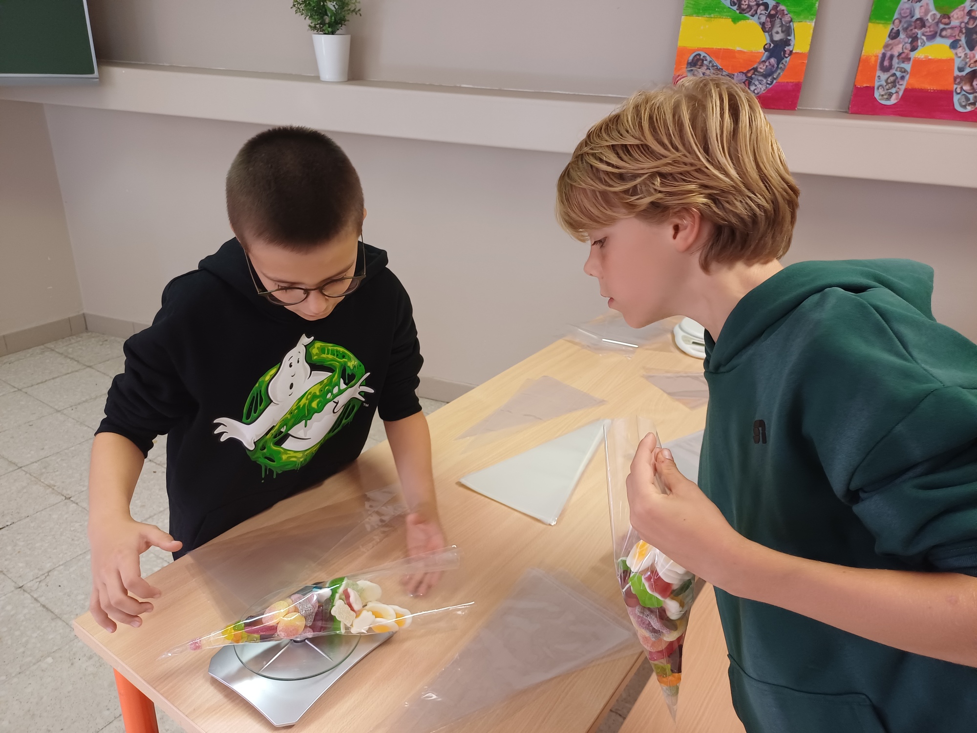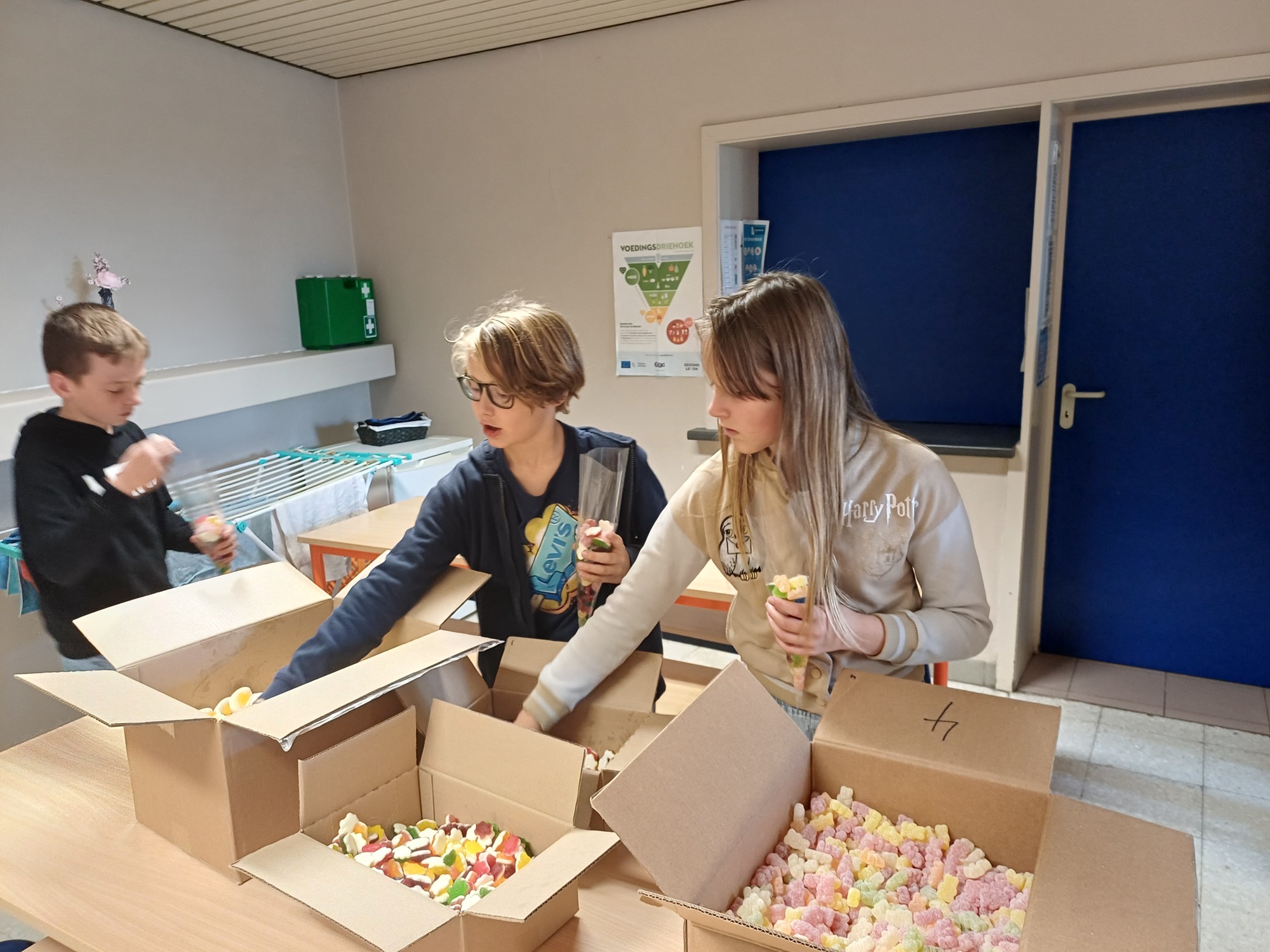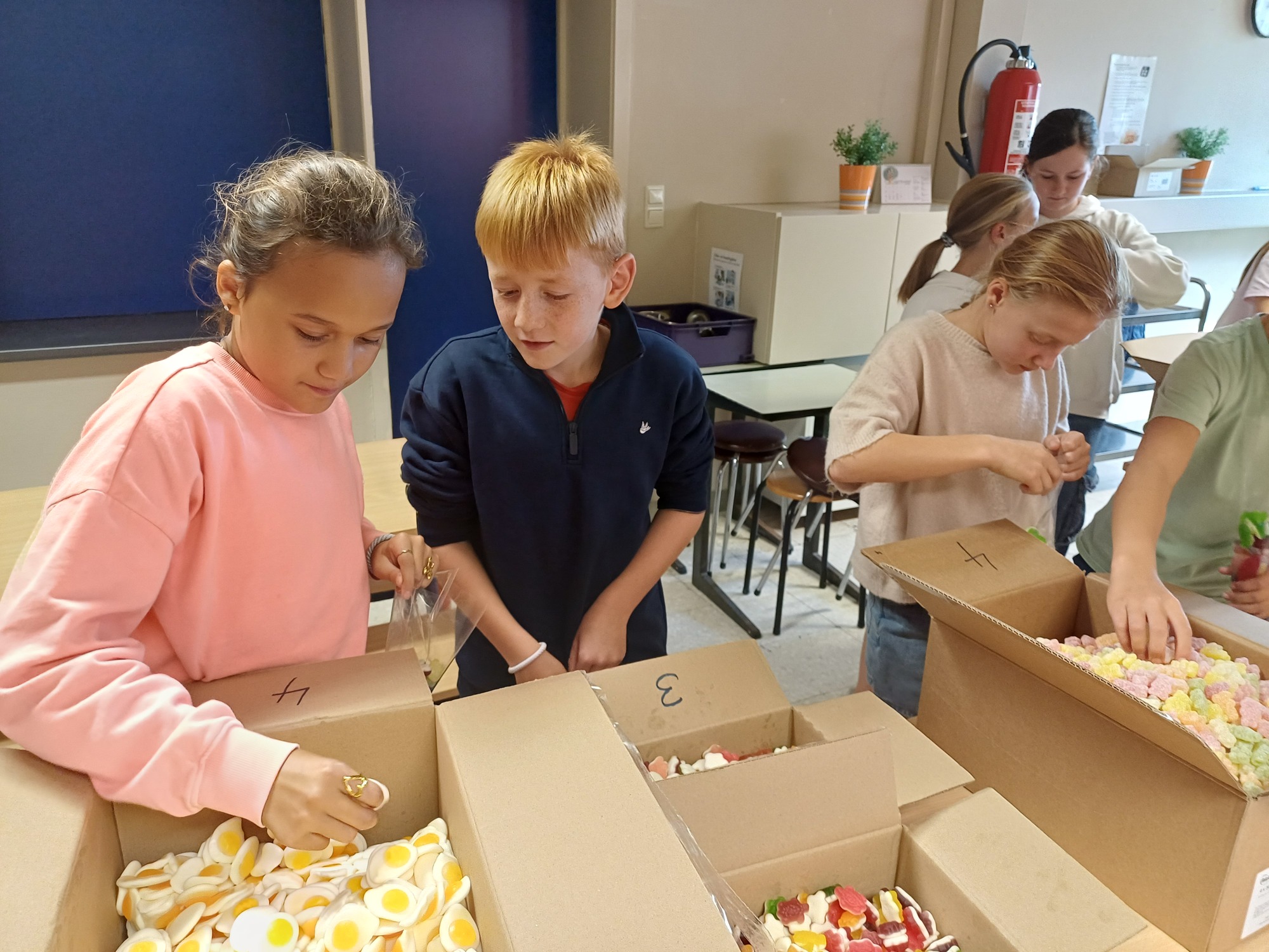 De leerlingen maakten snoepzakjes om te verkopen op de braderie op zaterdag 4 oktober.
