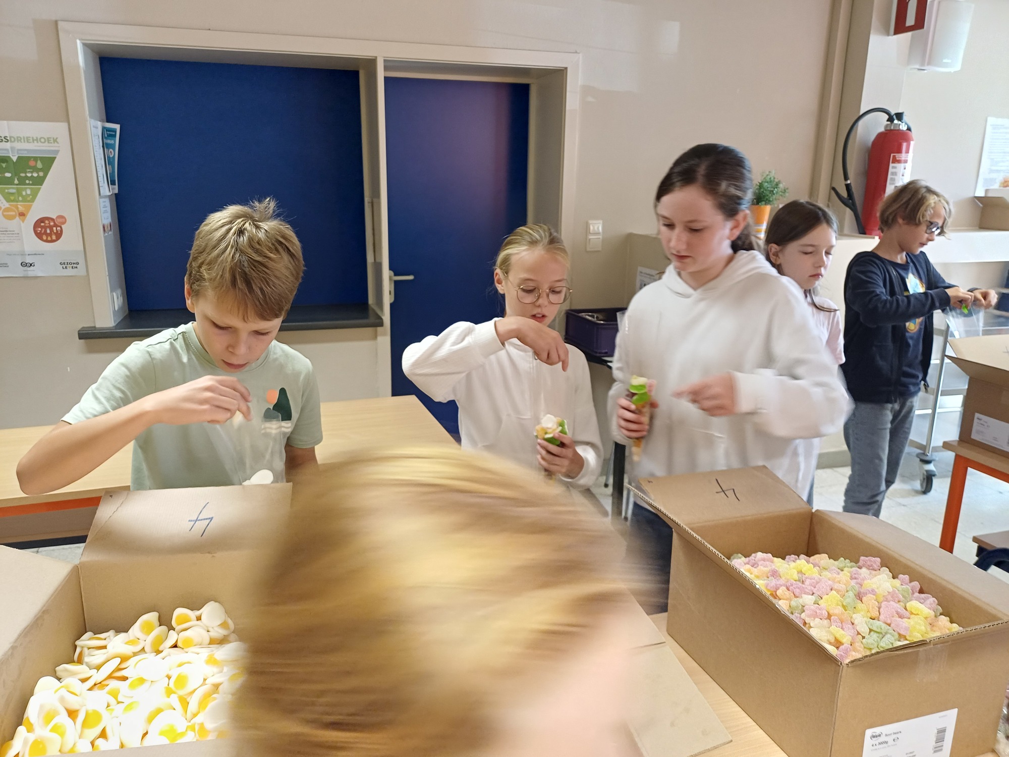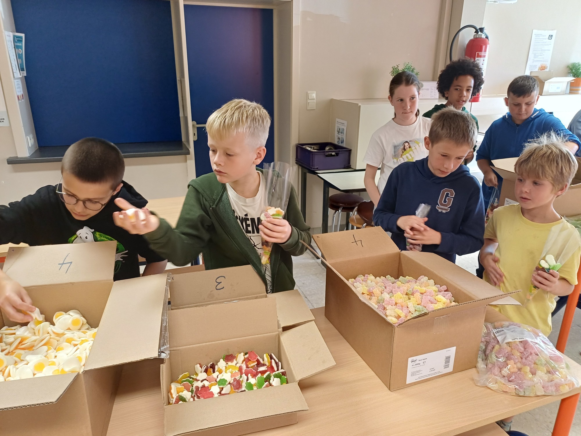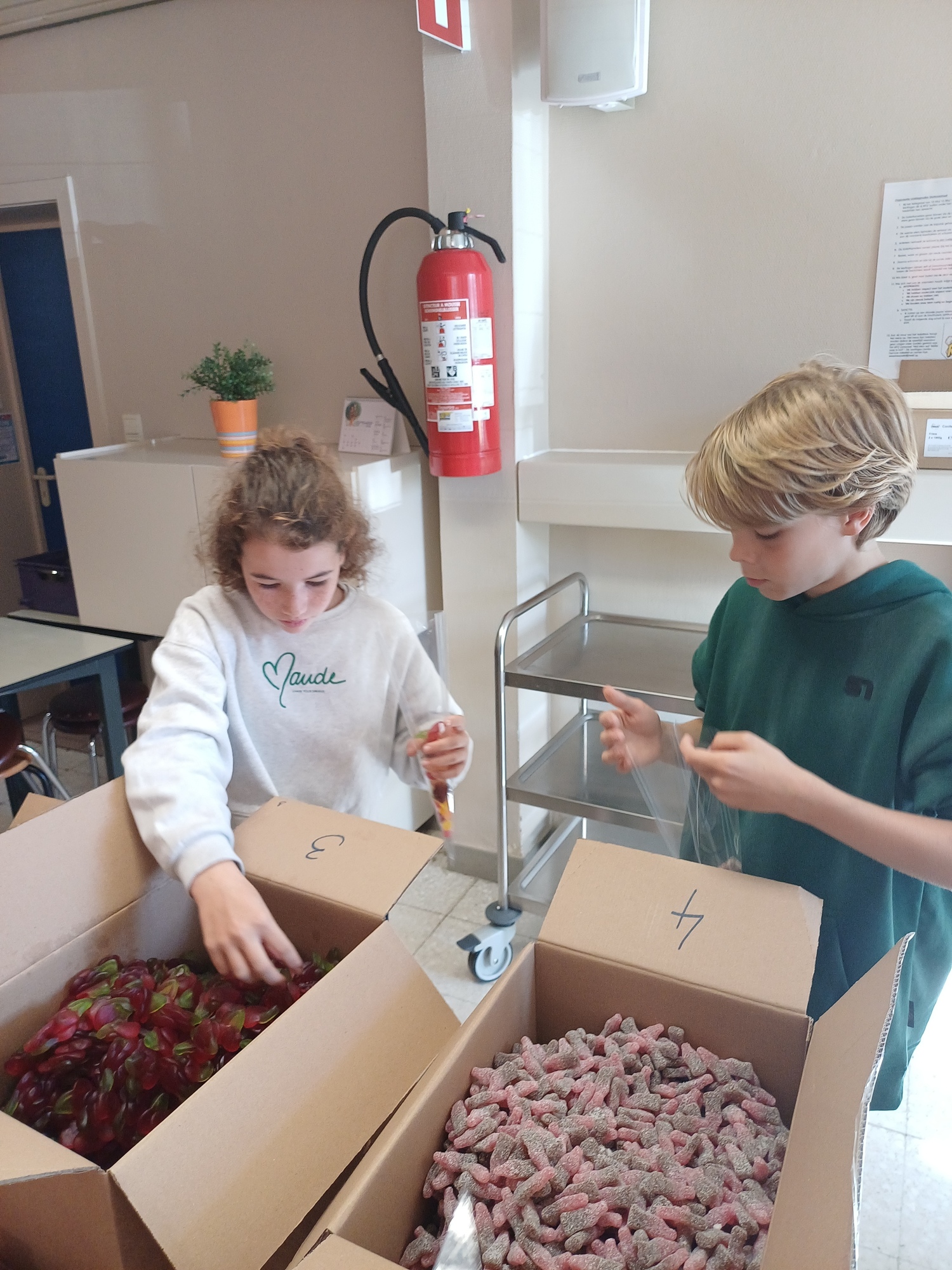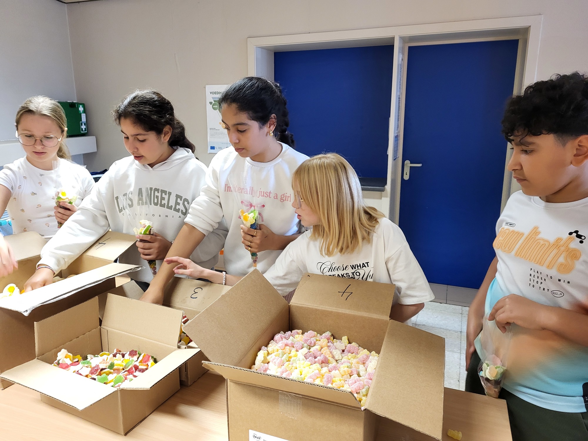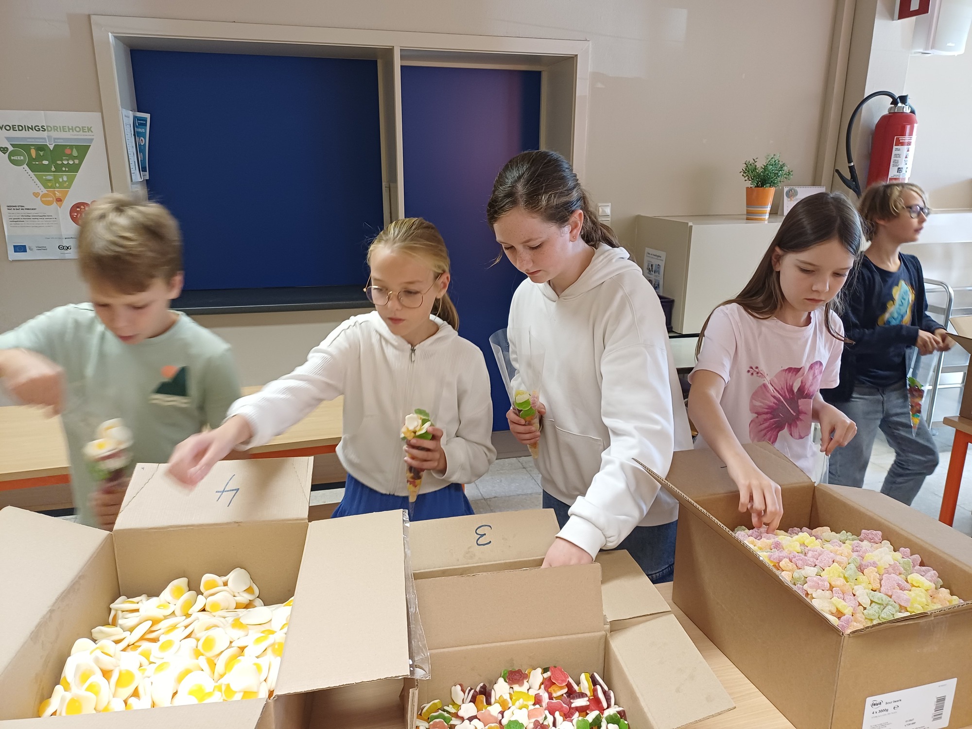 De leerlingen maakten snoepzakjes om te verkopen op de braderie op zaterdag 4 oktober.