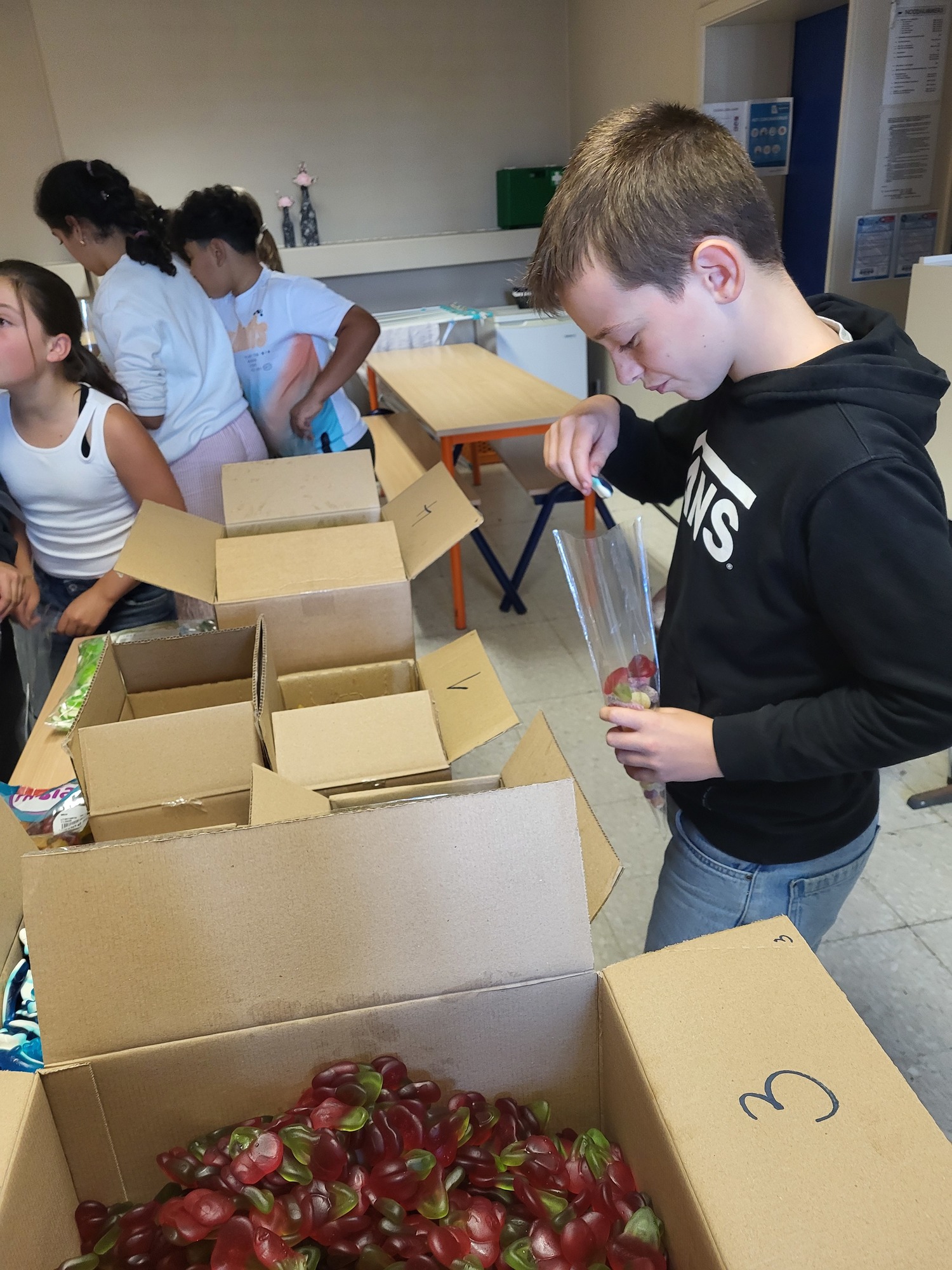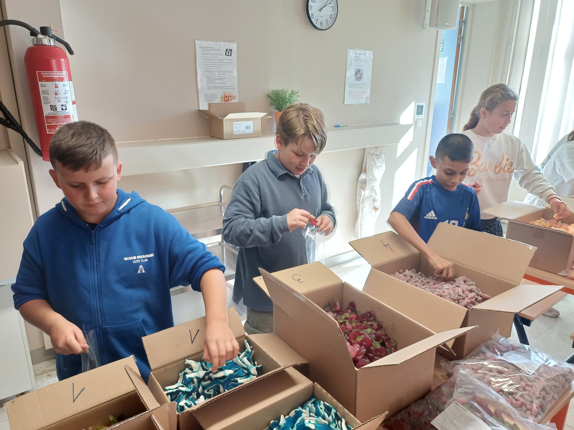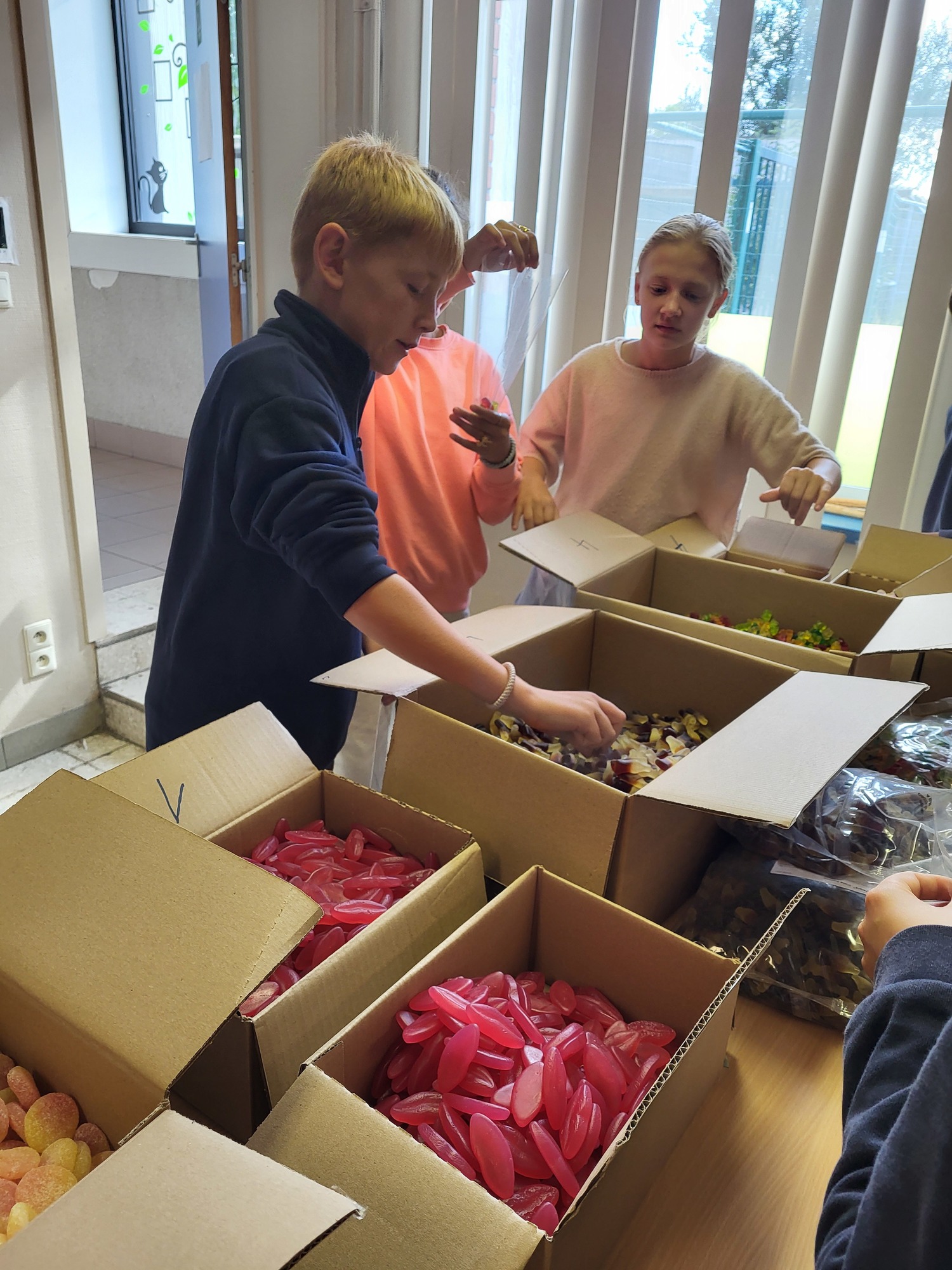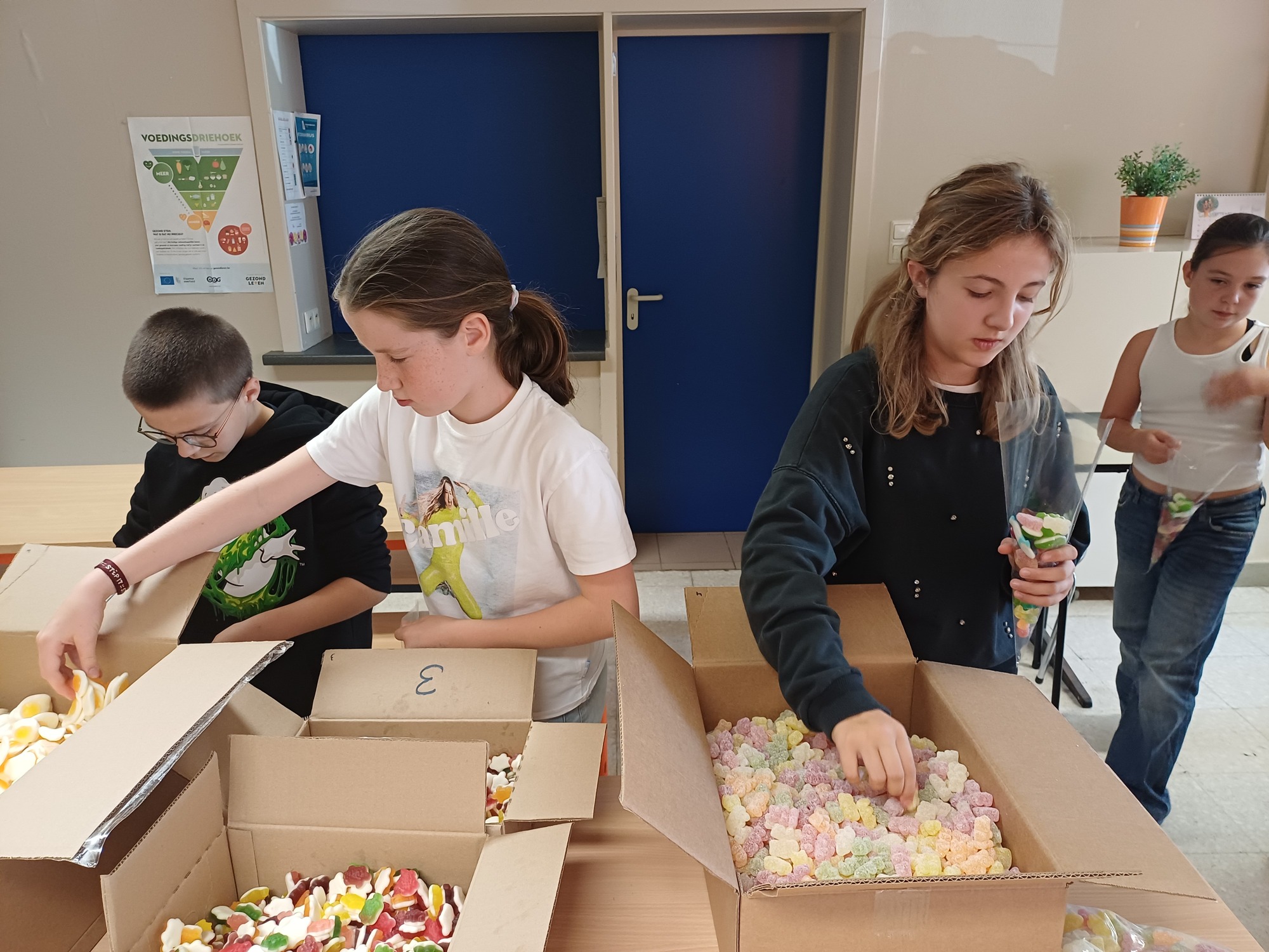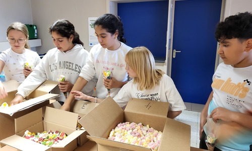 De leerlingen maakten snoepzakjes om te verkopen op de braderie op zaterdag 4 oktober.