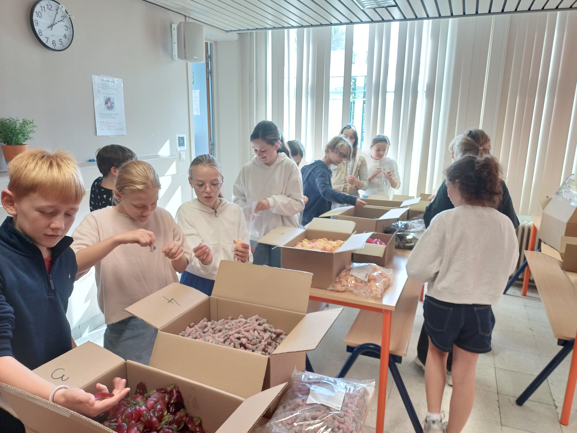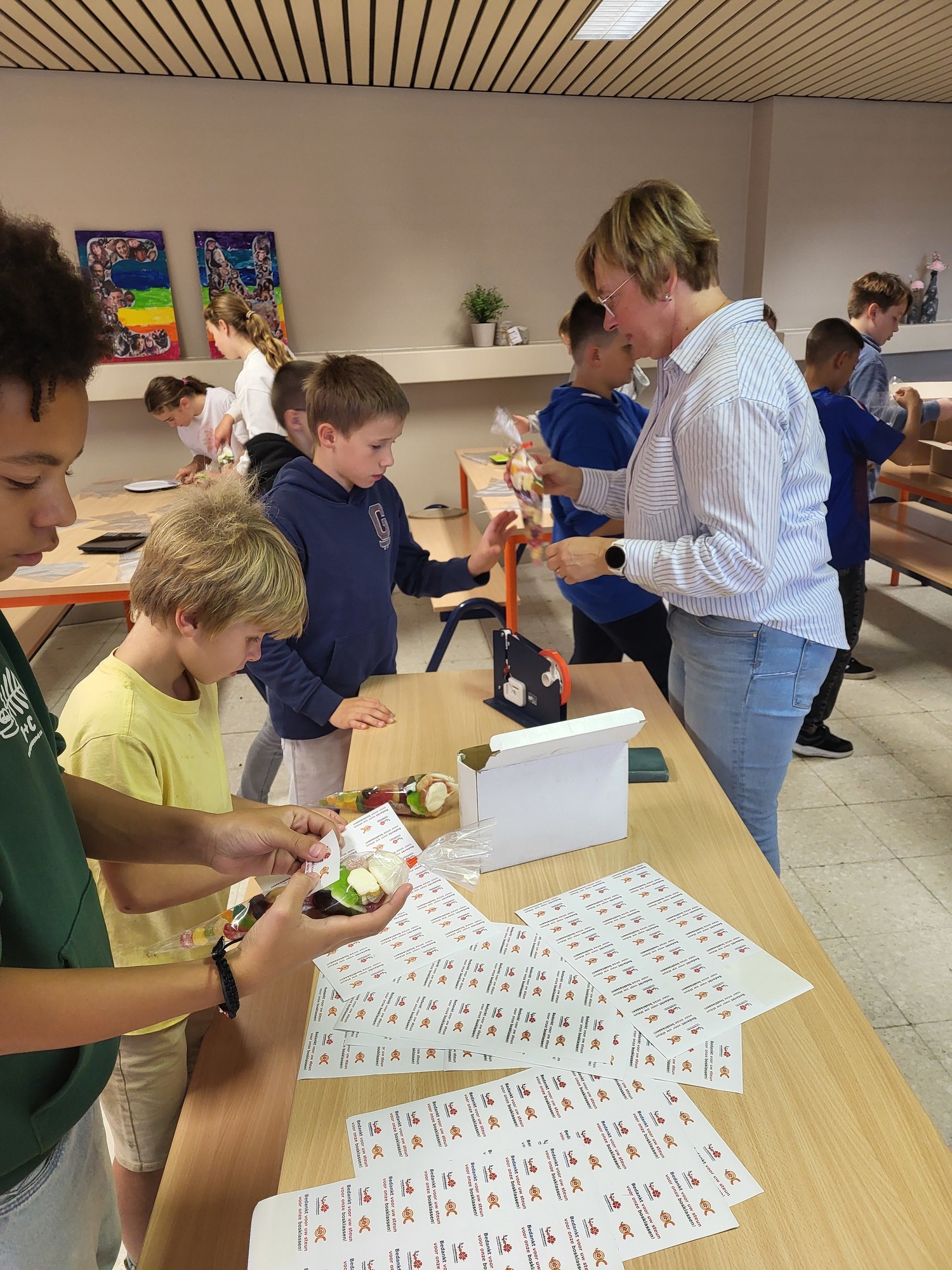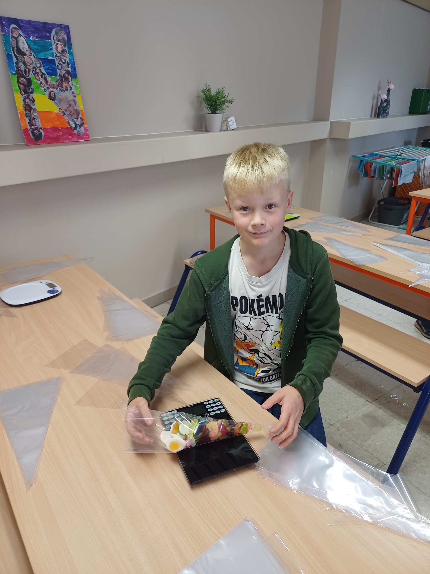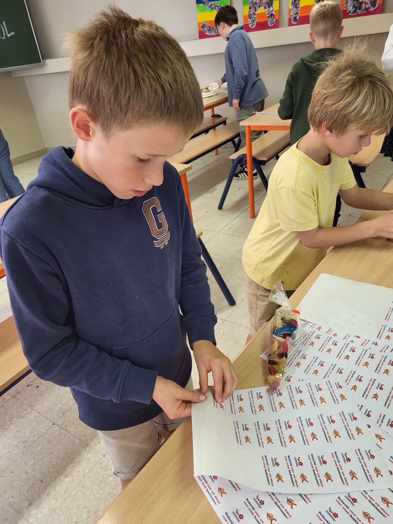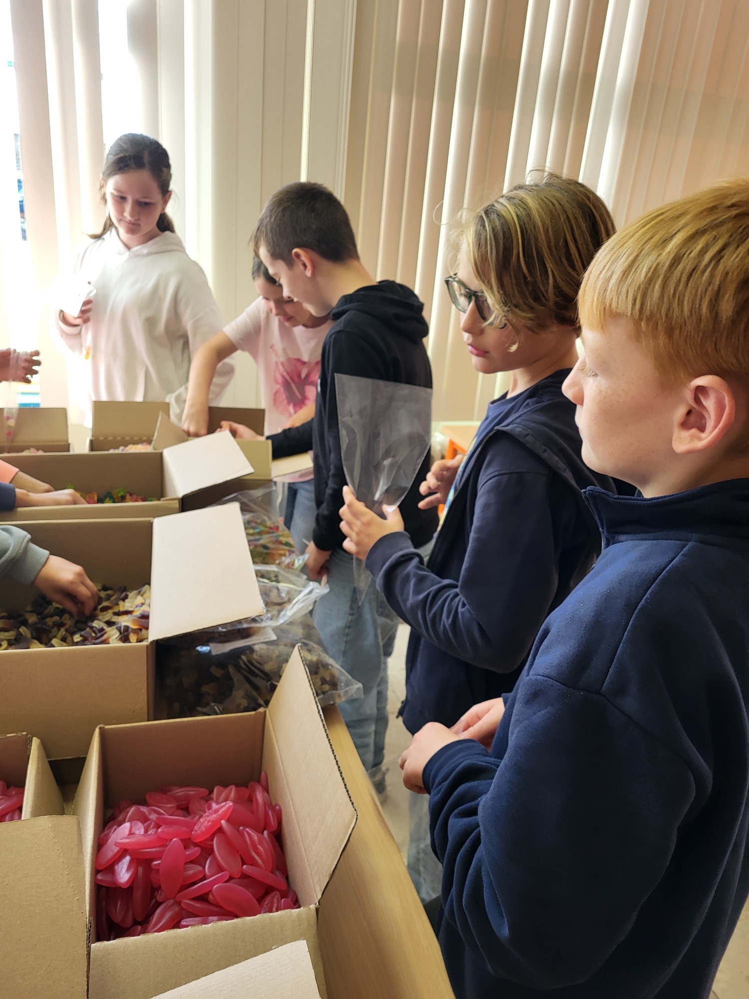 De leerlingen maakten snoepzakjes om te verkopen op de braderie op zaterdag 4 oktober.
