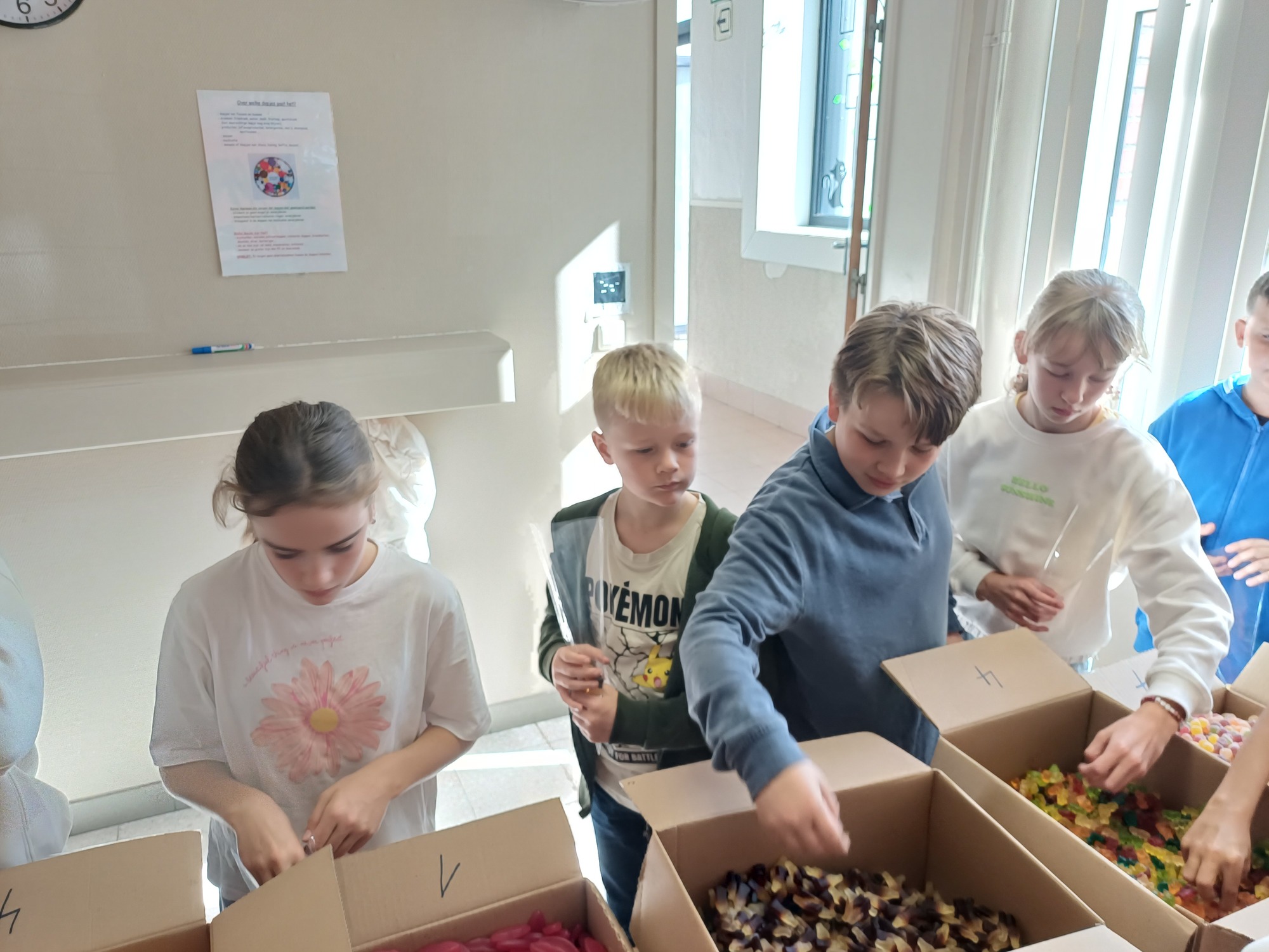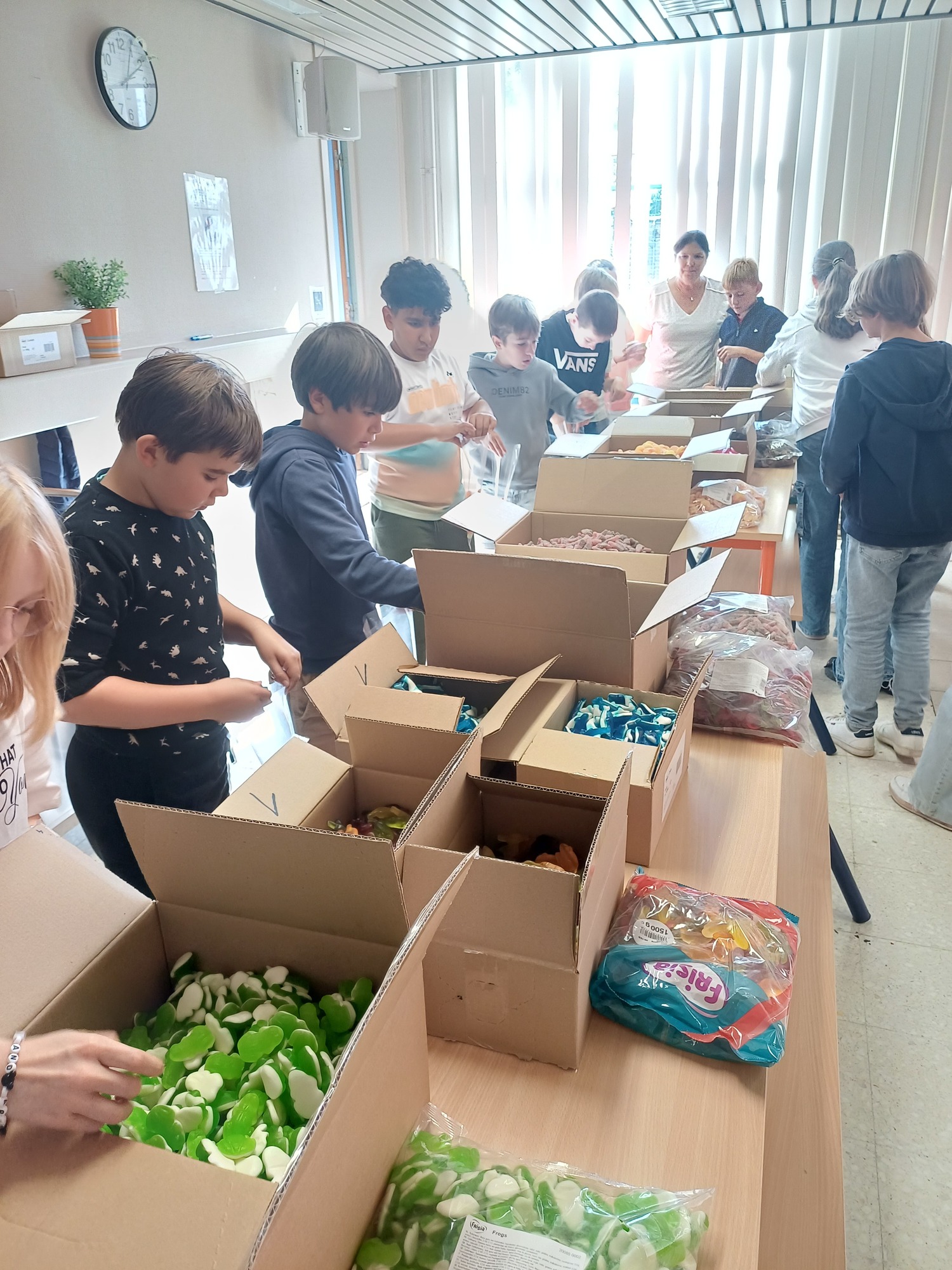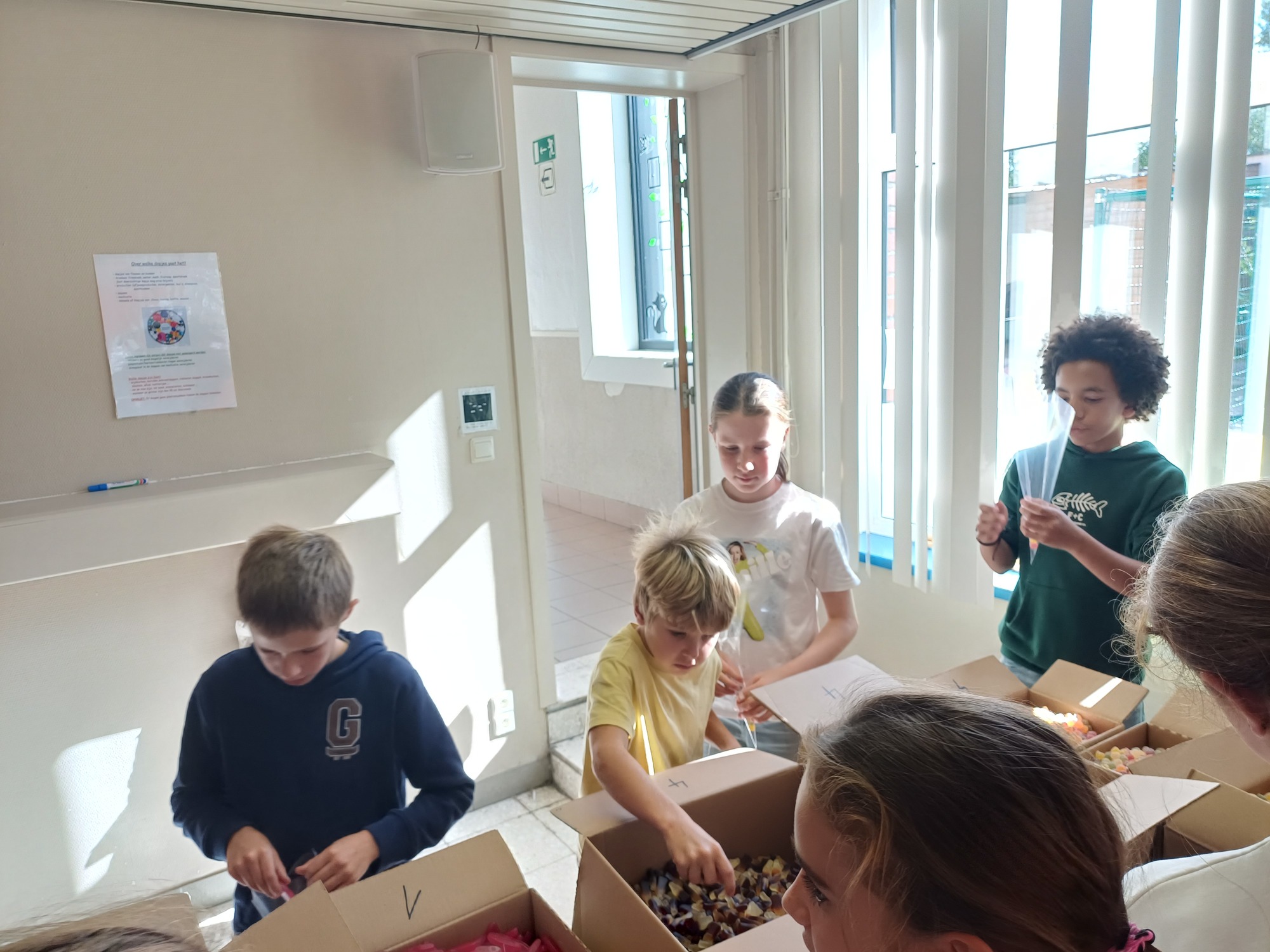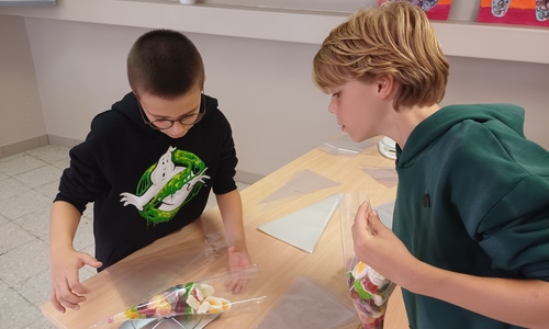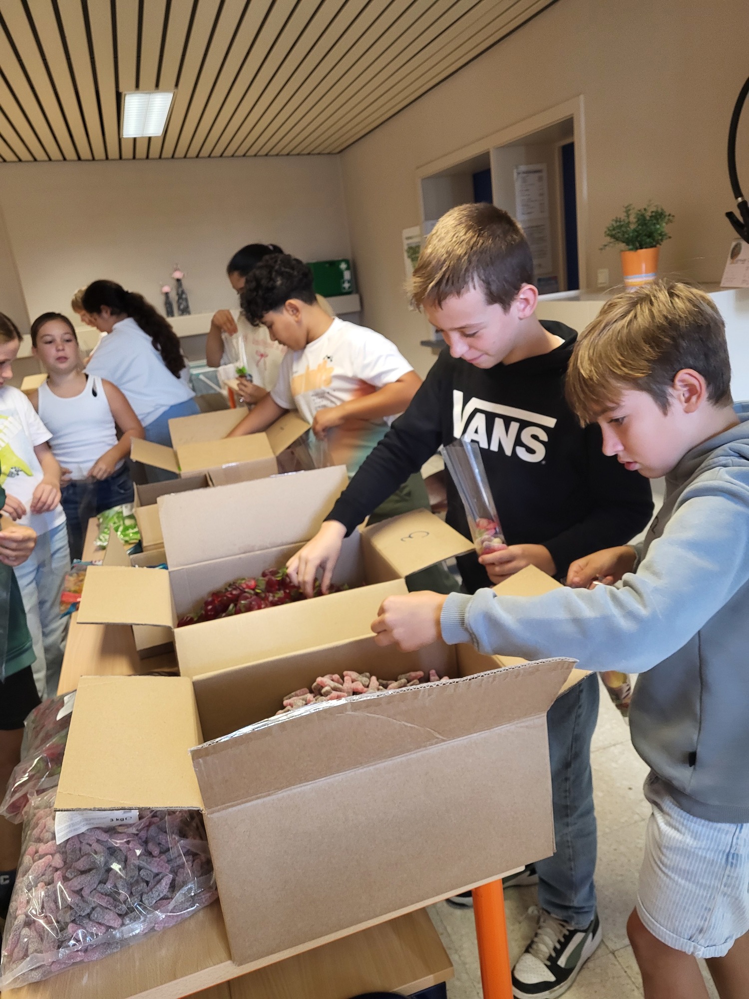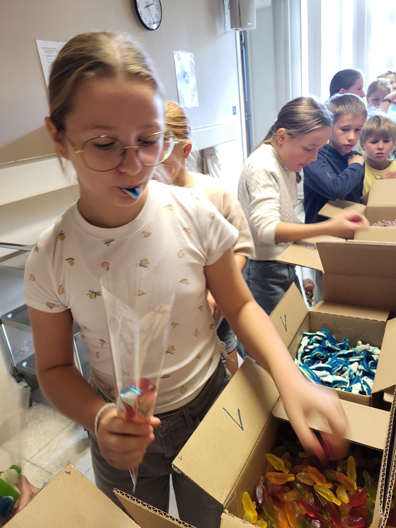 De leerlingen maakten snoepzakjes om te verkopen op de braderie op zaterdag 4 oktober.