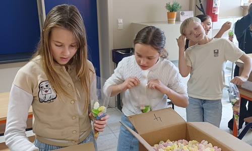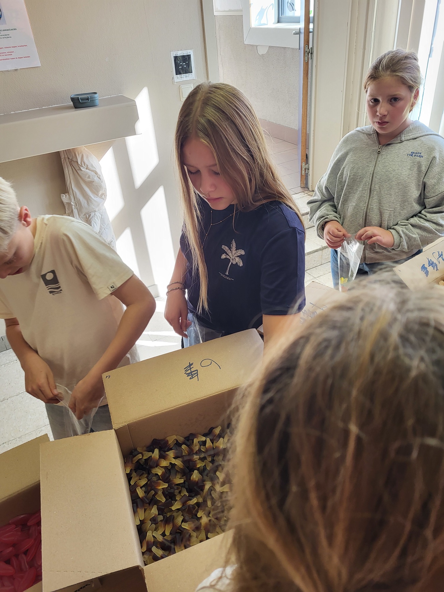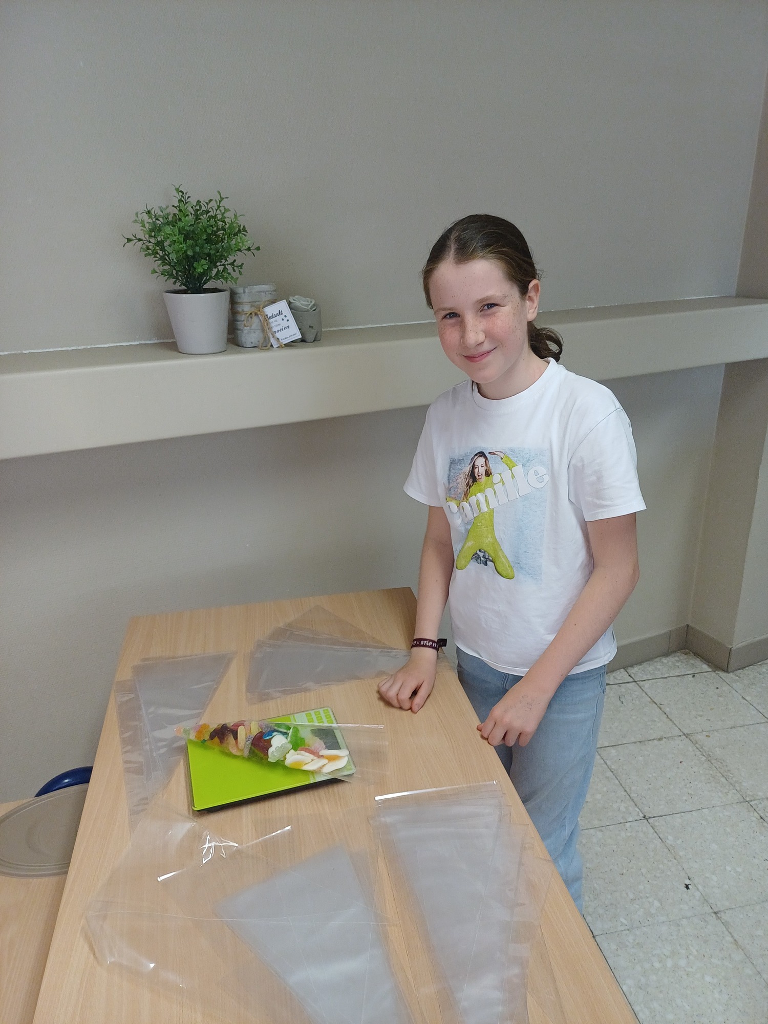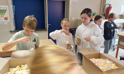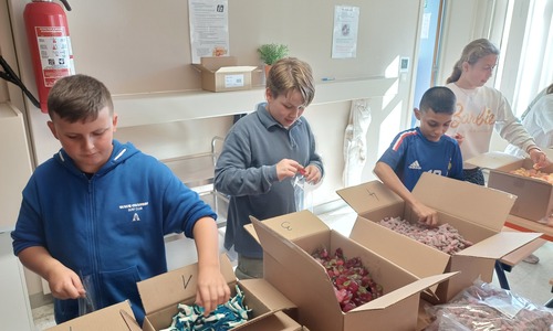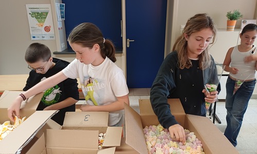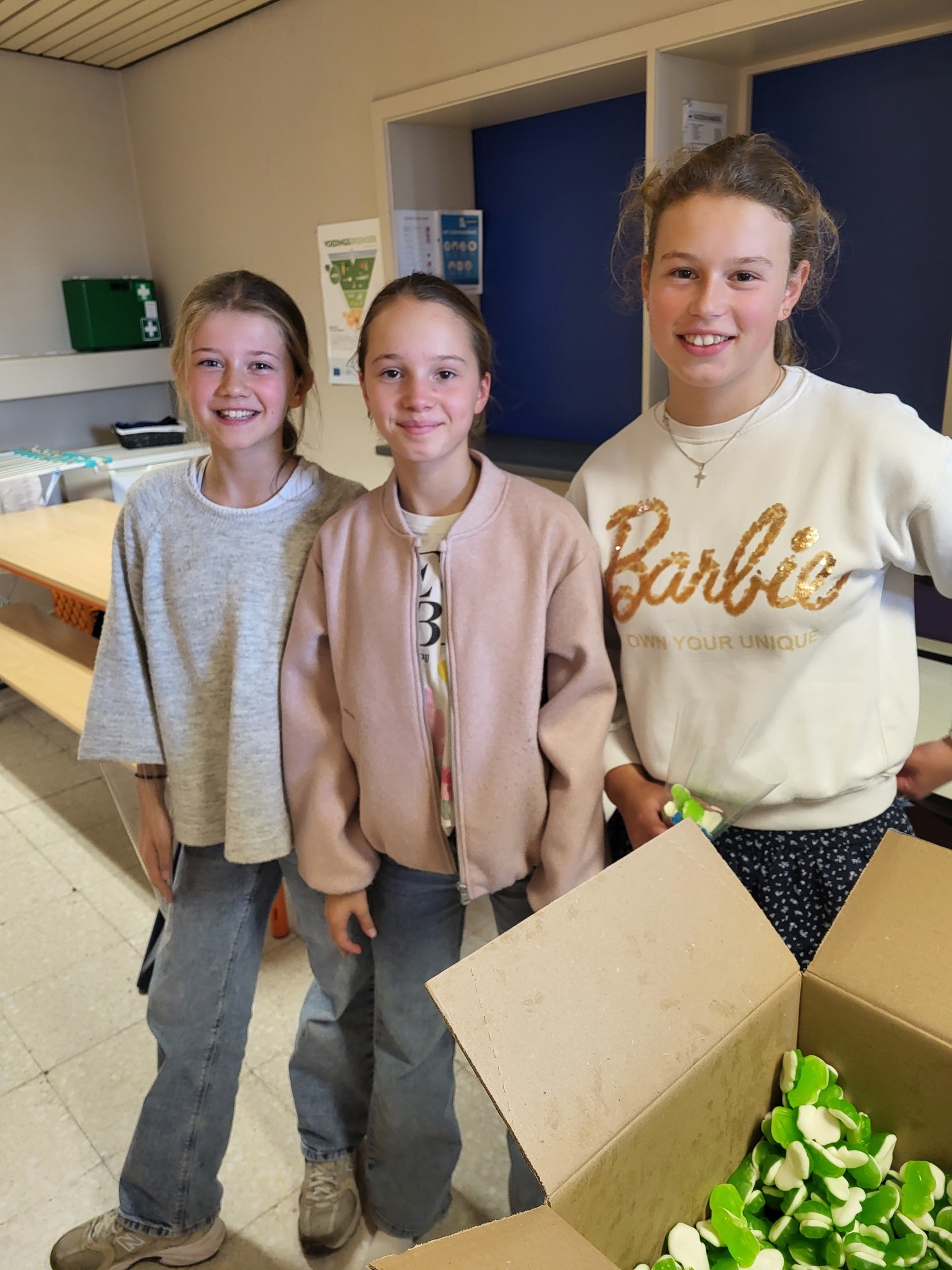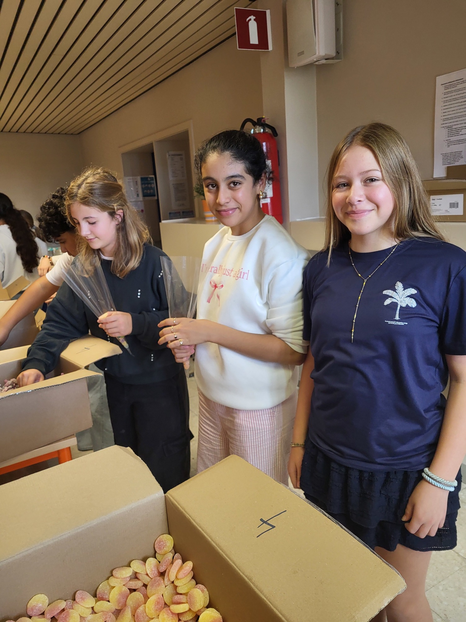 De leerlingen maakten snoepzakjes om te verkopen op de braderie op zaterdag 4 oktober.