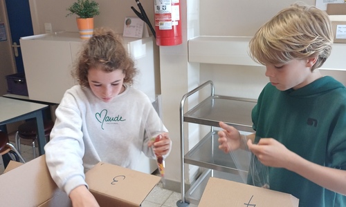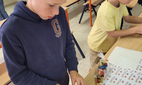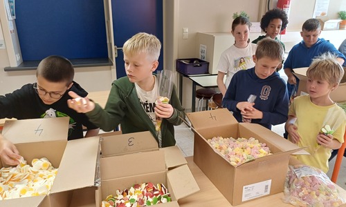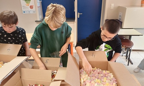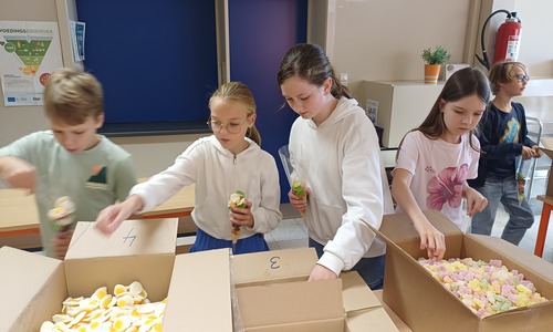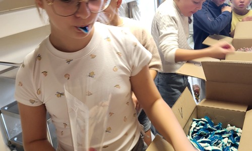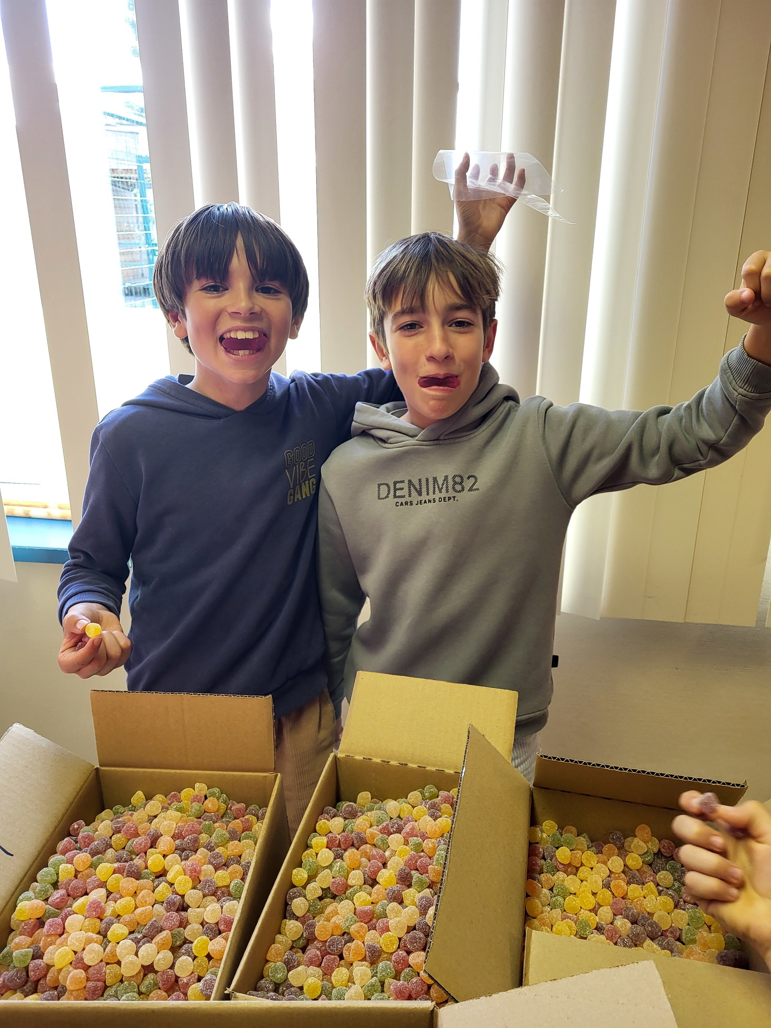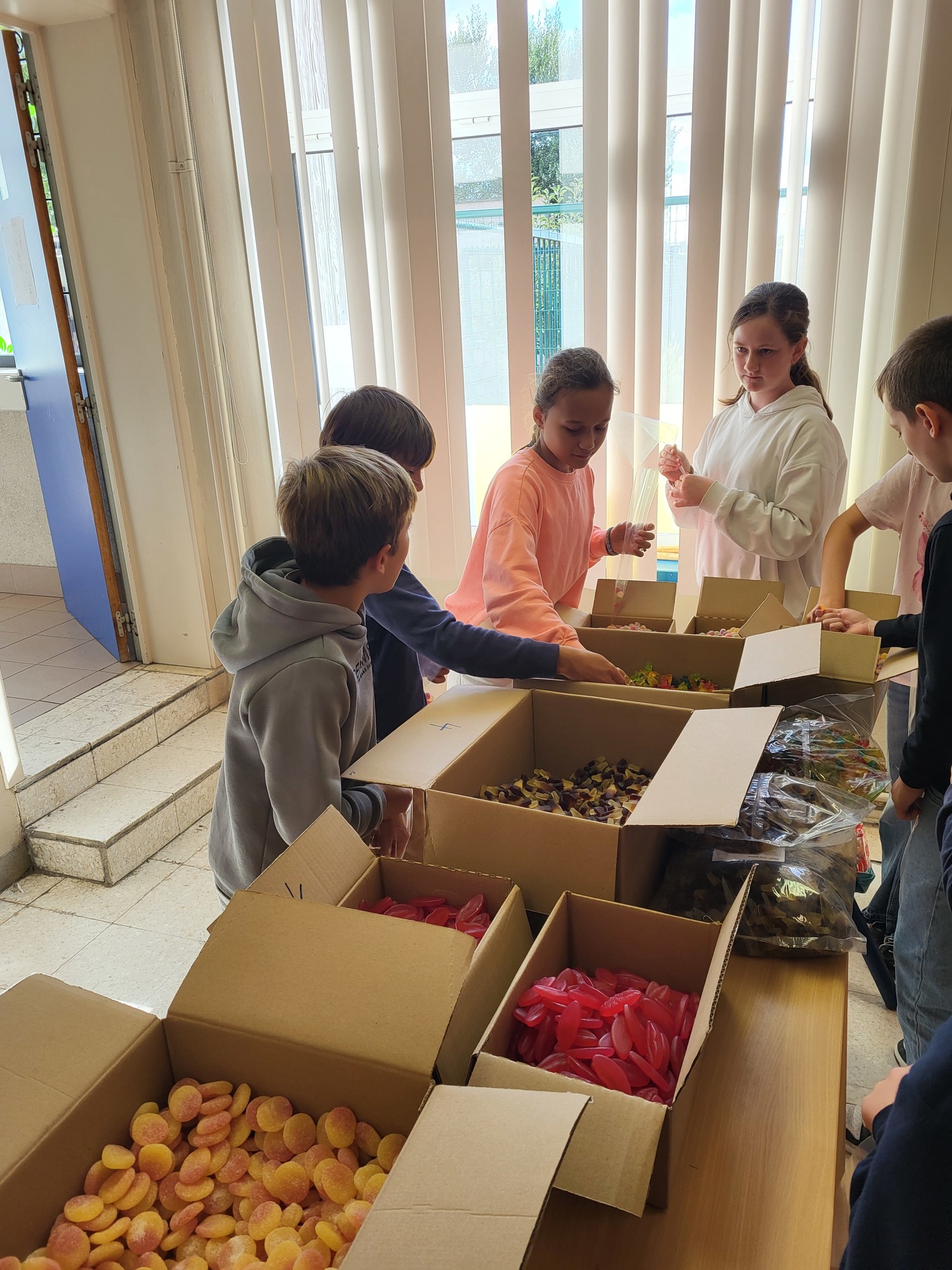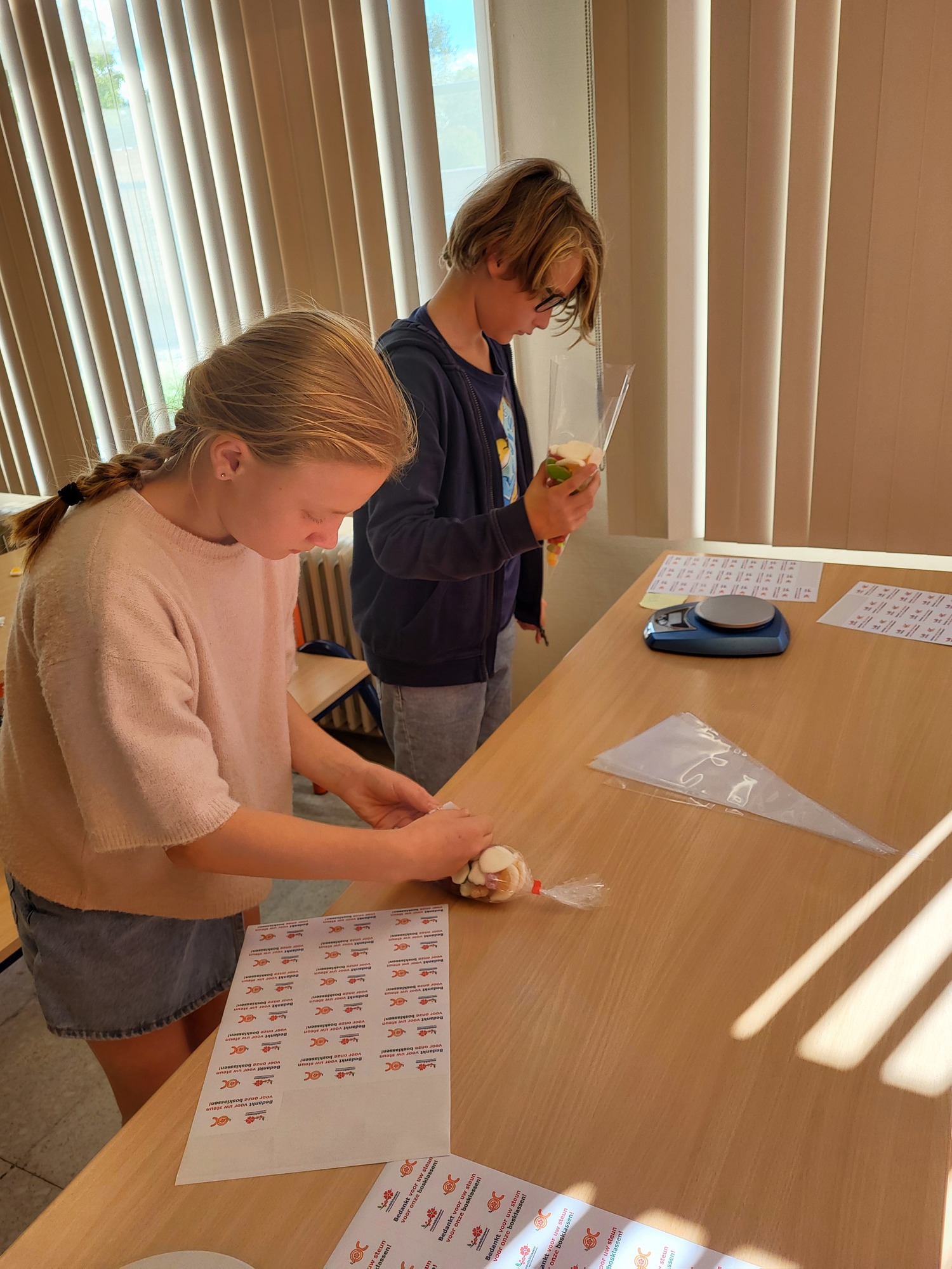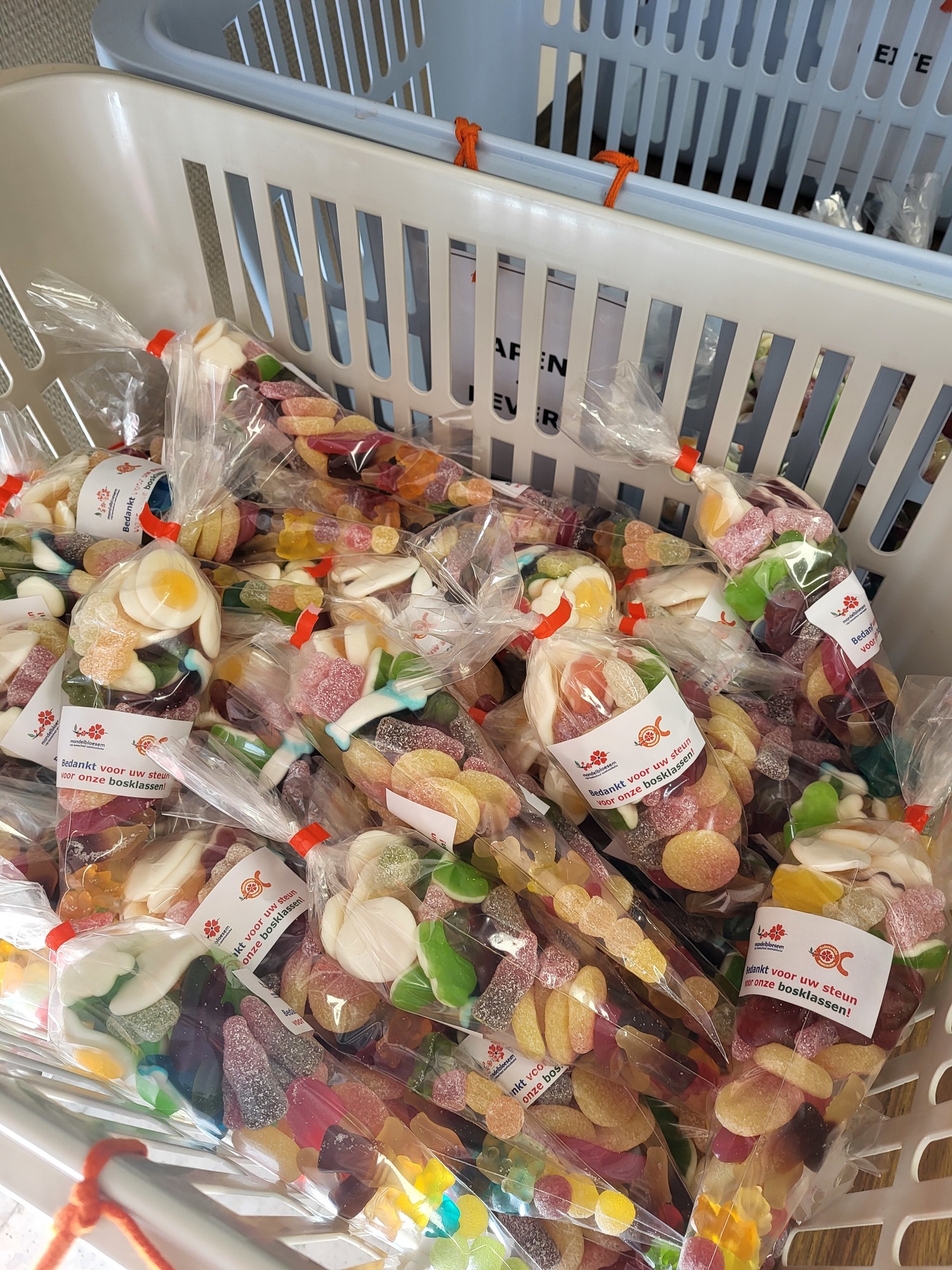De leerlingen maakten snoepzakjes om te verkopen op de braderie op zaterdag 4 oktober.