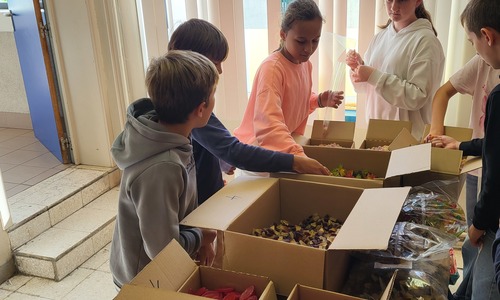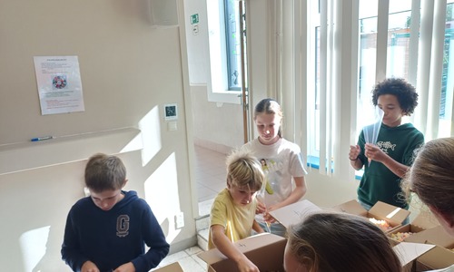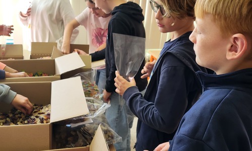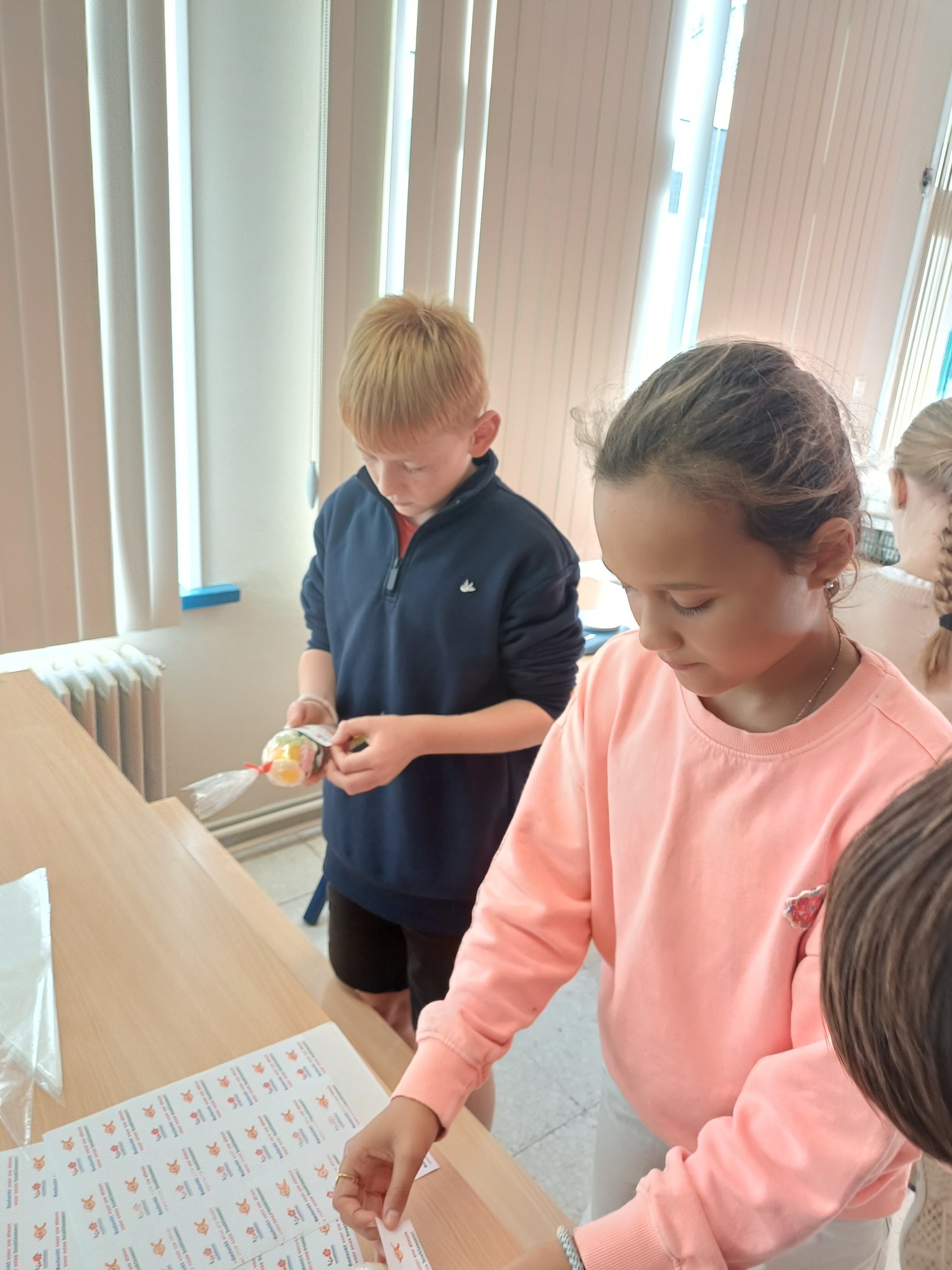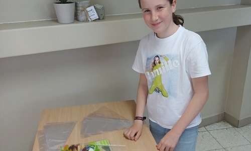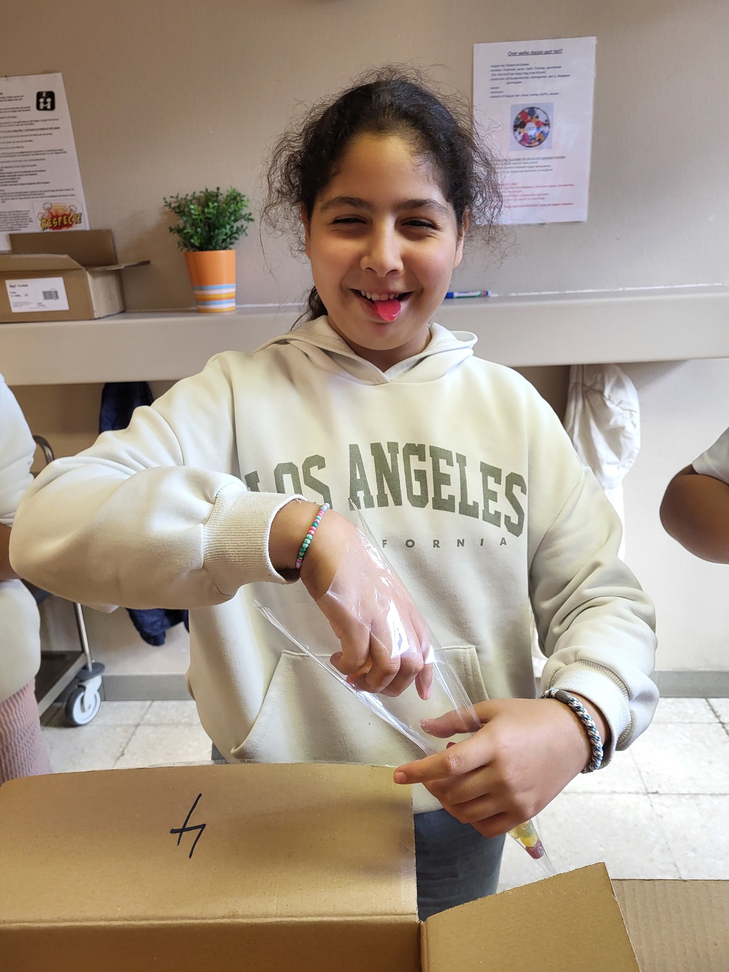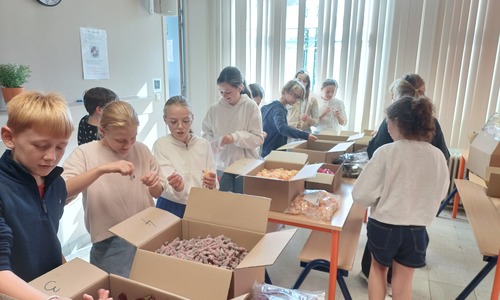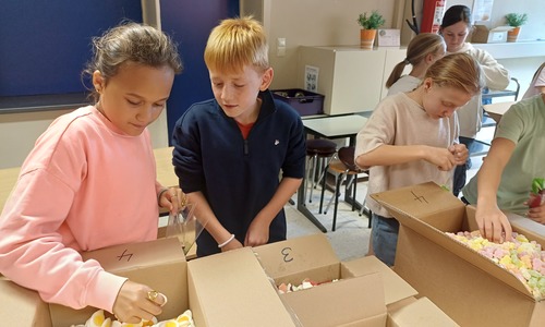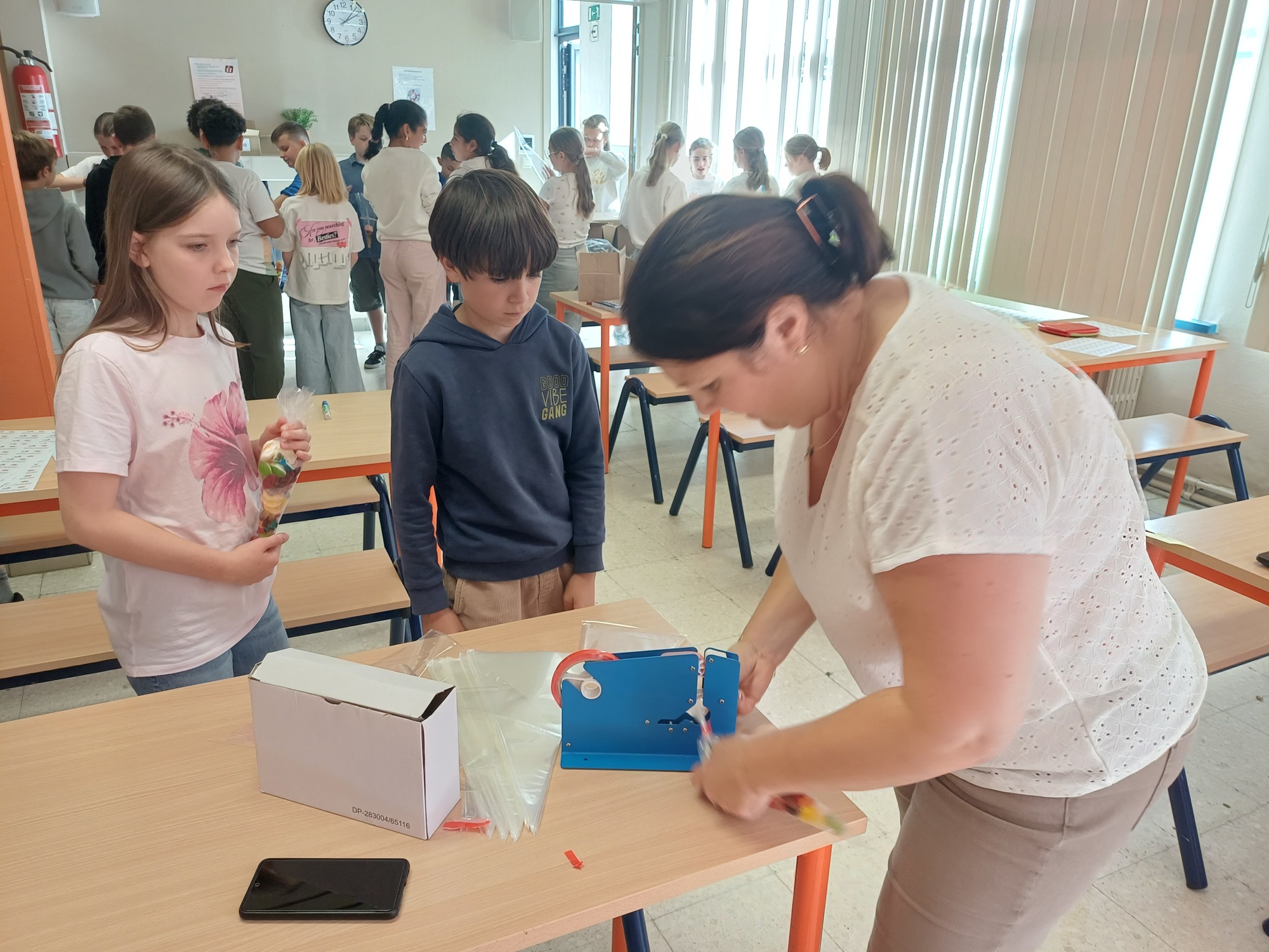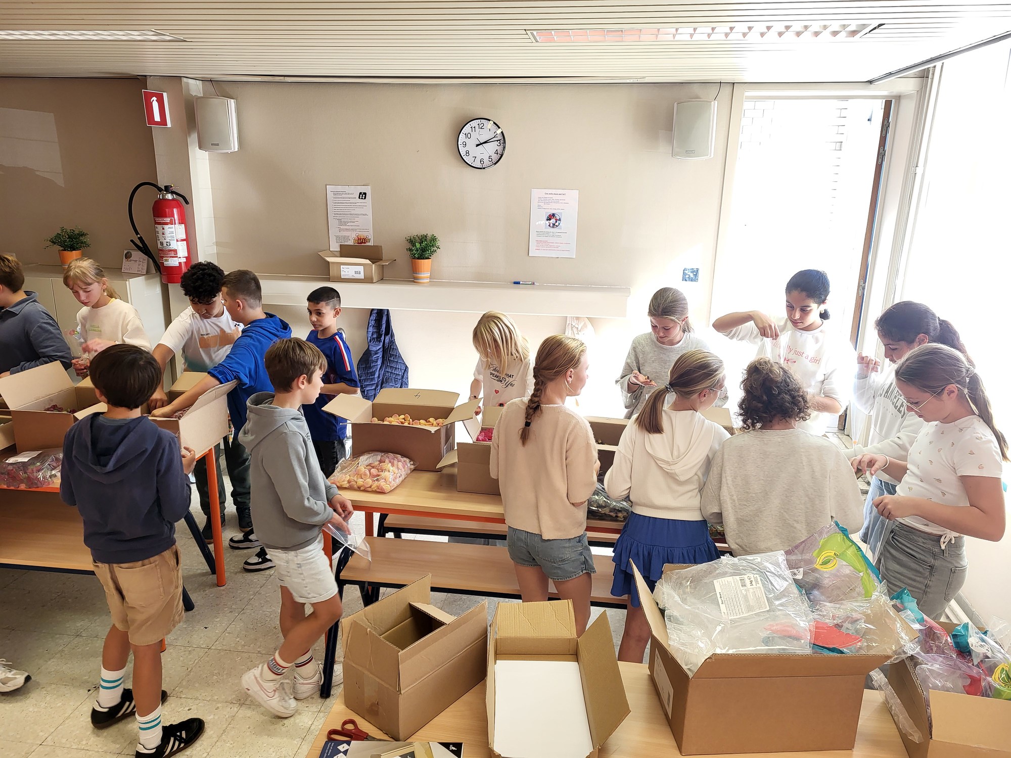 De leerlingen maakten snoepzakjes om te verkopen op de braderie op zaterdag 4 oktober.