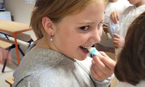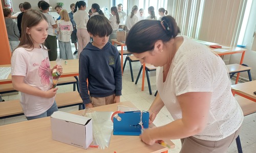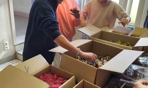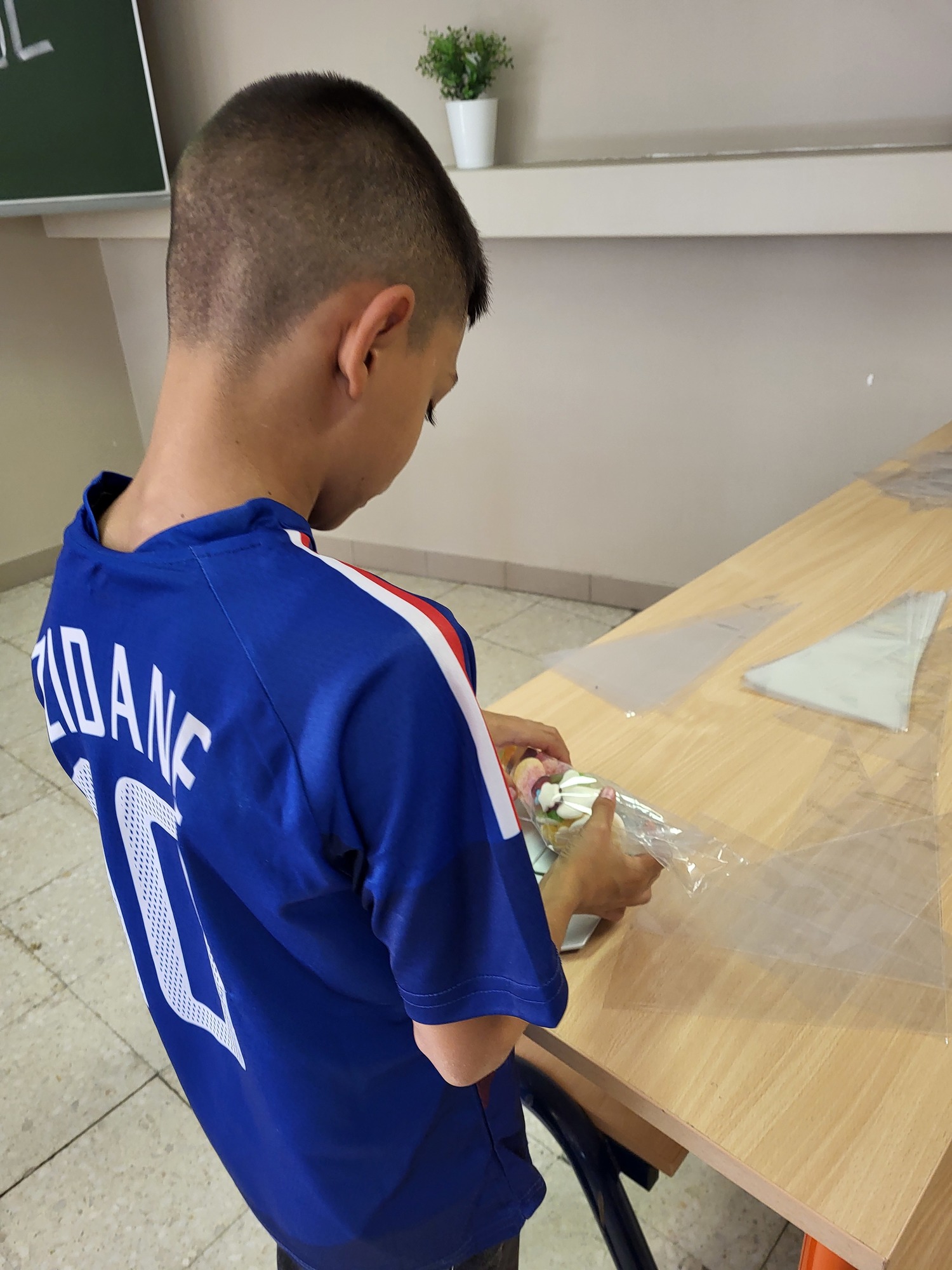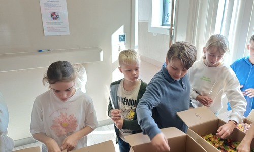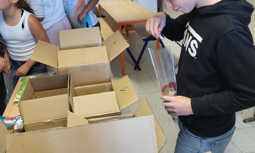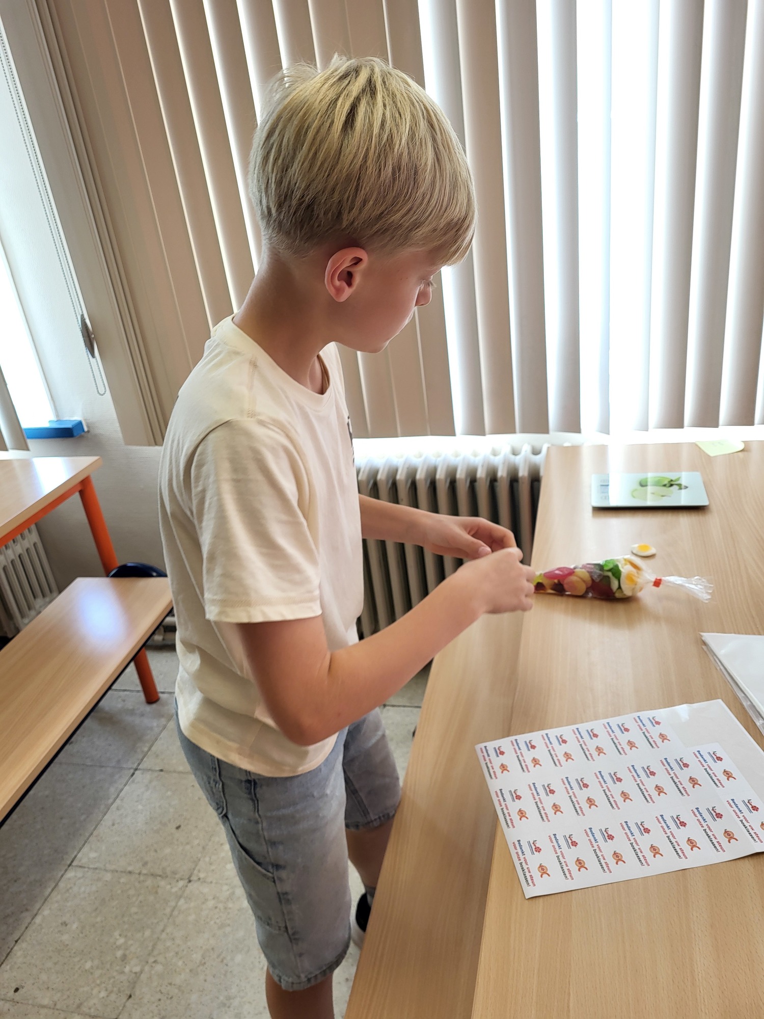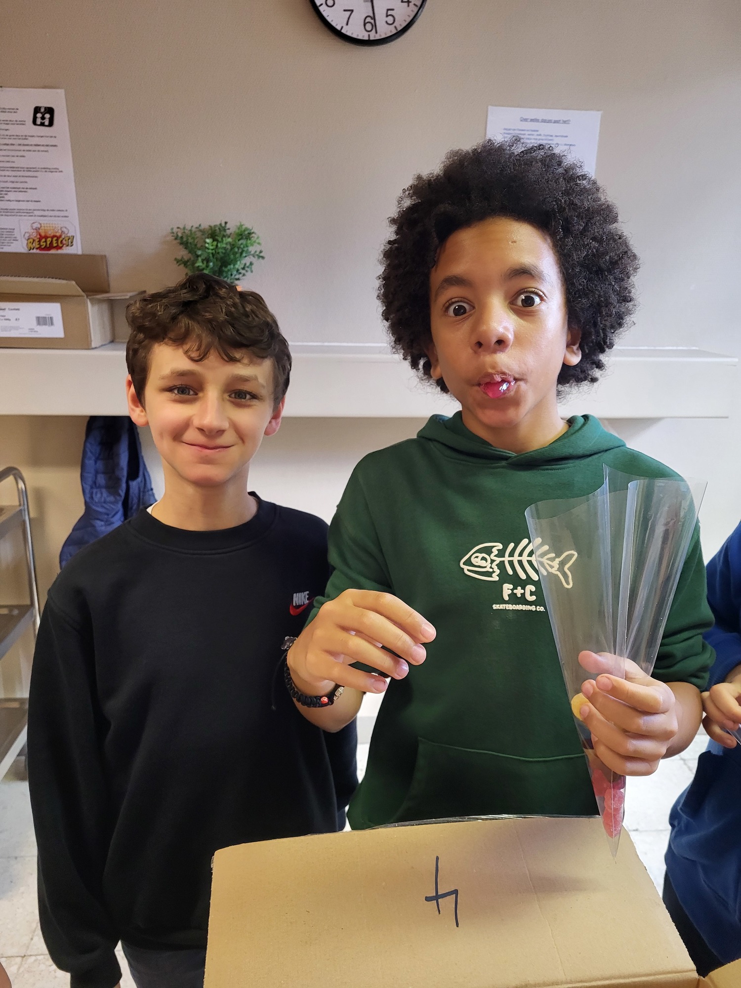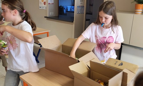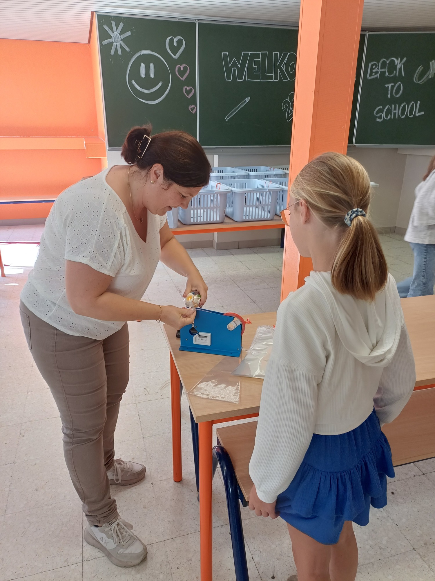 De leerlingen maakten snoepzakjes om te verkopen op de braderie op zaterdag 4 oktober.