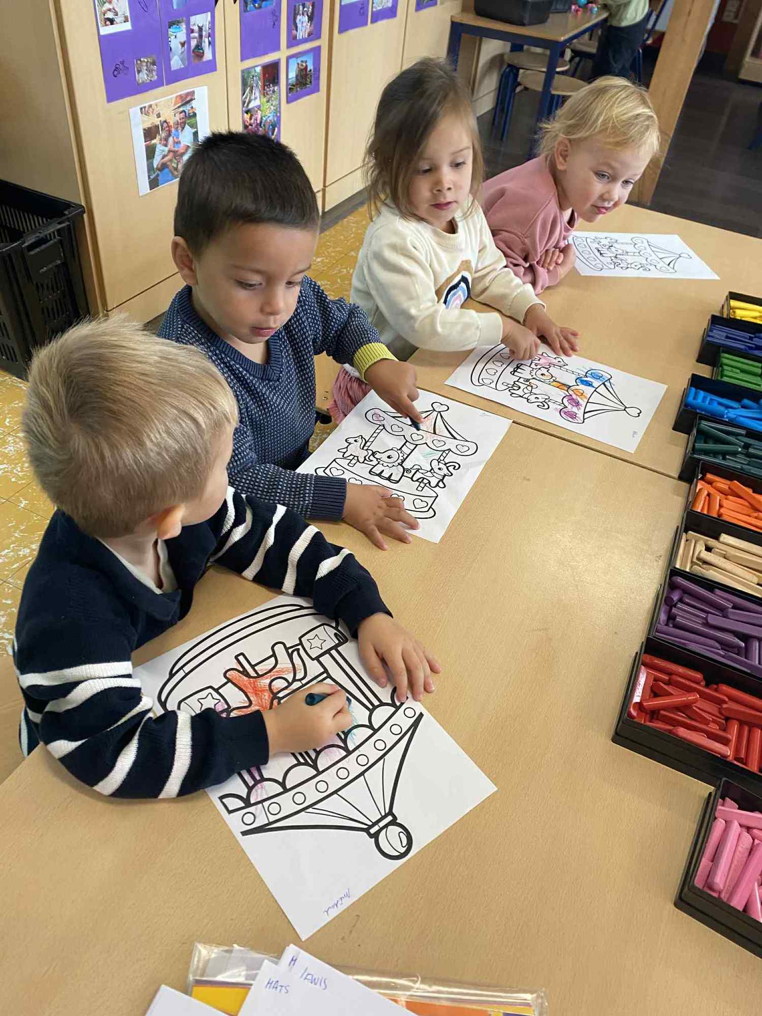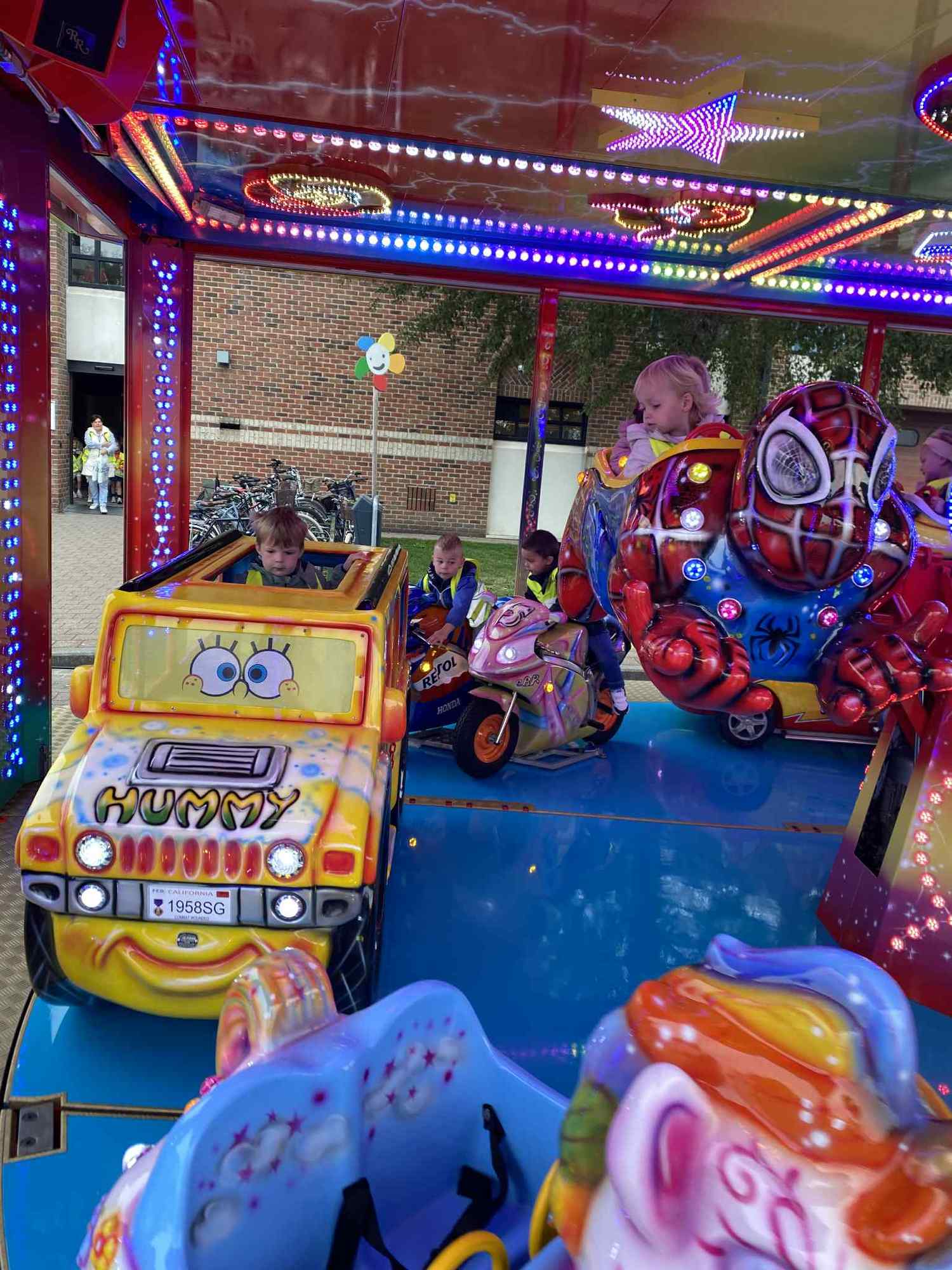 We werden getrakteerd op 2 ritjes op de draaimolen en brachten een bezoek aan de tentoonstelling van de Oostrozebeekse kunstkring. In de klas deden we leuke activiteiten rond het thema.