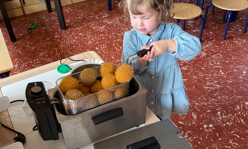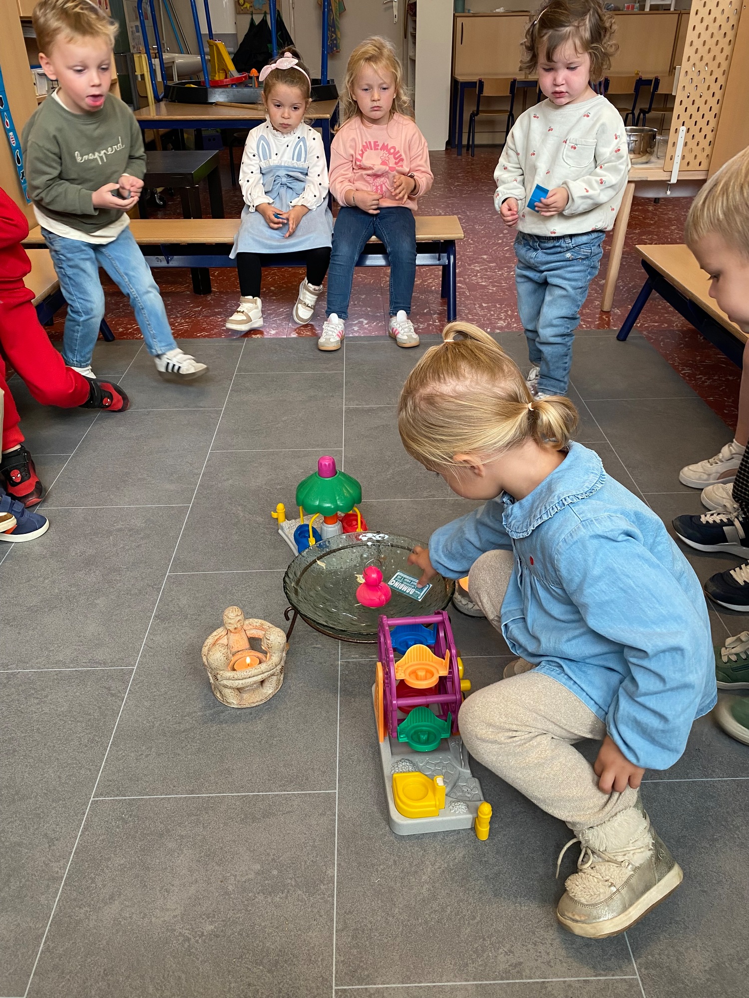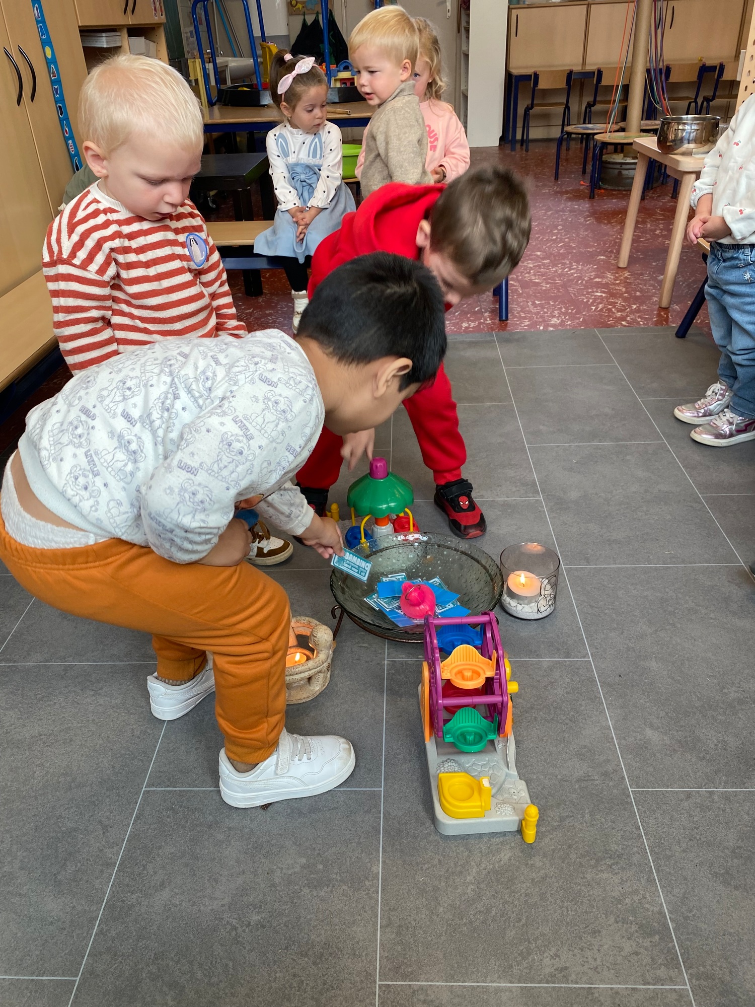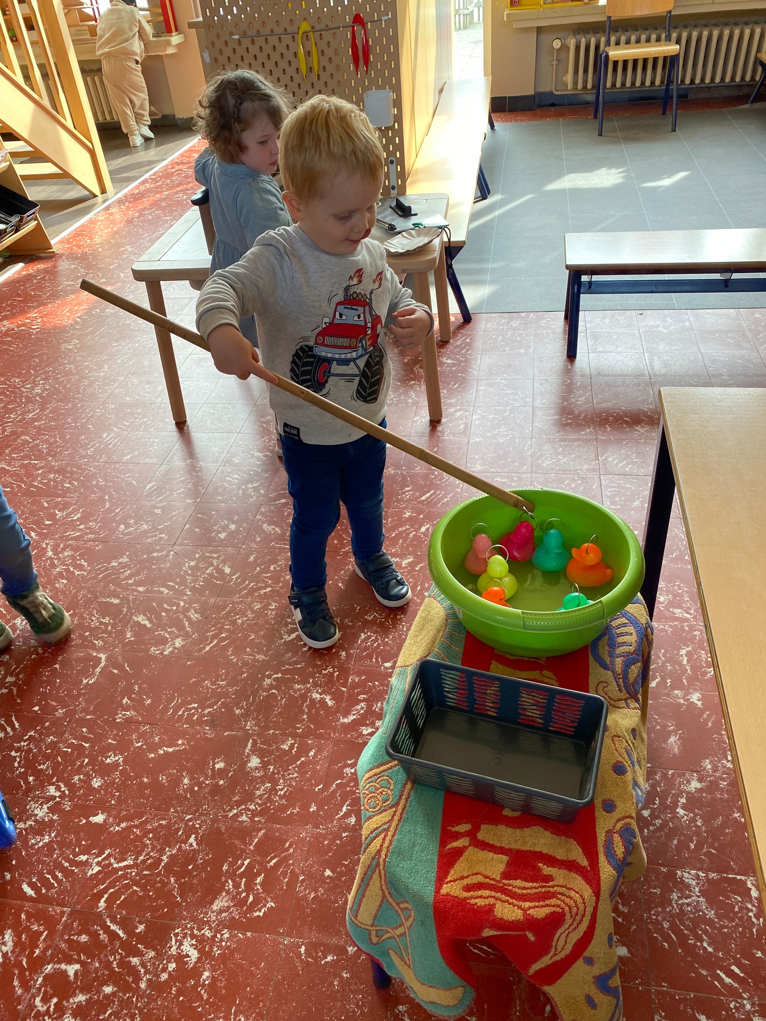 We speelden met allerlei dingen die met het thema te maken hadden. Eendjes vangen, op de draaimolen gemaakt met wippertjes, spelen met de kermis van little people, de lichtjes van de kermis maken met steekparels, ballonnen meppen, oliebollen bakken,...