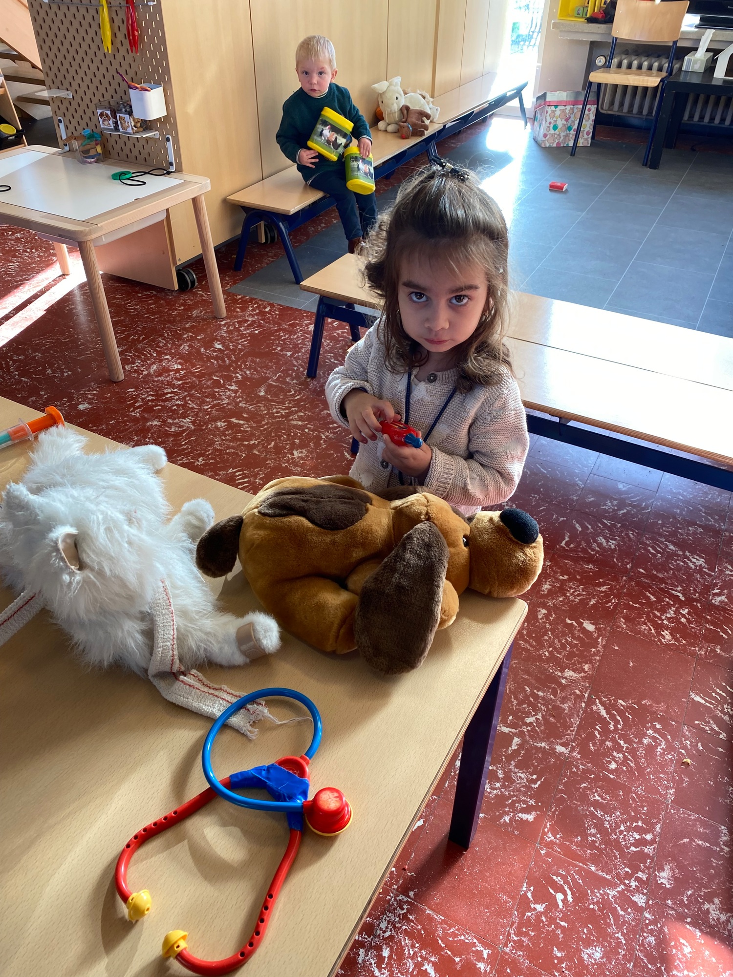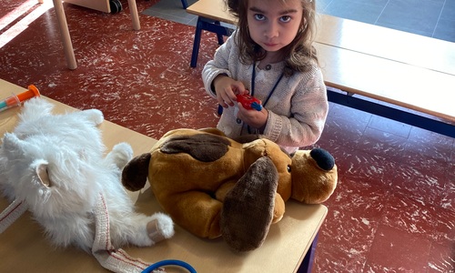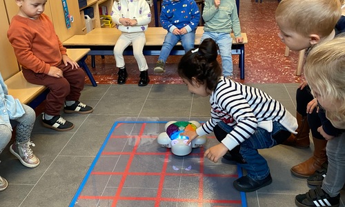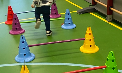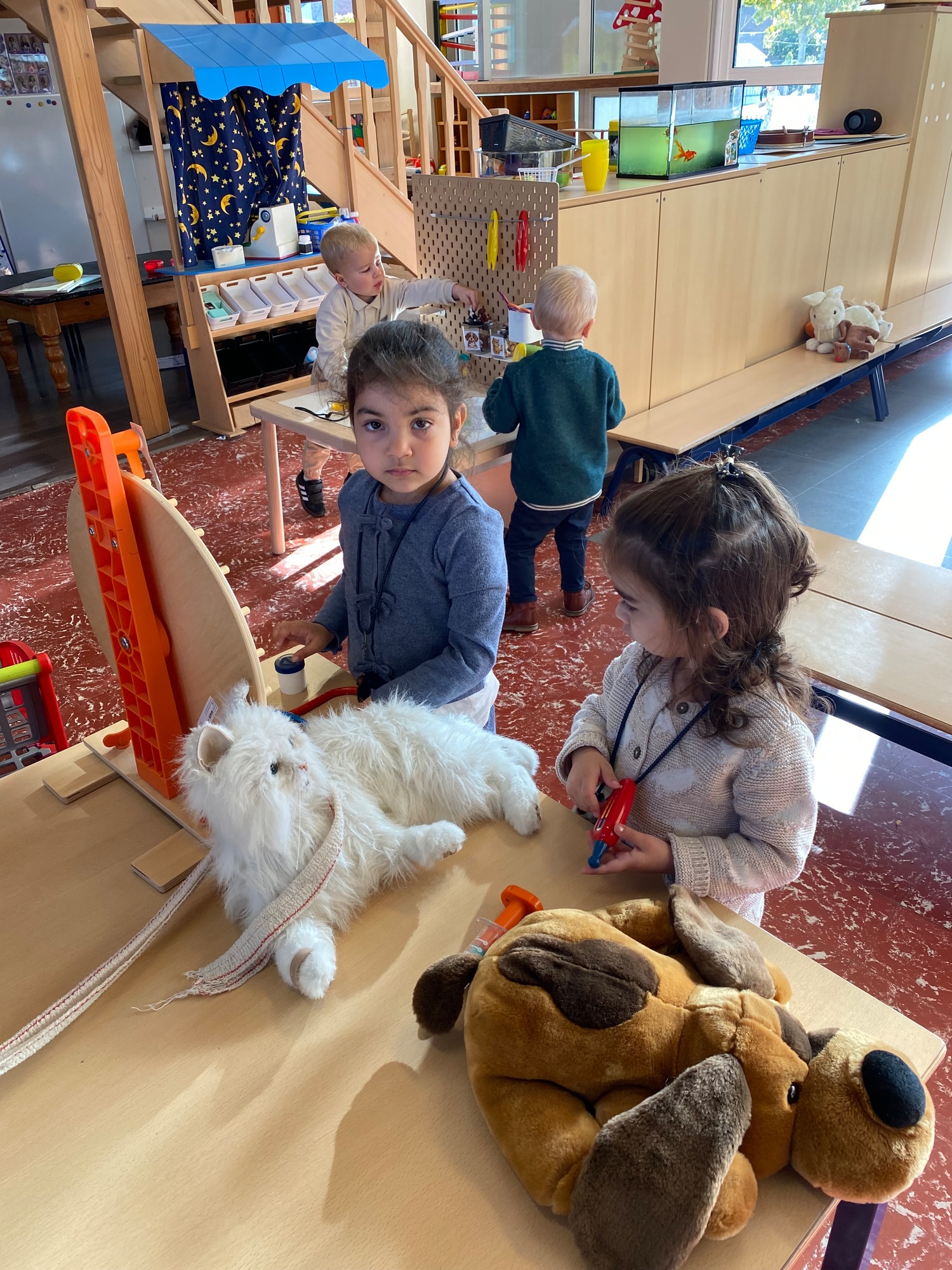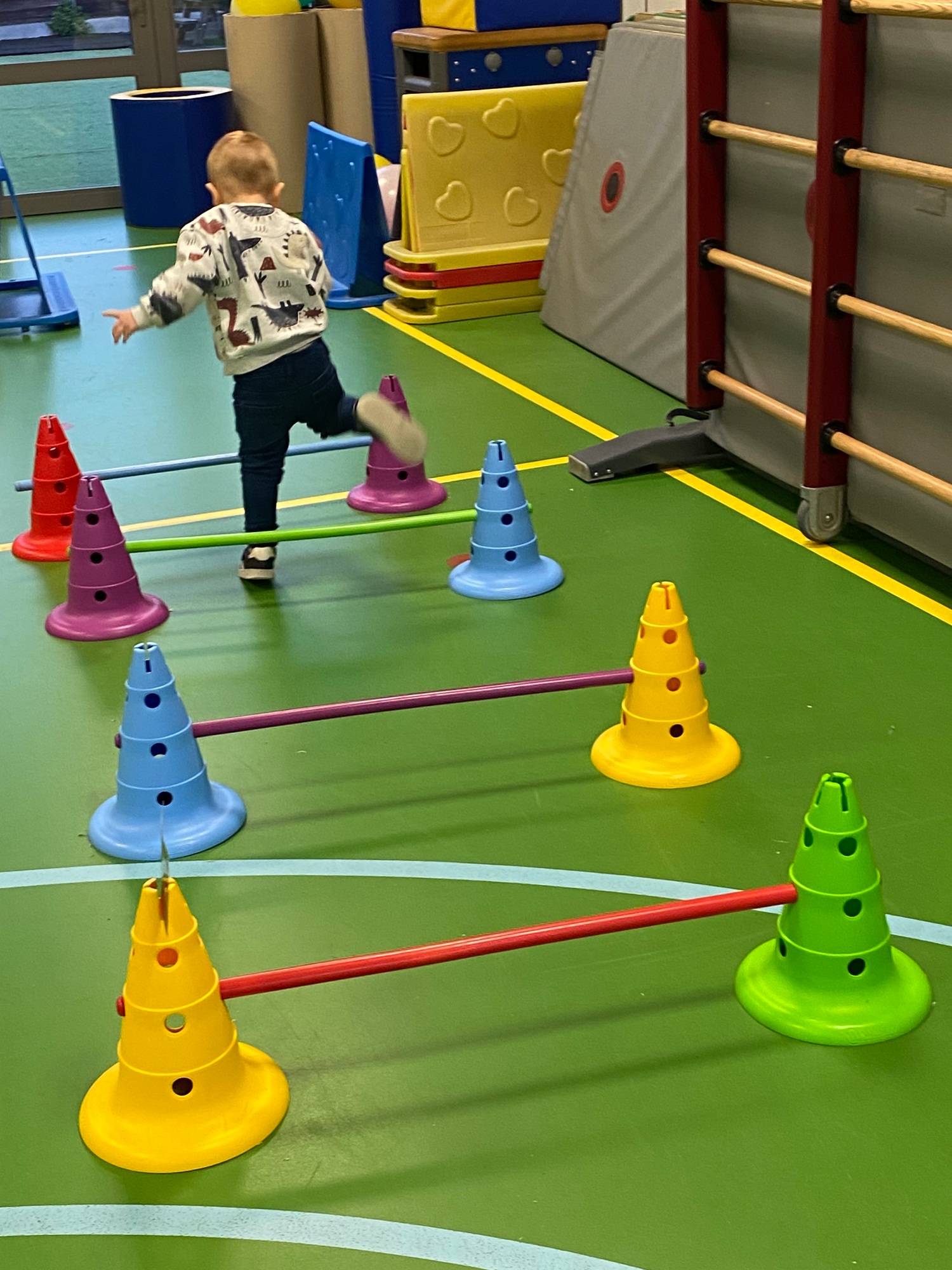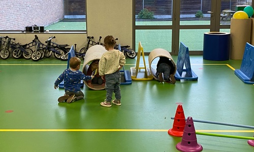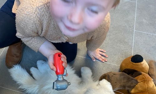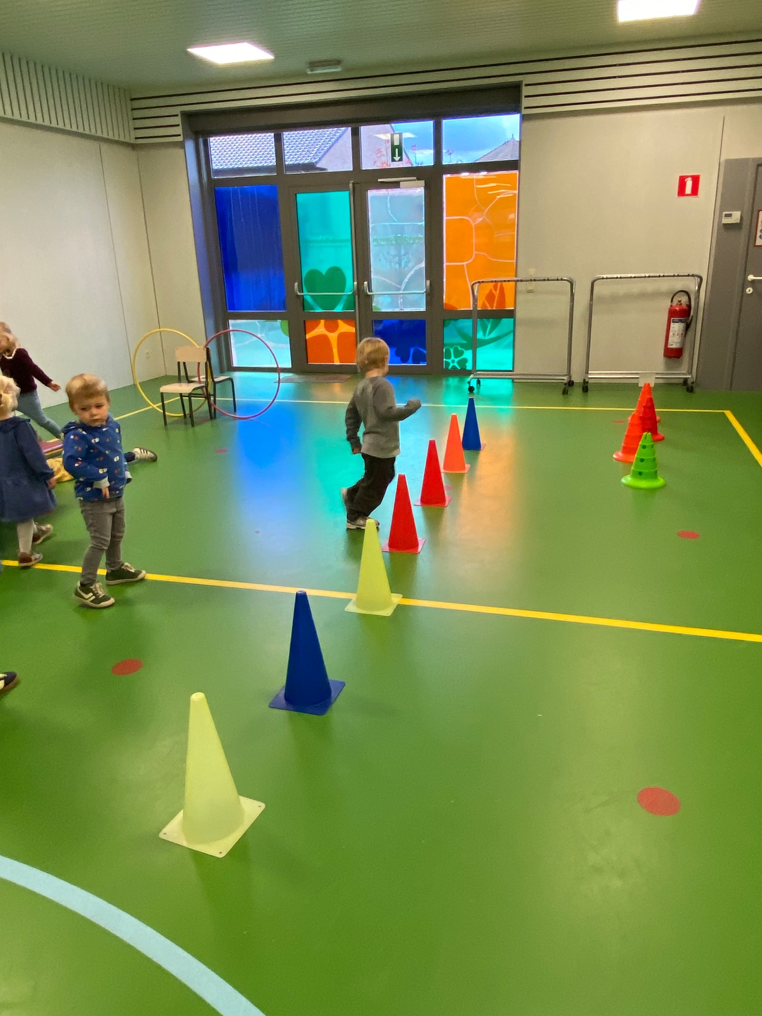 In de gymzaal speelden we de hondenschool waarbij de kleuters allerlei oefeningen moeten uitvoeren.