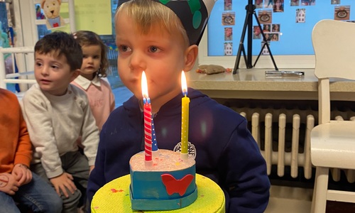 Poppenspel 'Jules gaat slapen' in de eerste kleuterklas.