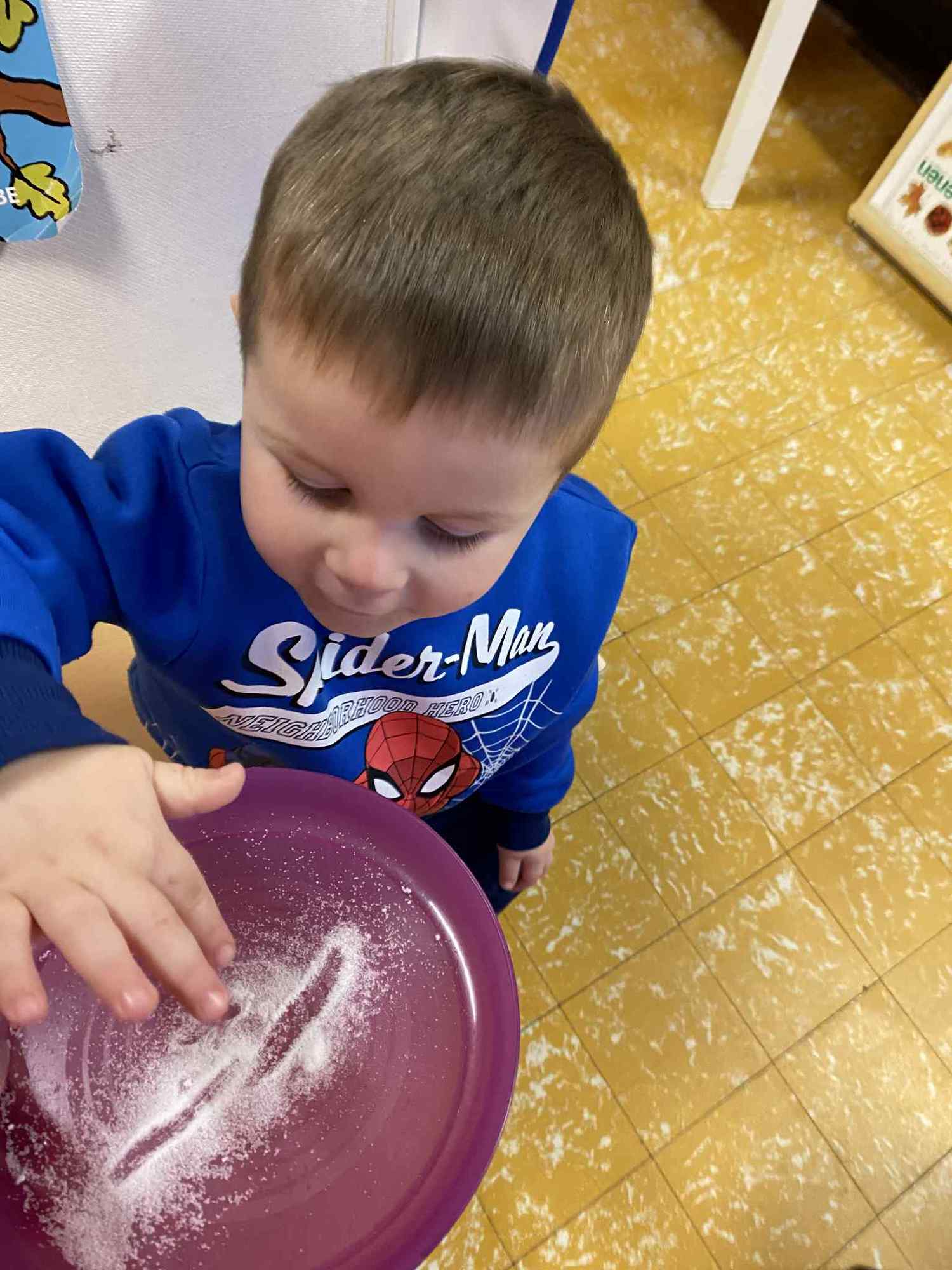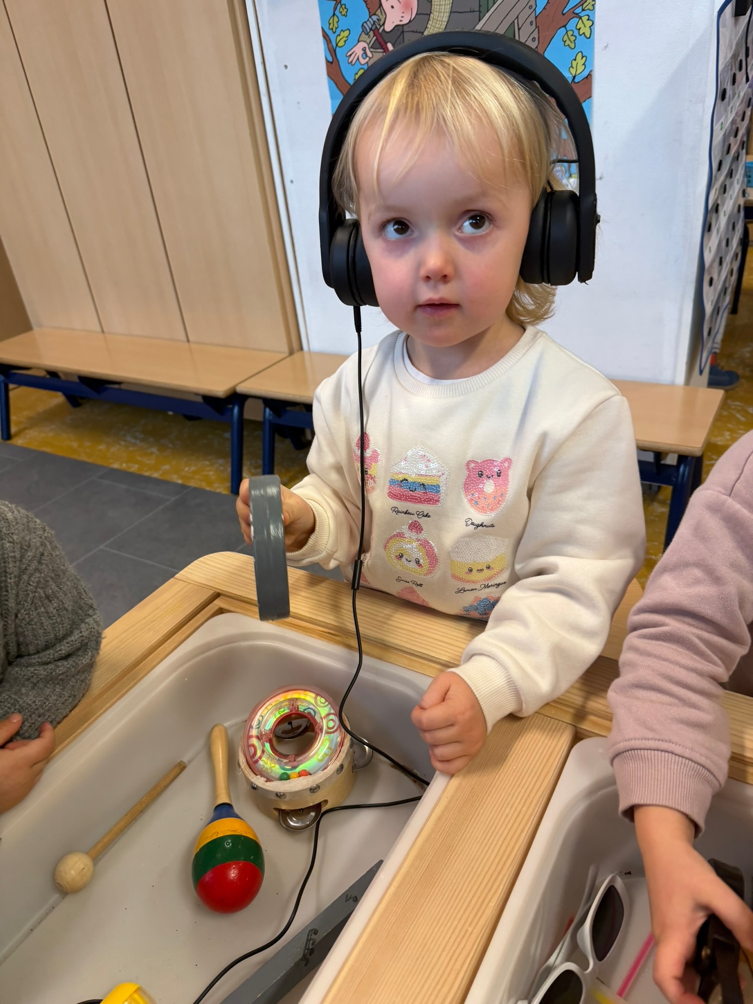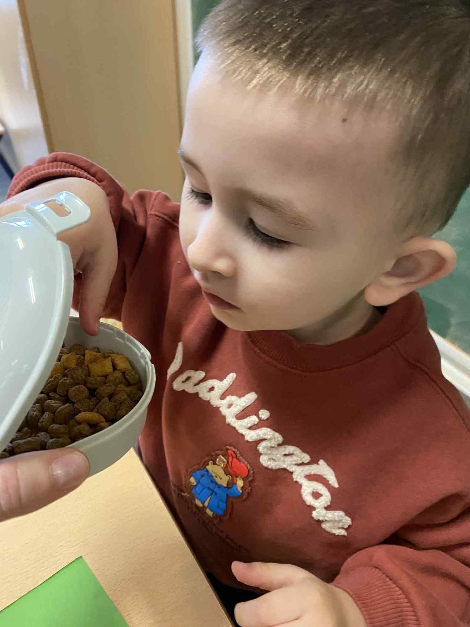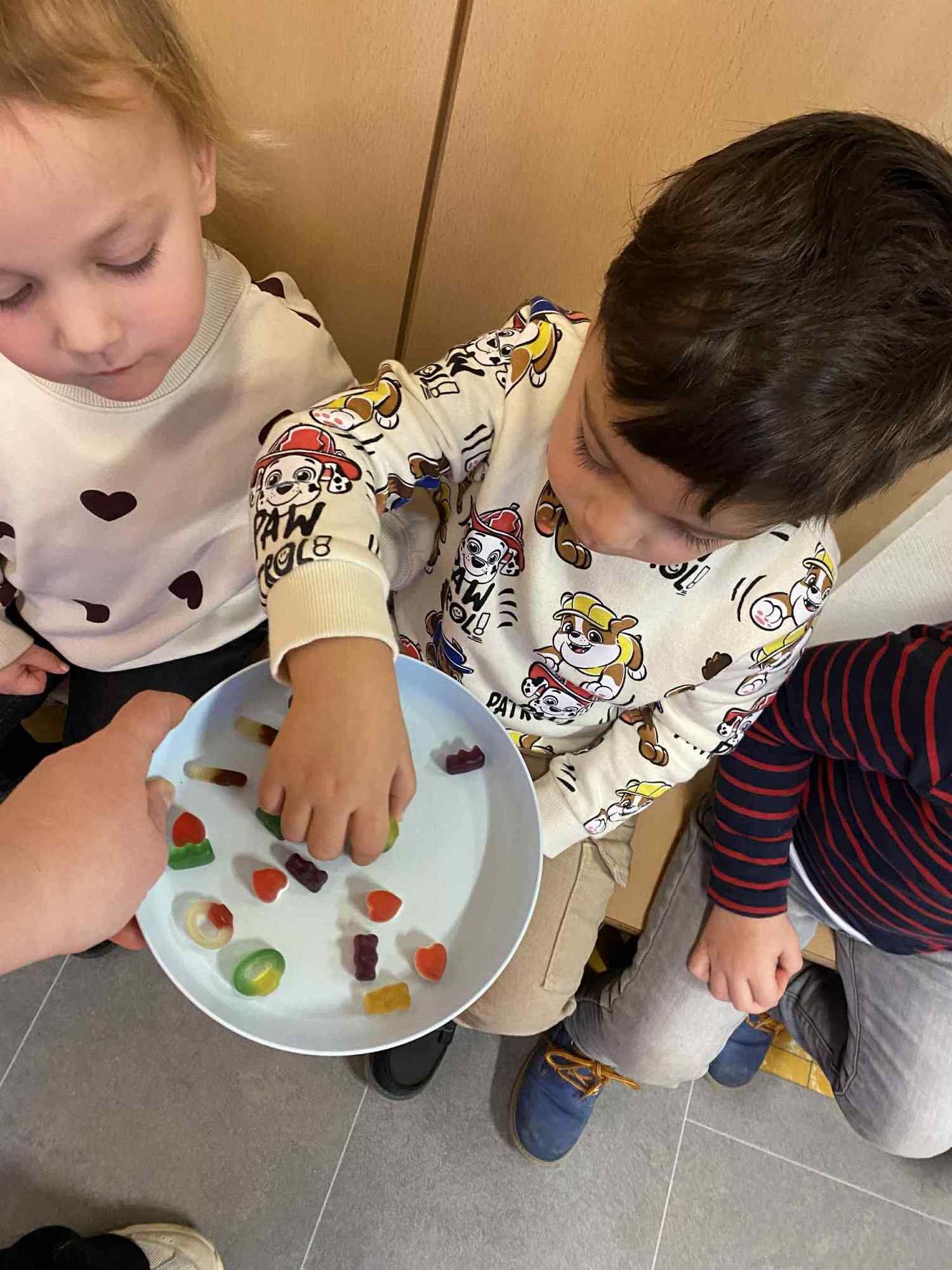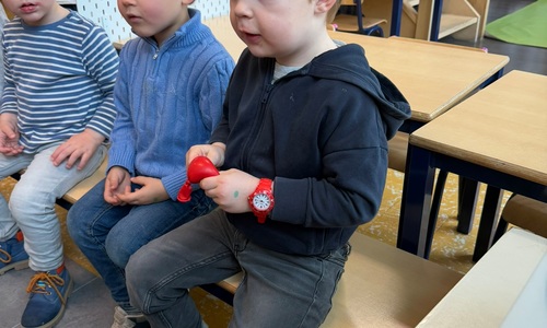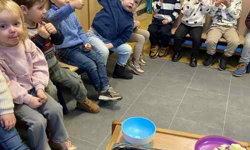 Voelen met handen en voeten, kijken met onze ogen, luisteren met onze oren, ruiken met onze neus en proeven! Wat ruikt lekker? Wat vind ik lekker en wat lust ik niet. We tellen tot aan 3!