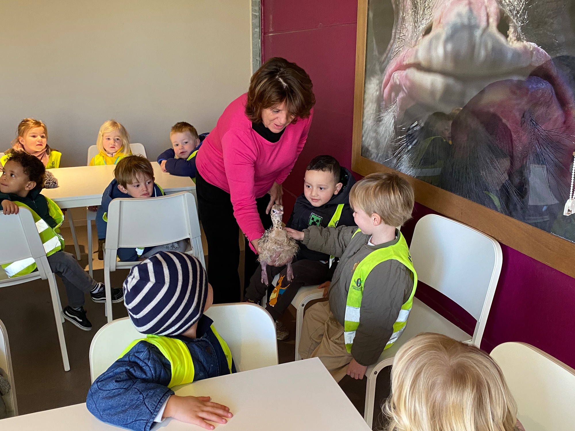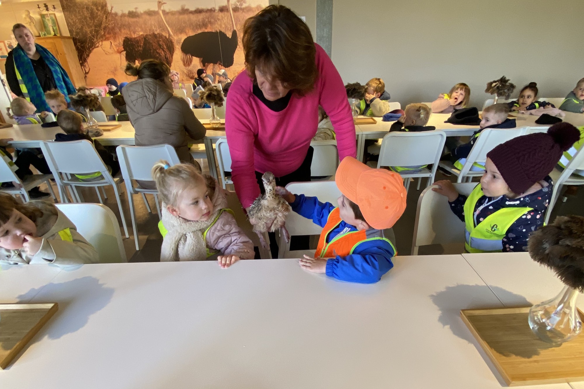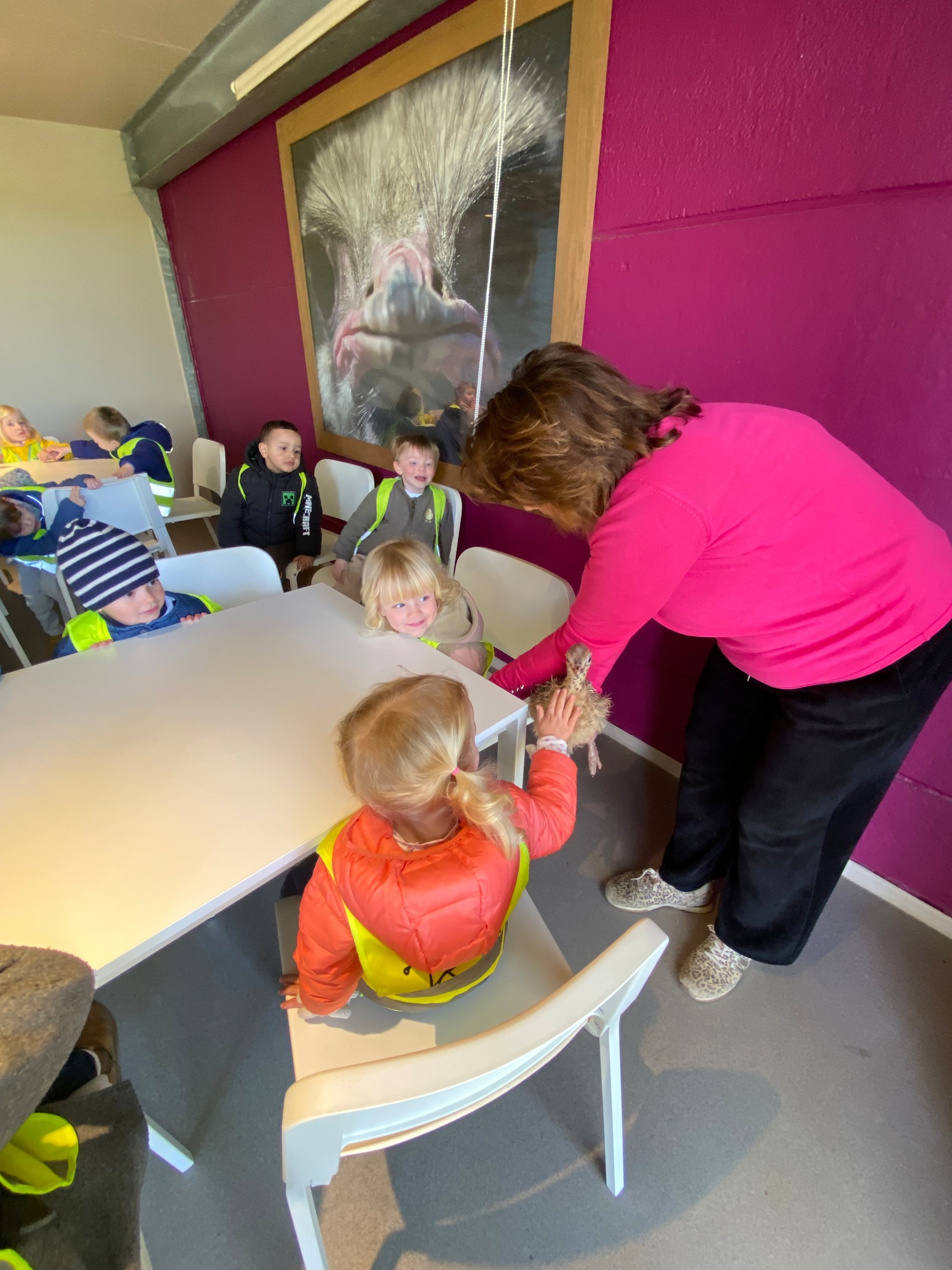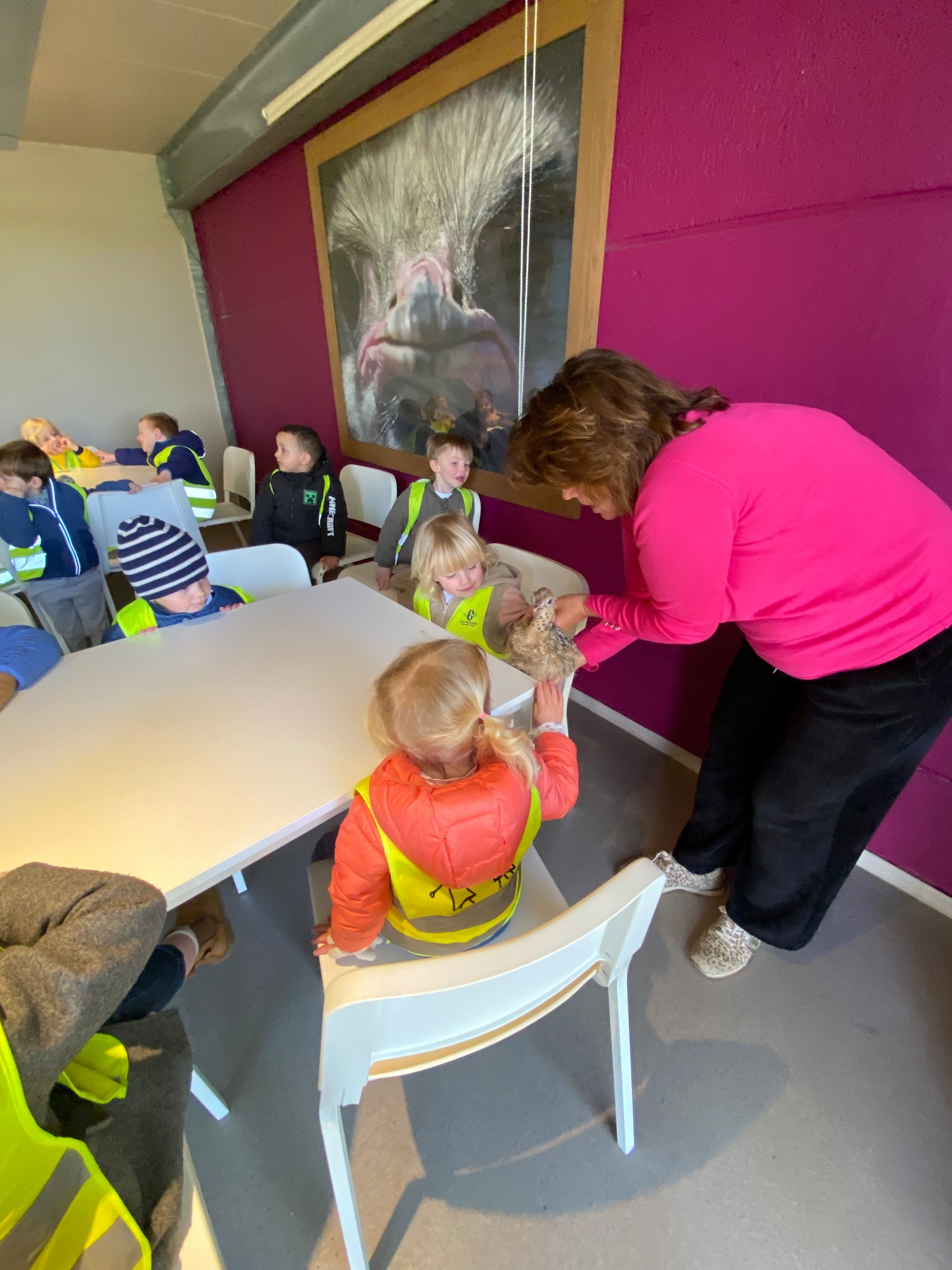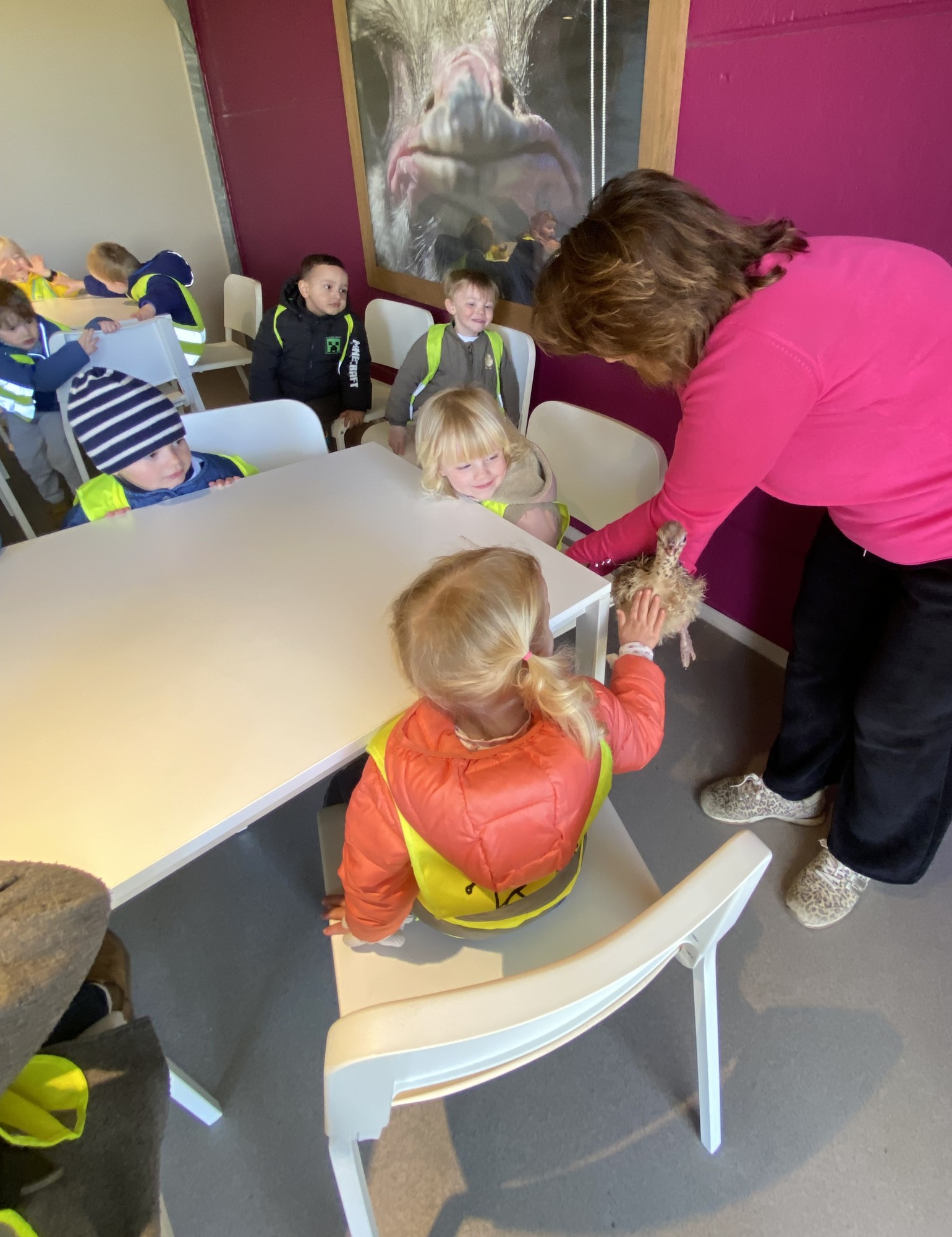 Een ei wegen, een kuikentje strelen, elkaar afstoffen, de grote dieren bekijken en een stukje cake eten...het hoort er allemaal bij