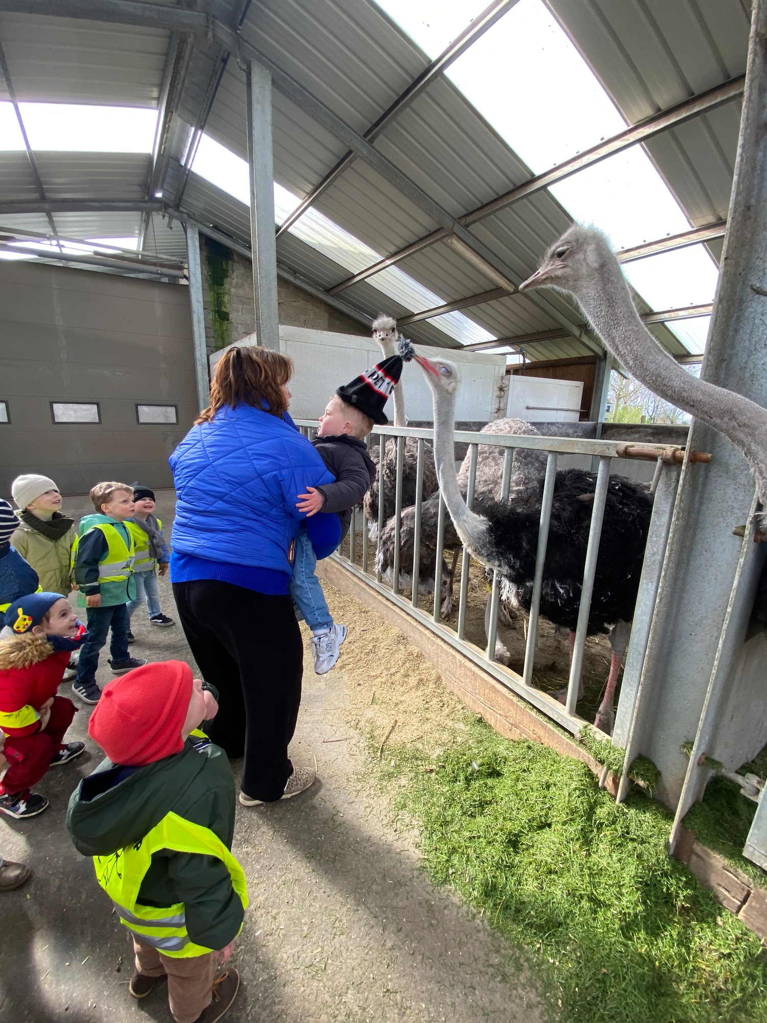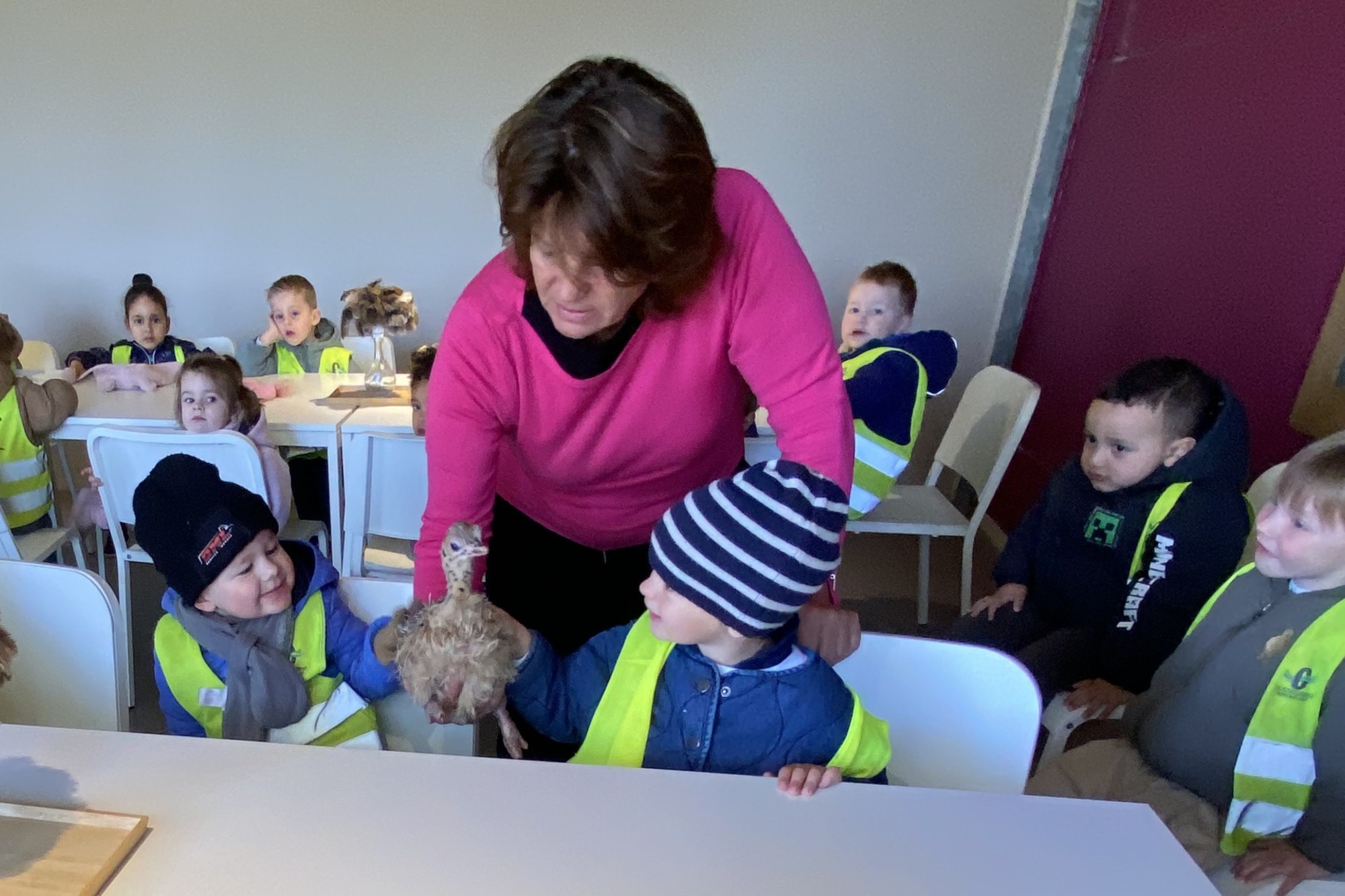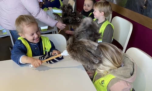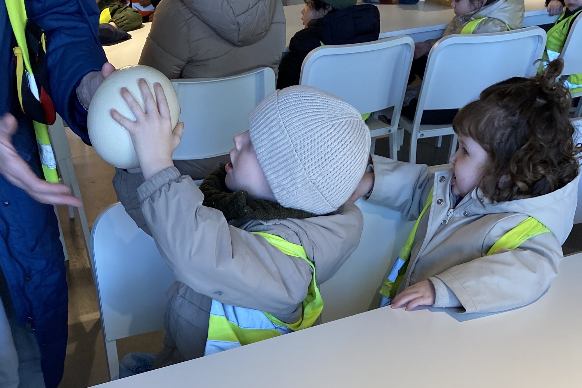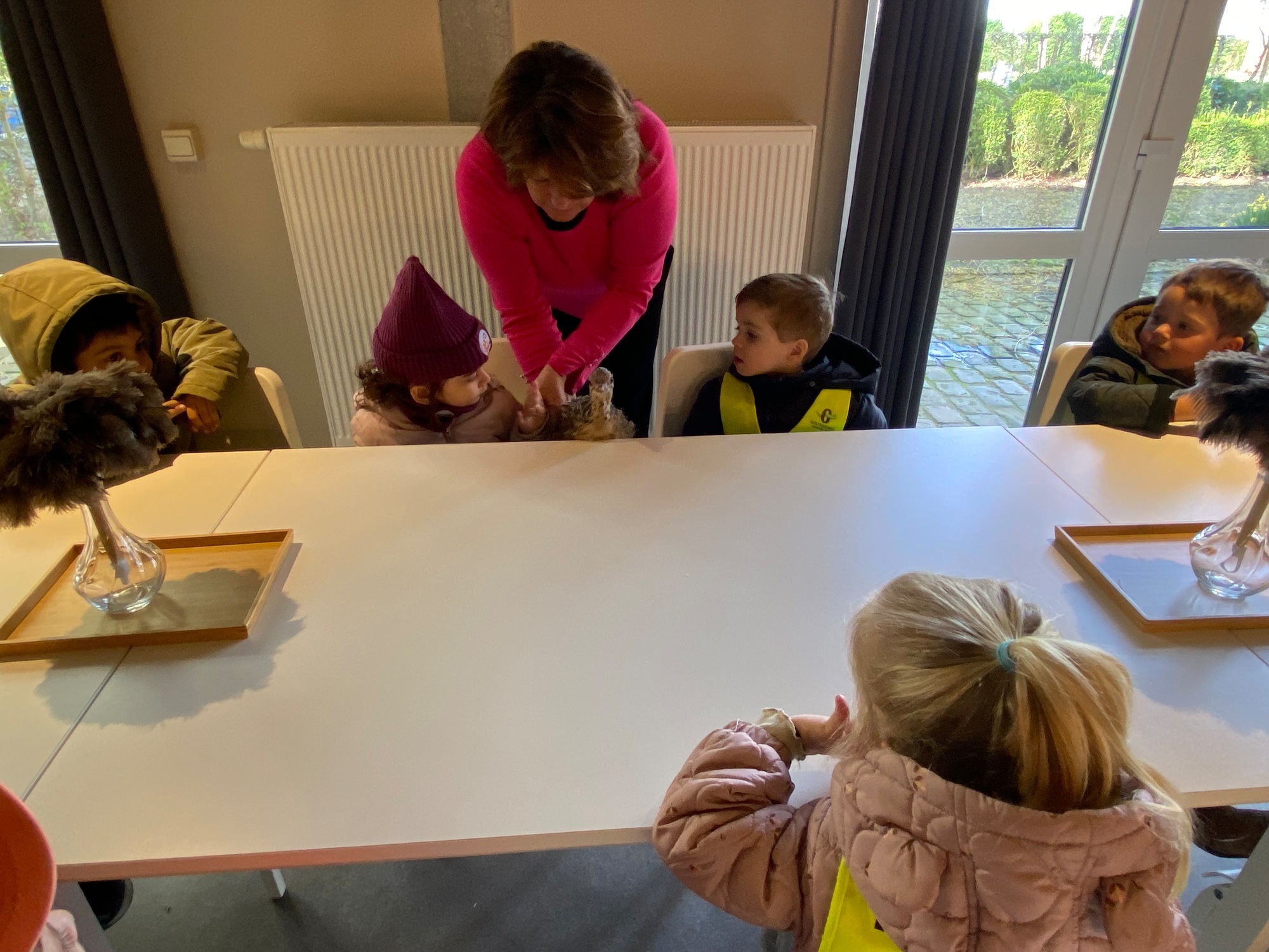 Een ei wegen, een kuikentje strelen, elkaar afstoffen, de grote dieren bekijken en een stukje cake eten...het hoort er allemaal bij