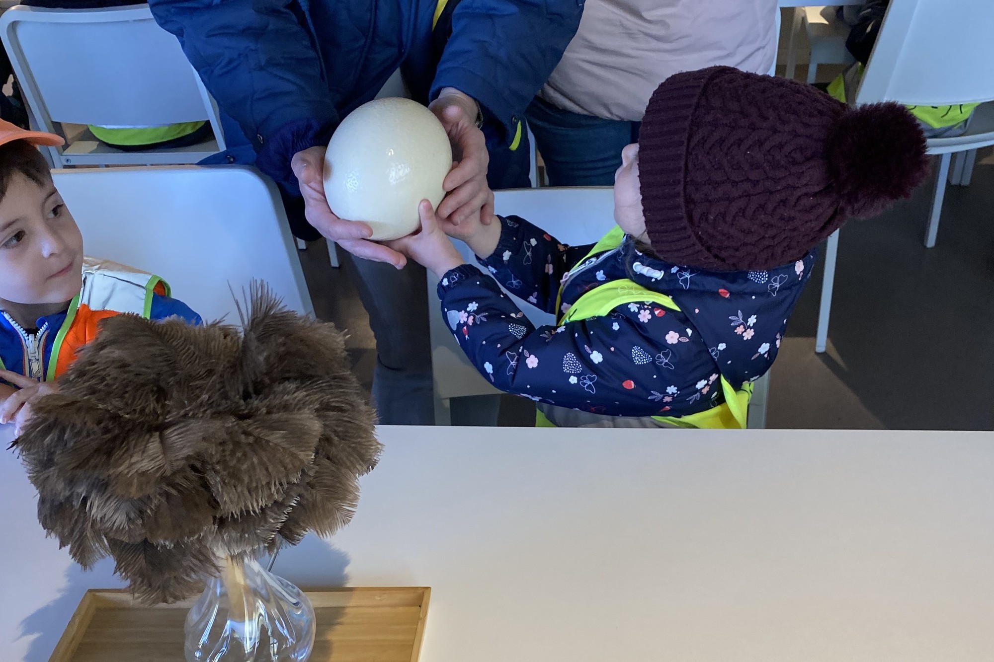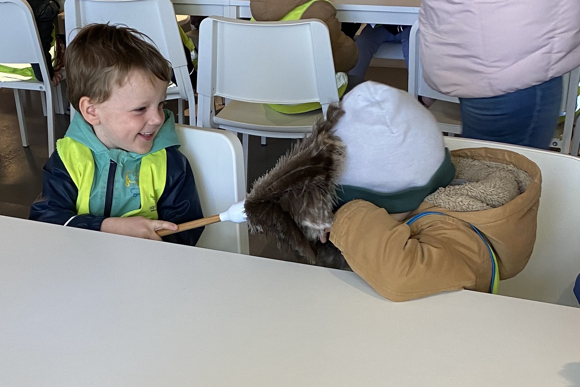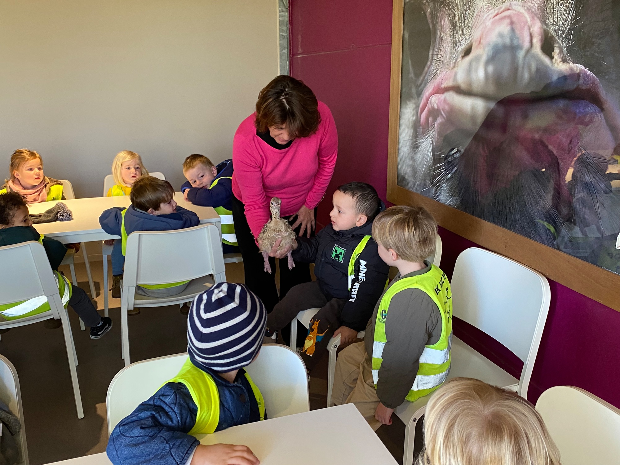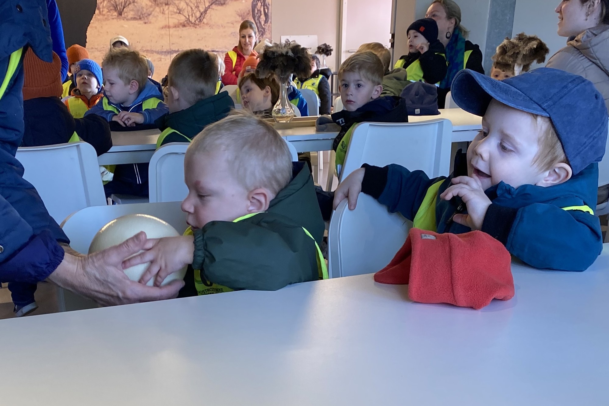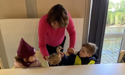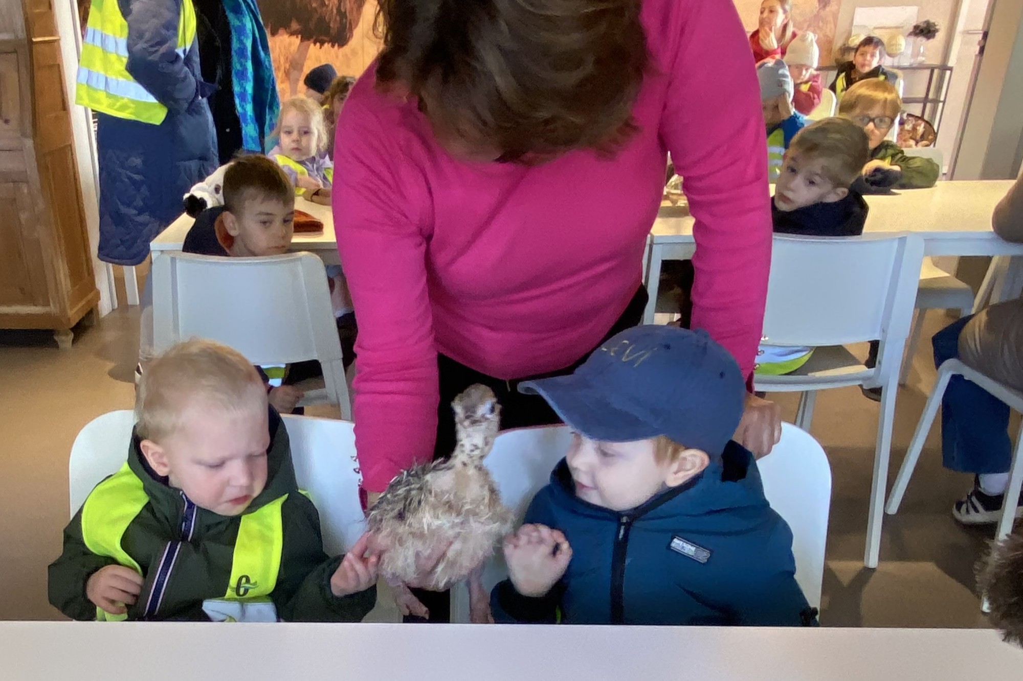 Een ei wegen, een kuikentje strelen, elkaar afstoffen, de grote dieren bekijken en een stukje cake eten...het hoort er allemaal bij