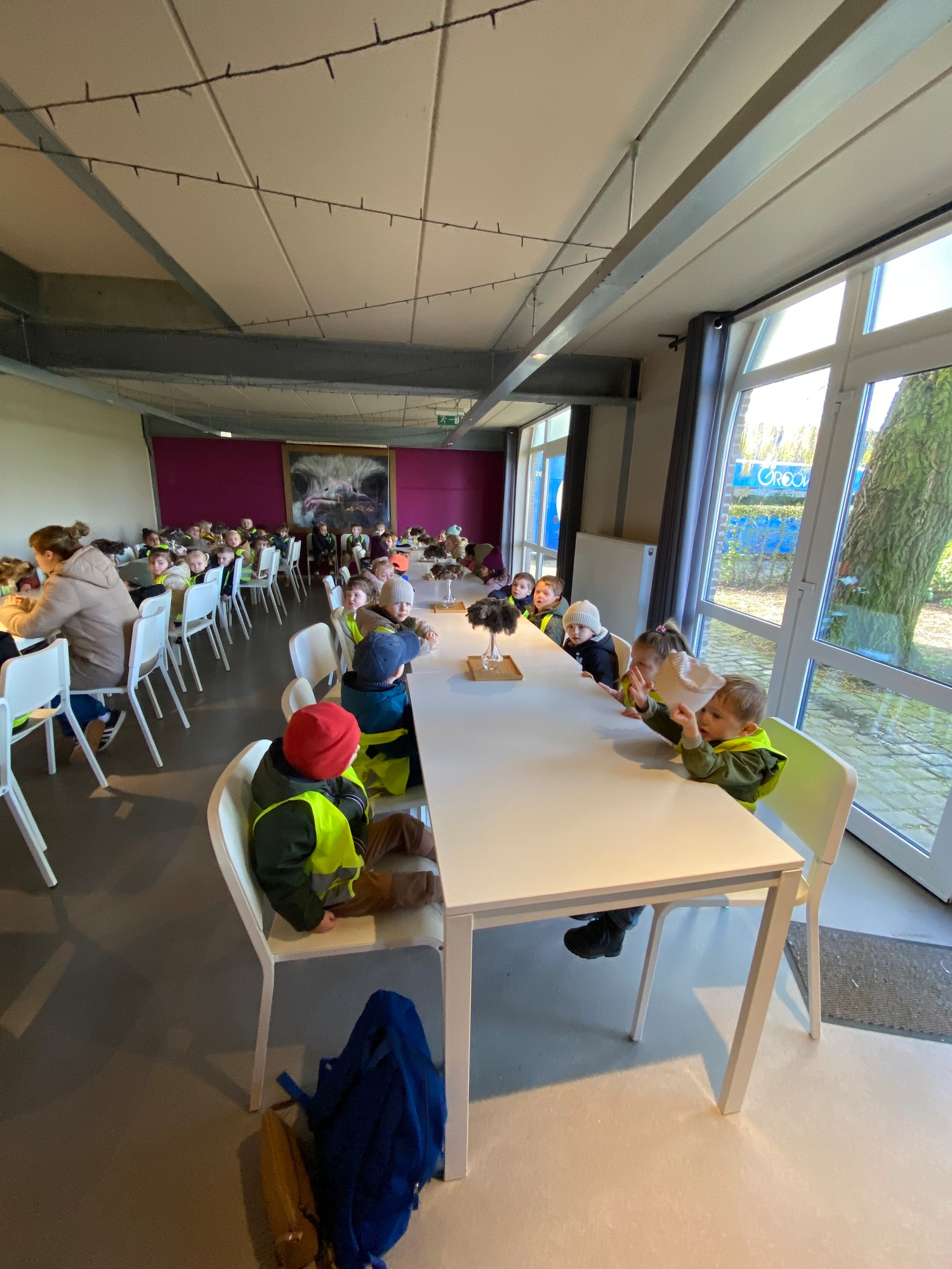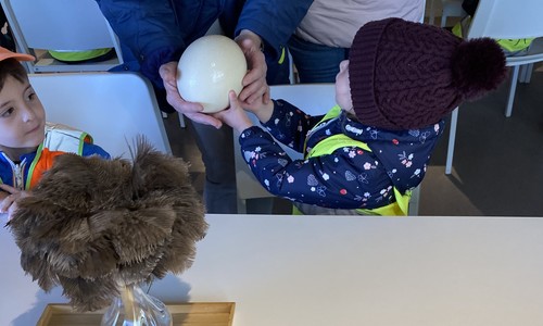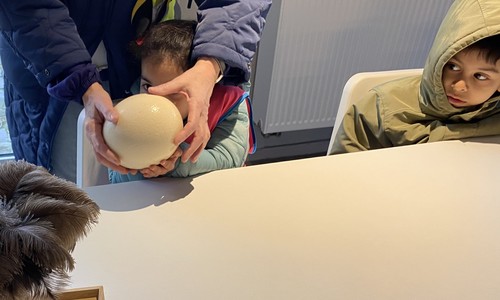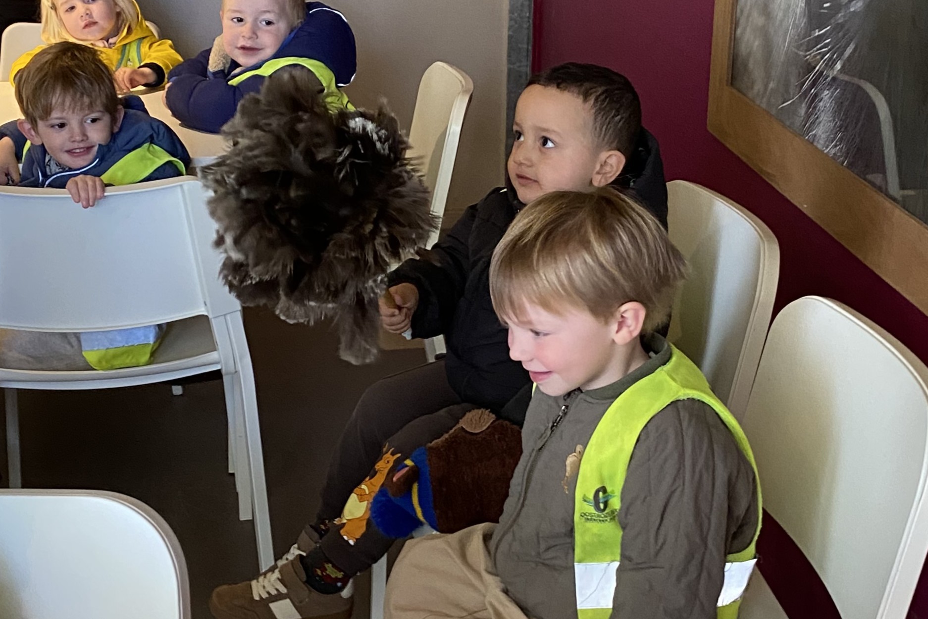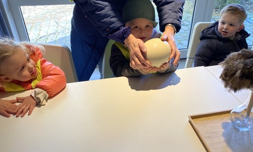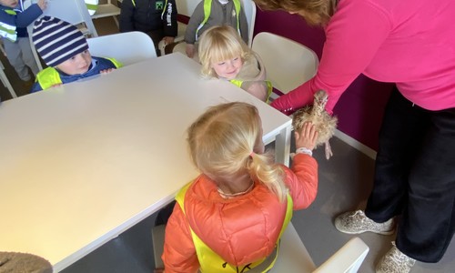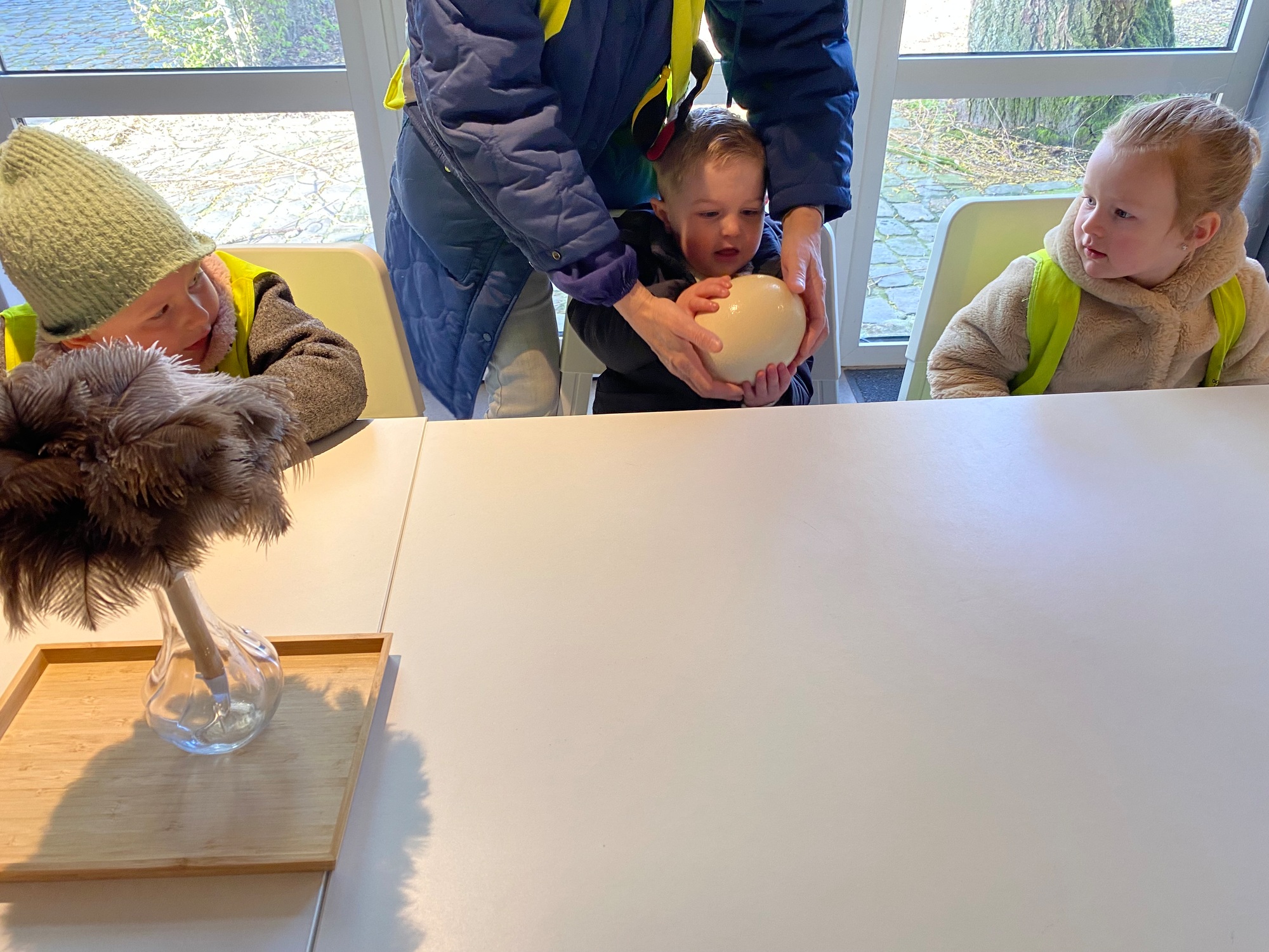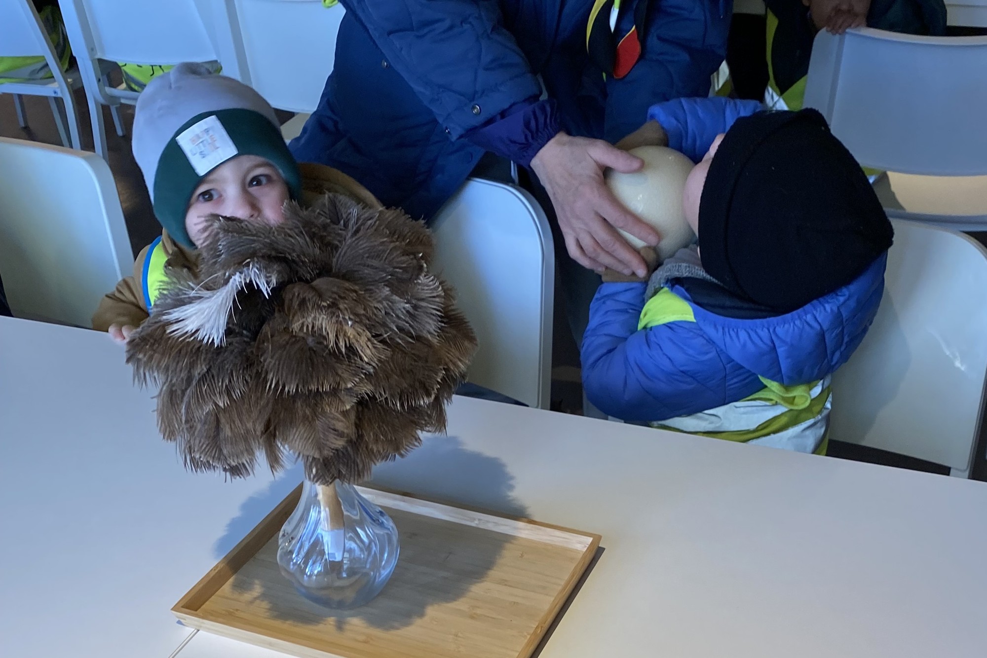 Een ei wegen, een kuikentje strelen, elkaar afstoffen, de grote dieren bekijken en een stukje cake eten...het hoort er allemaal bij