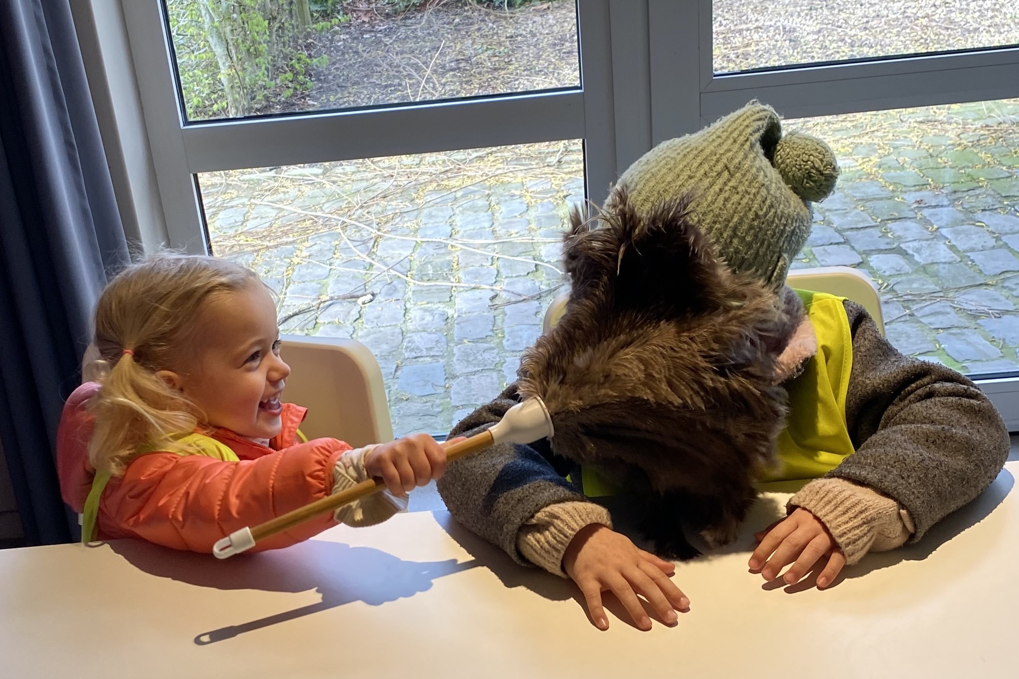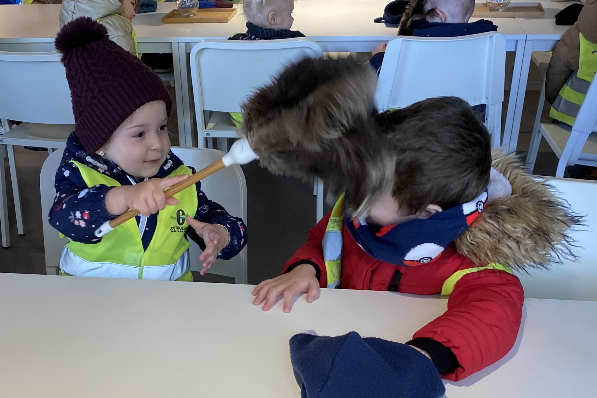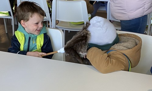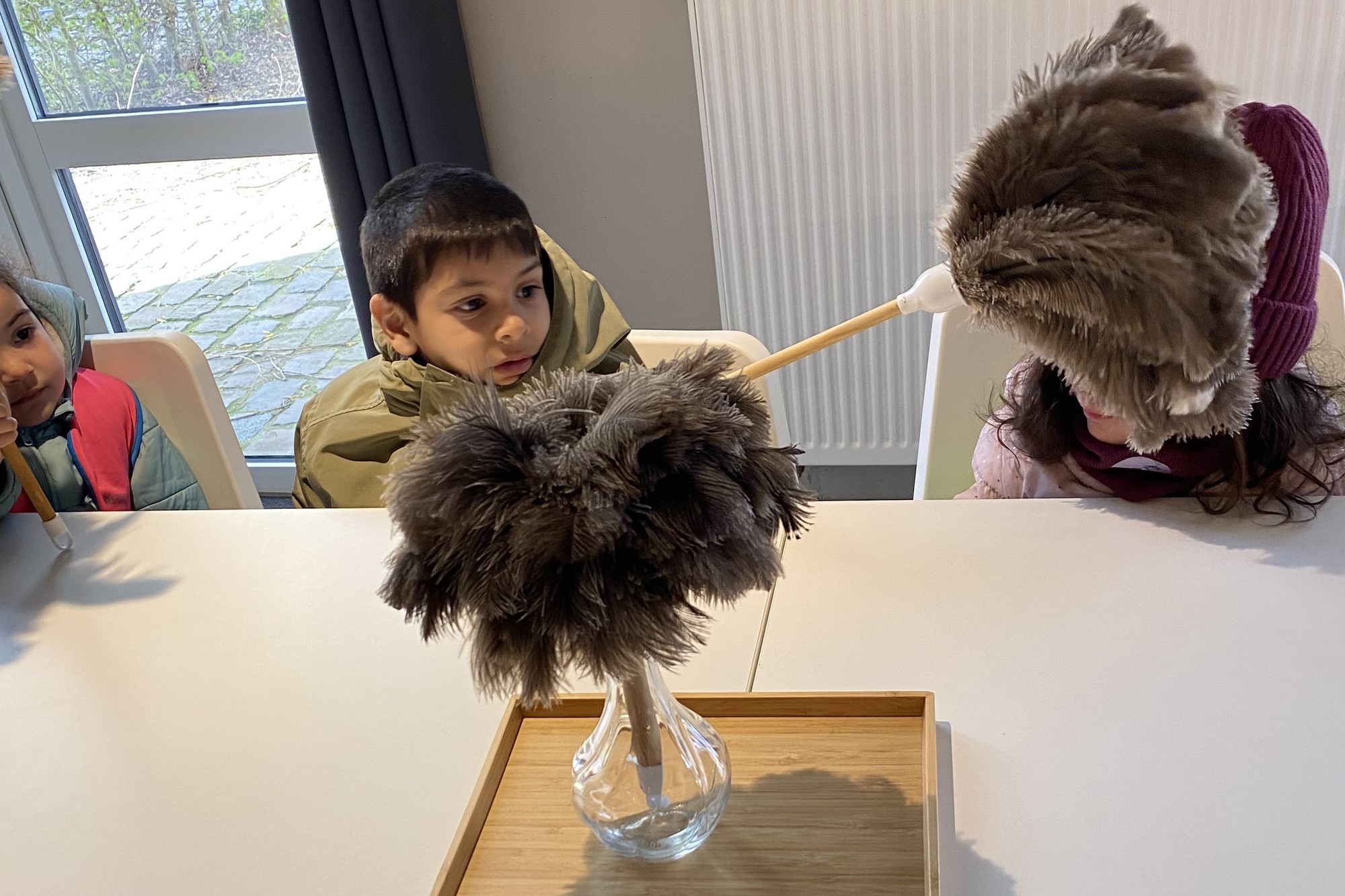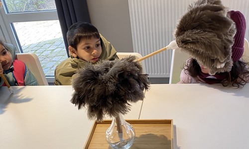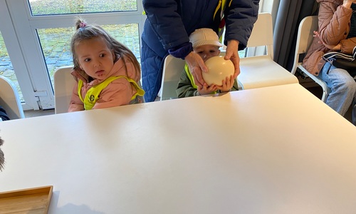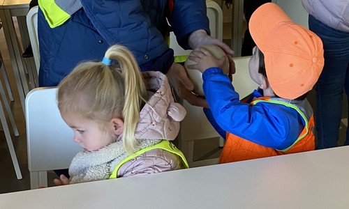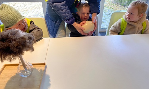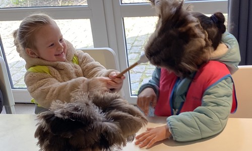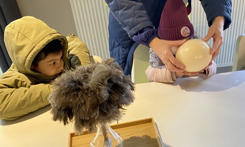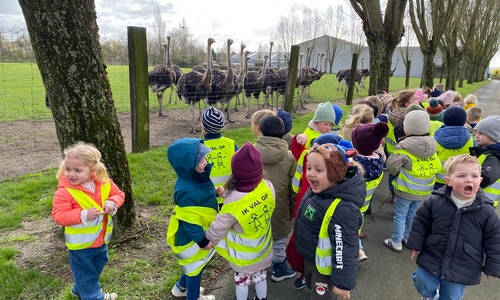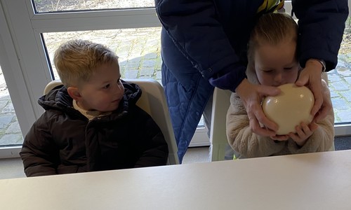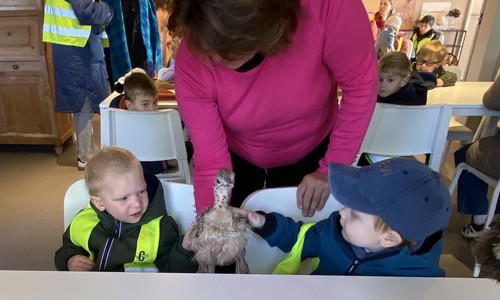 Een ei wegen, een kuikentje strelen, elkaar afstoffen, de grote dieren bekijken en een stukje cake eten...het hoort er allemaal bij