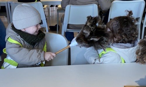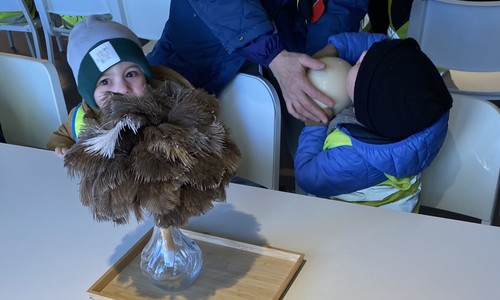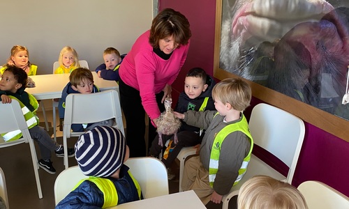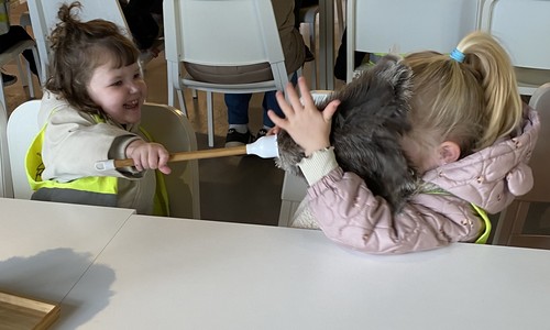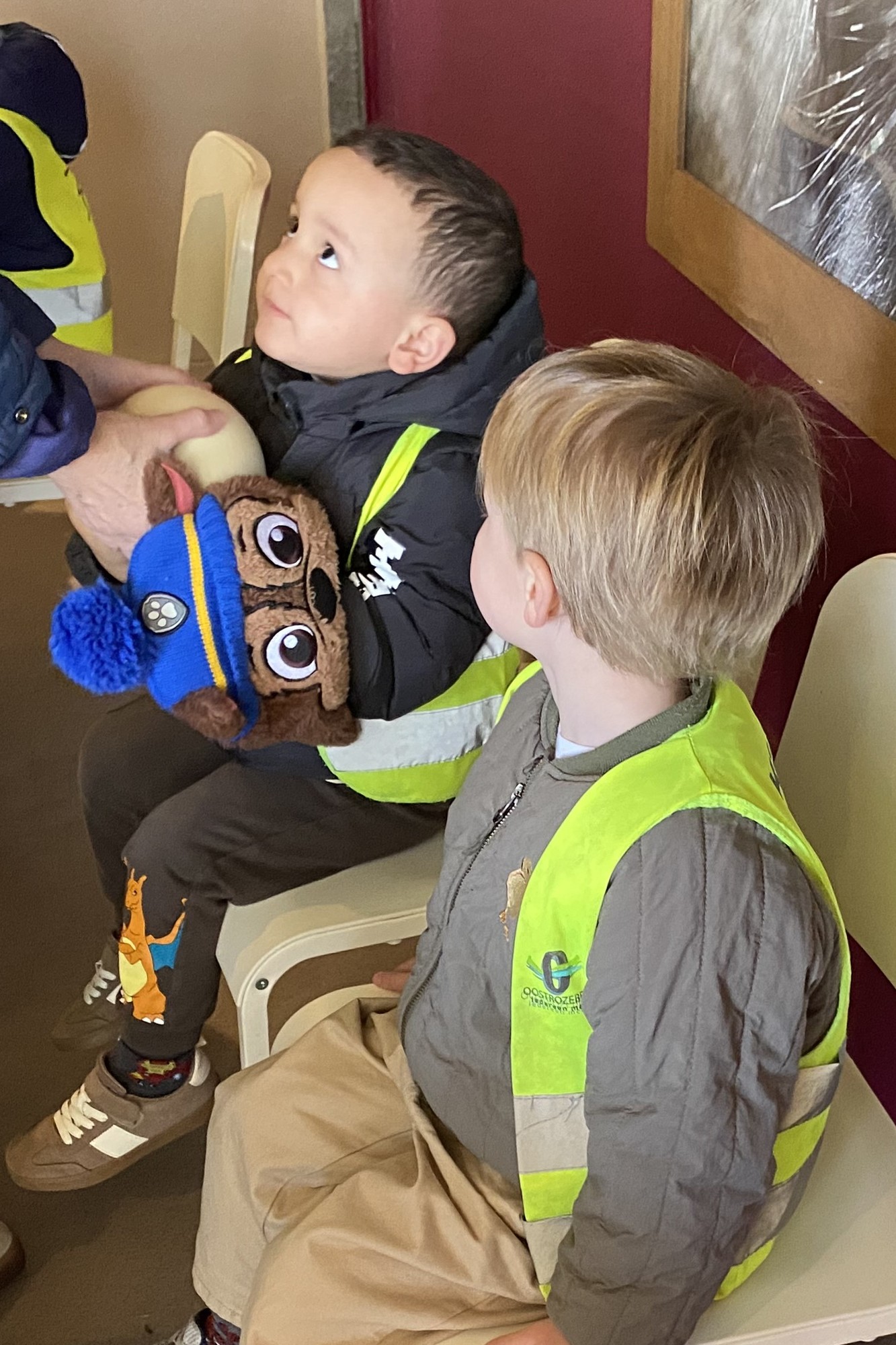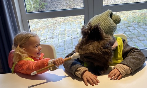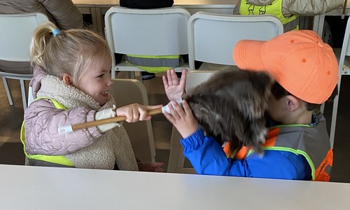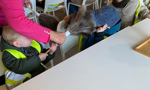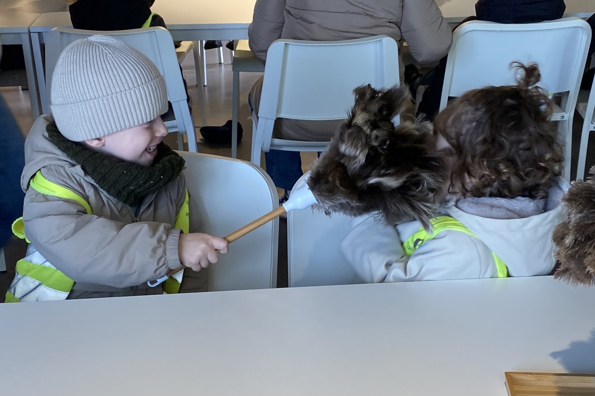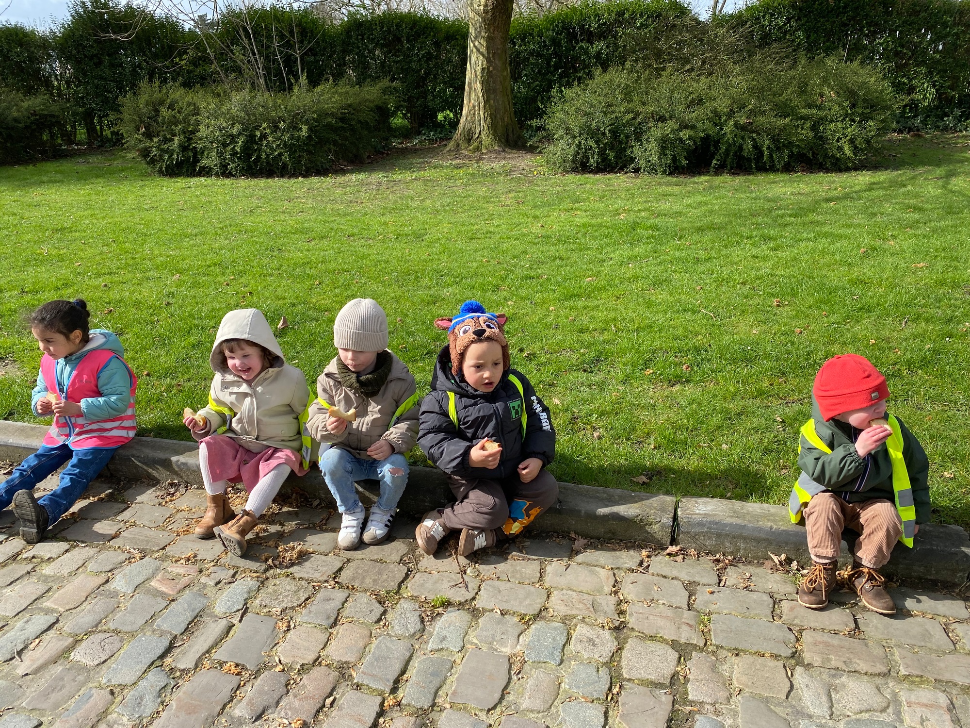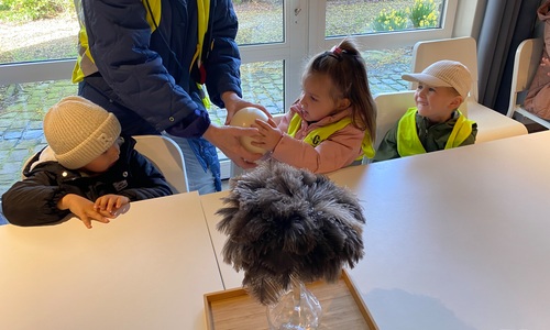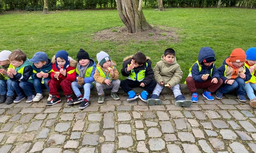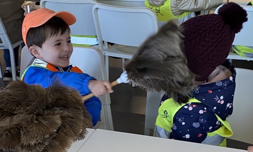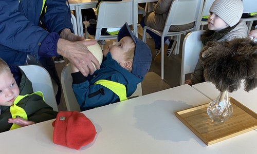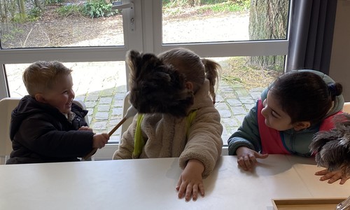 Een ei wegen, een kuikentje strelen, elkaar afstoffen, de grote dieren bekijken en een stukje cake eten...het hoort er allemaal bij