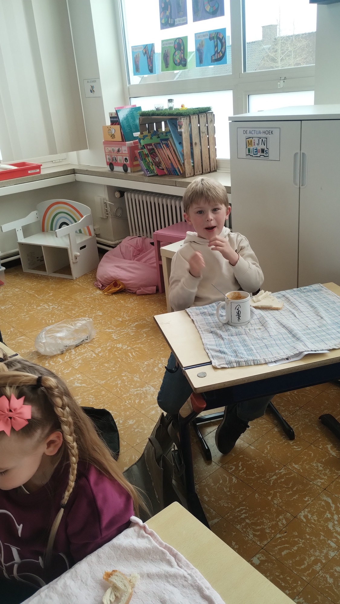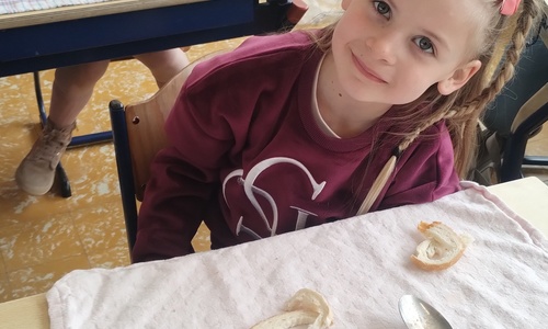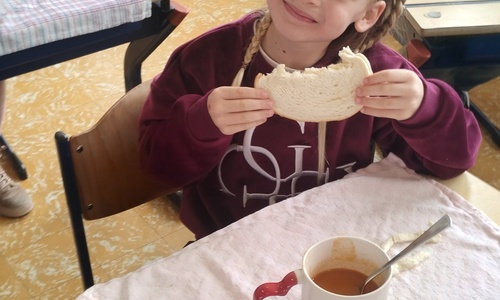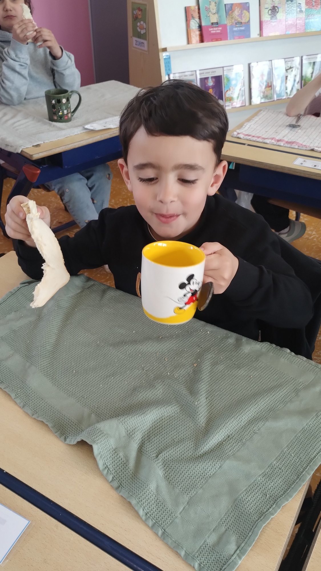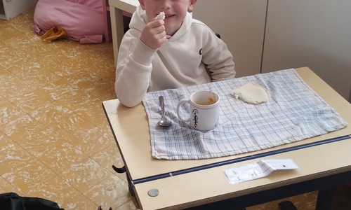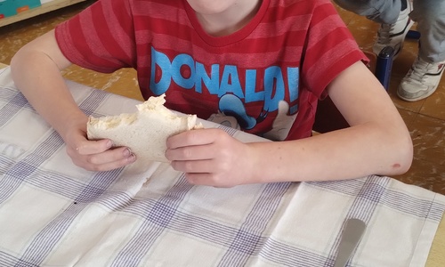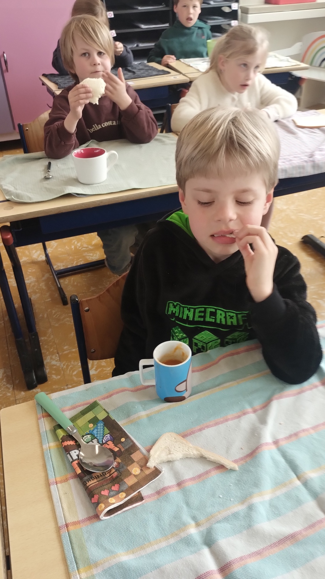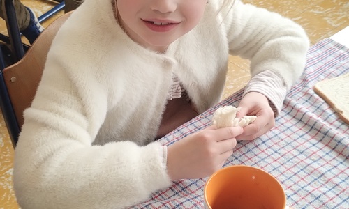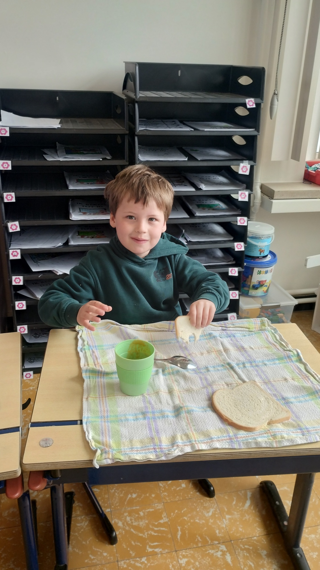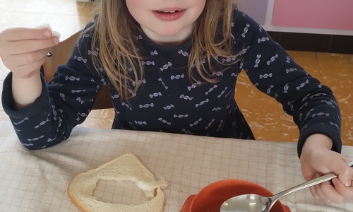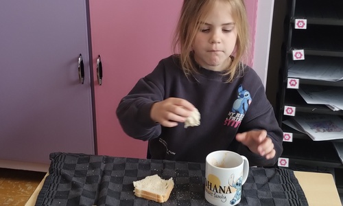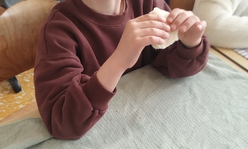 Samen boterhammetjes eten is gezellig. (sober maal)
