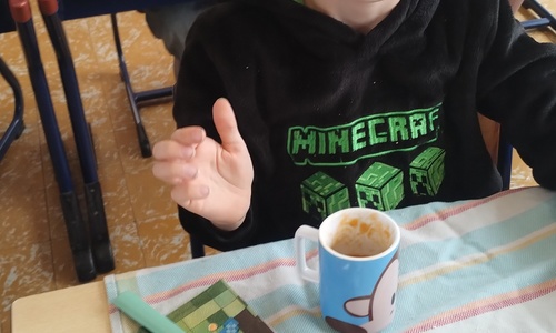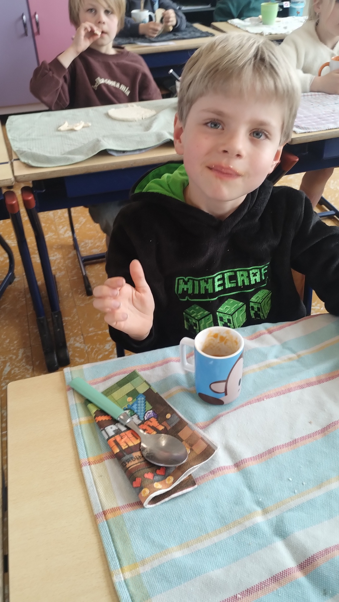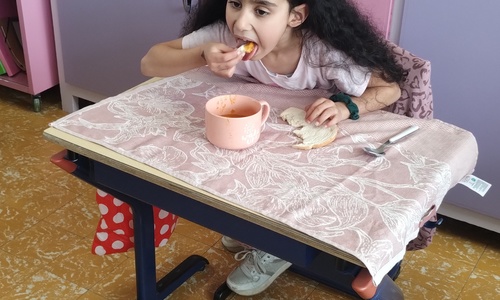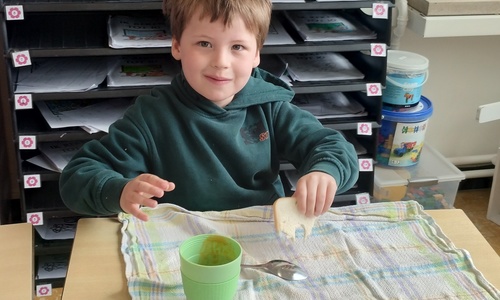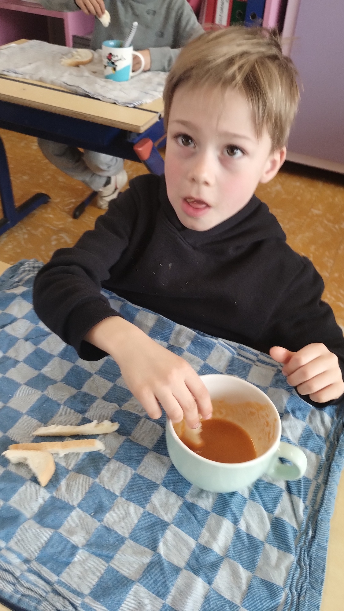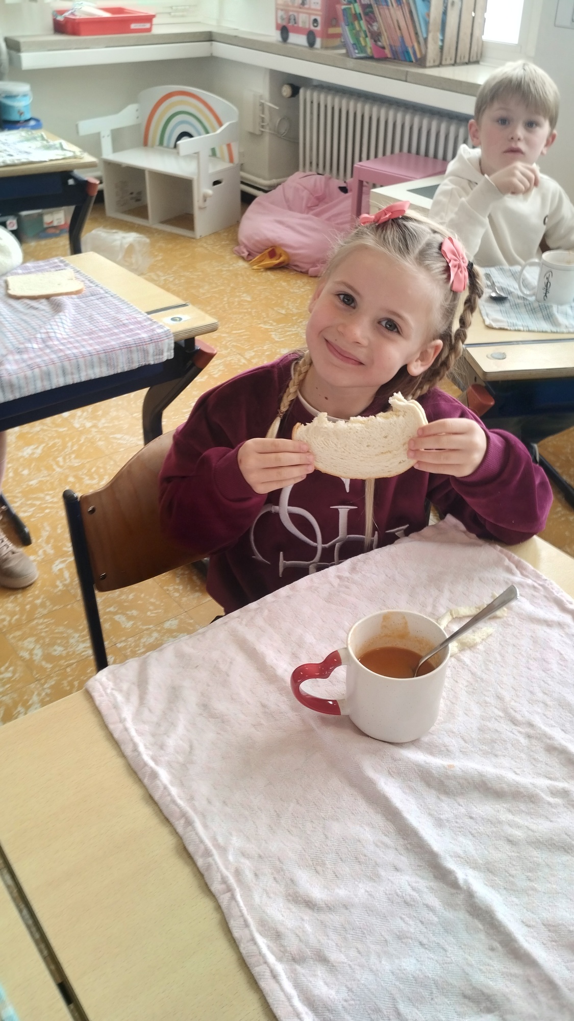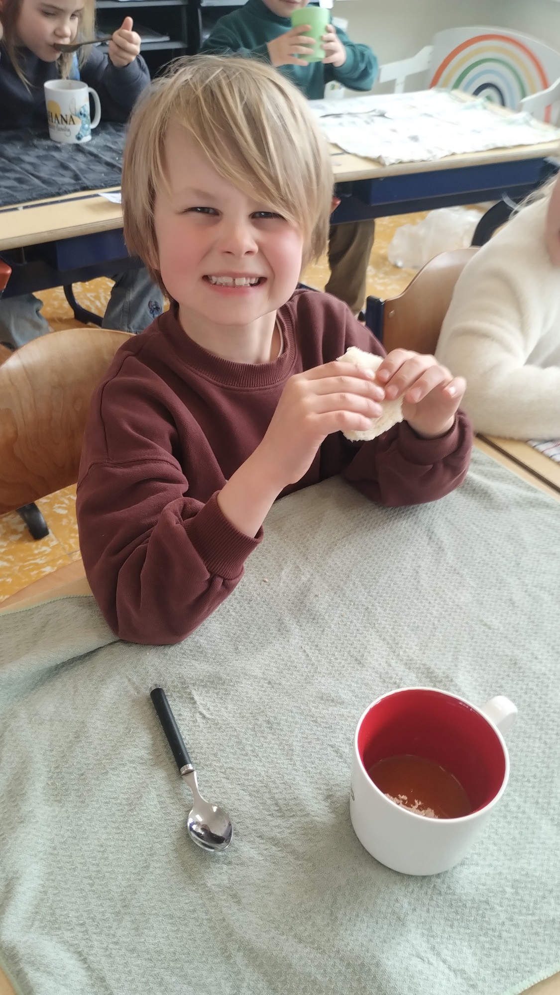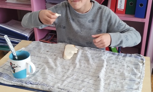 Samen boterhammetjes eten is gezellig. (sober maal)