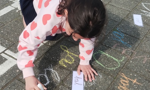 Woorden met korte klinkers oefenen op de speelplaats. (1C)