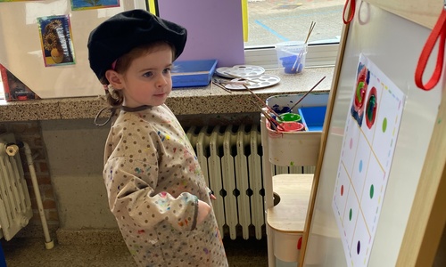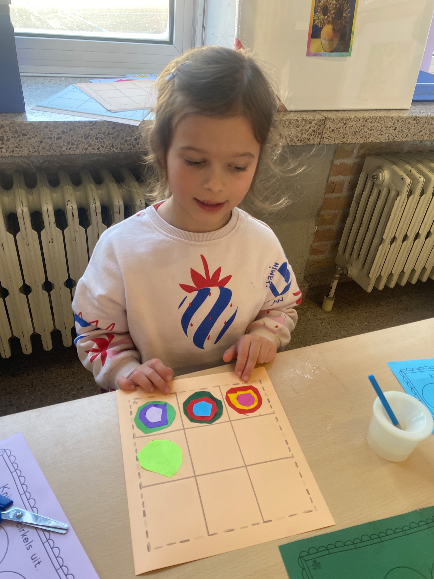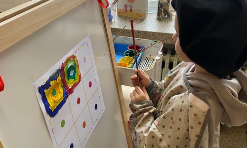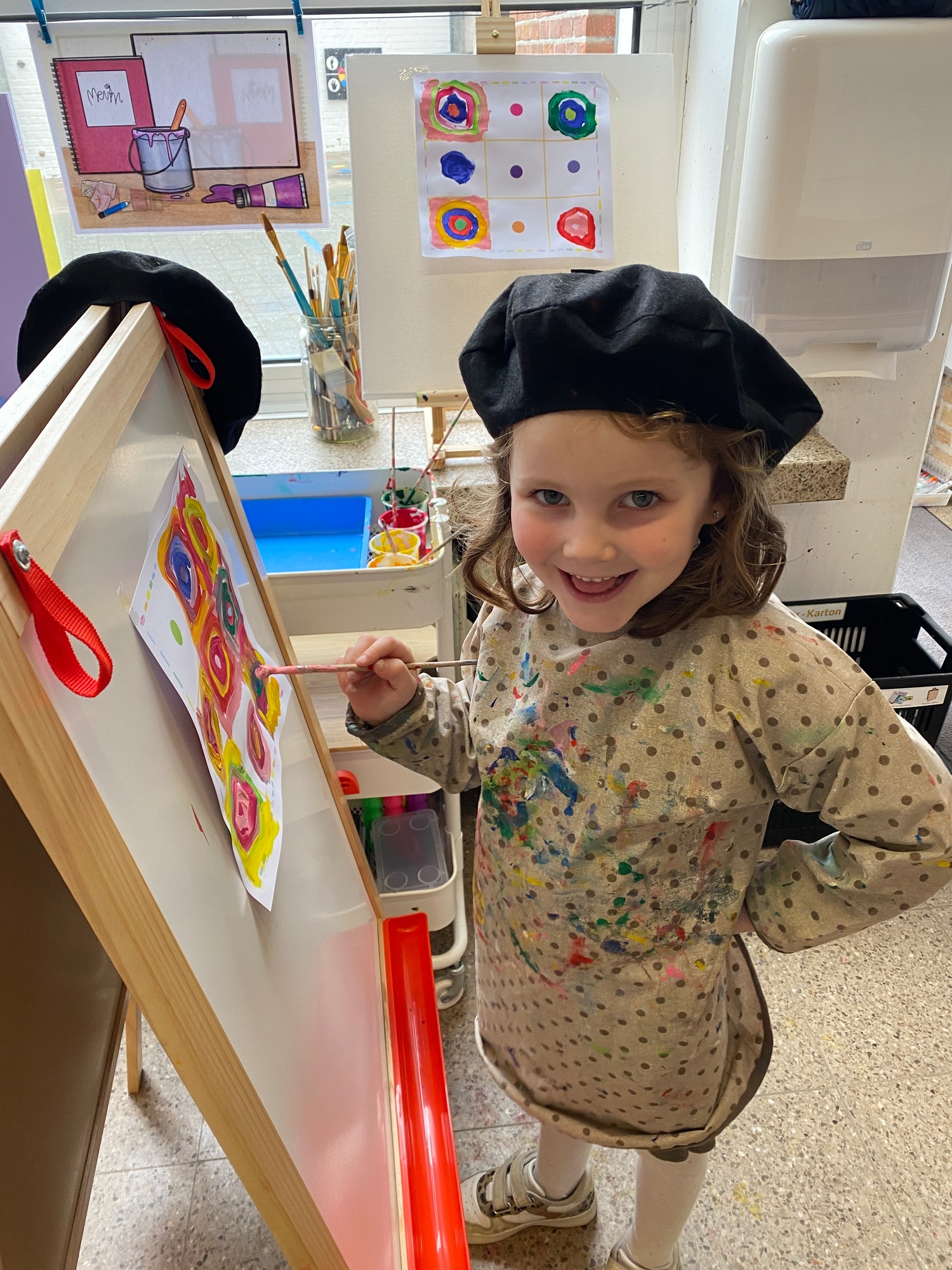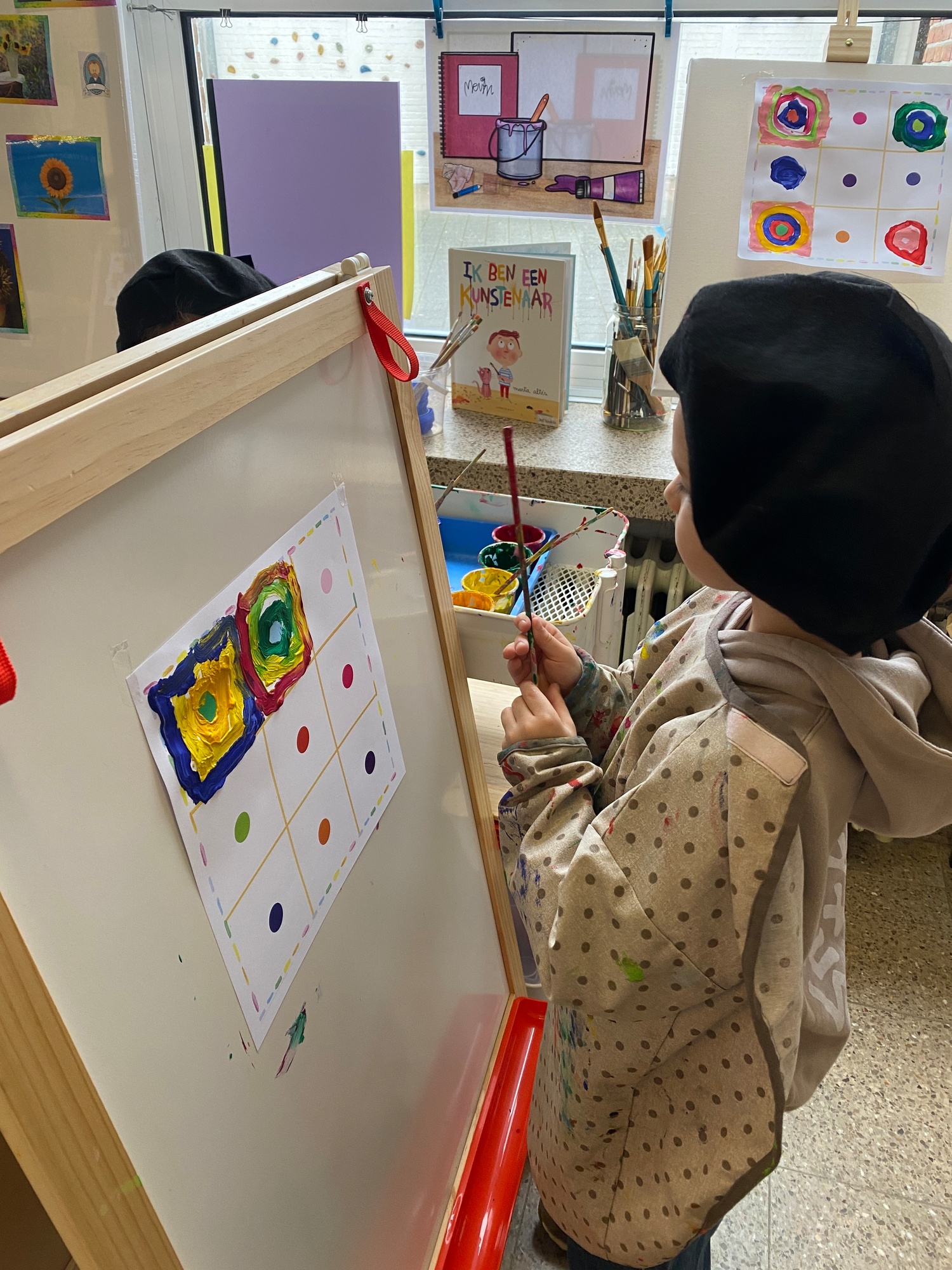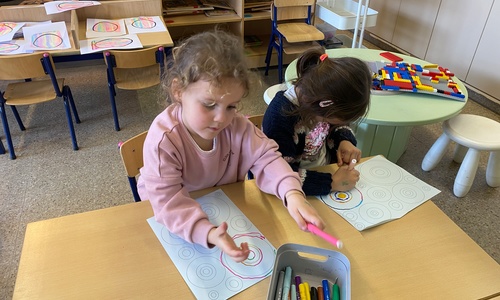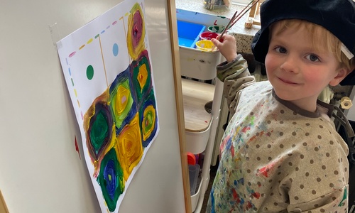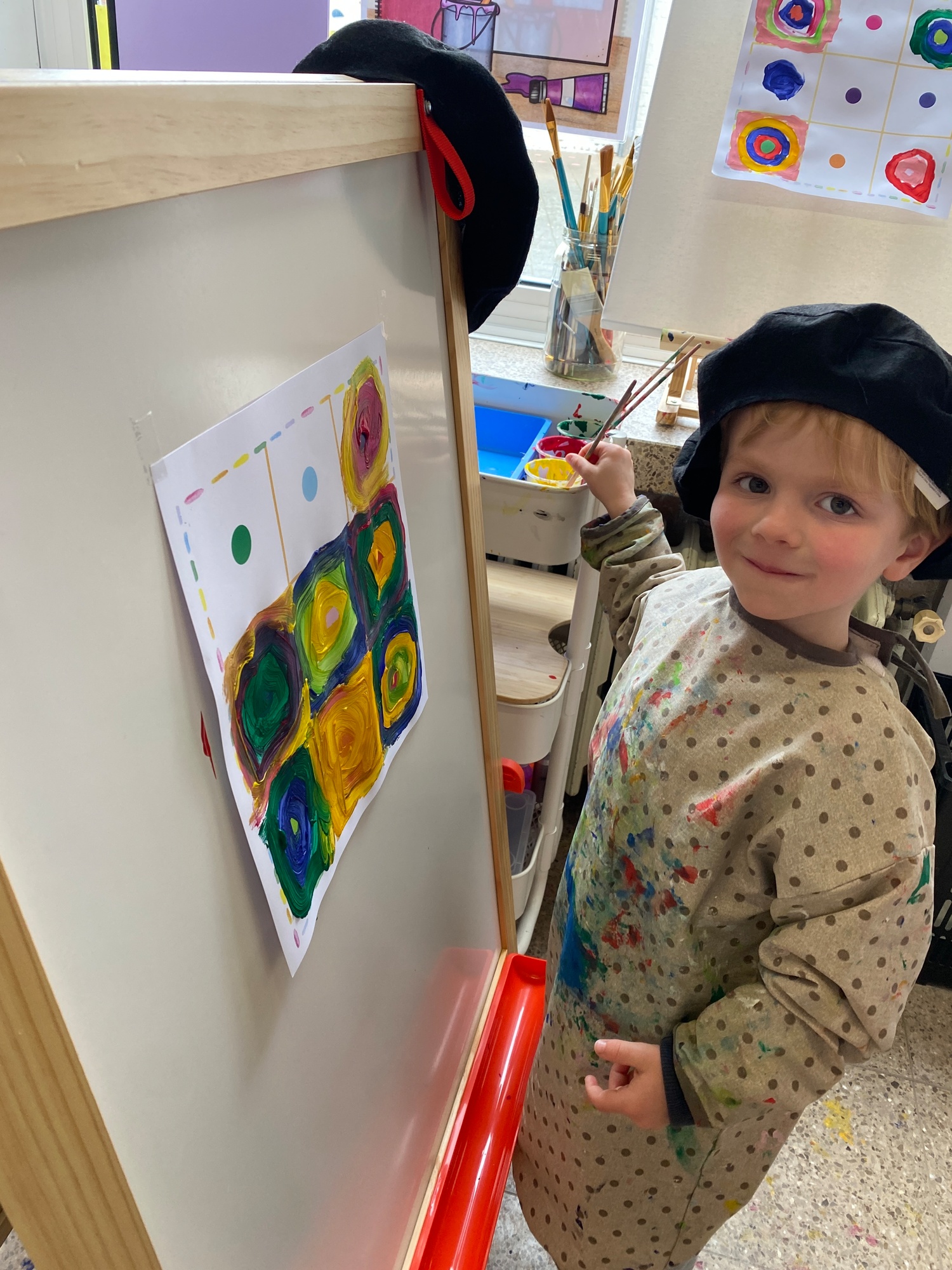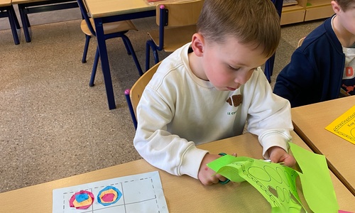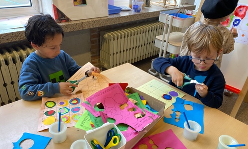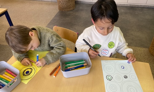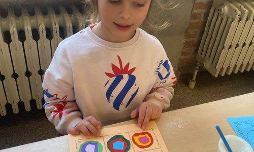 Cirkels groot en cirkels klein. In alle kleuren van wie zou dit toch zijn? Kandinsky wist wat hij tekenen zou. Cirkeltjes voor jou. Wij gingen ook aan de slag met vele cirkels groot en klein.