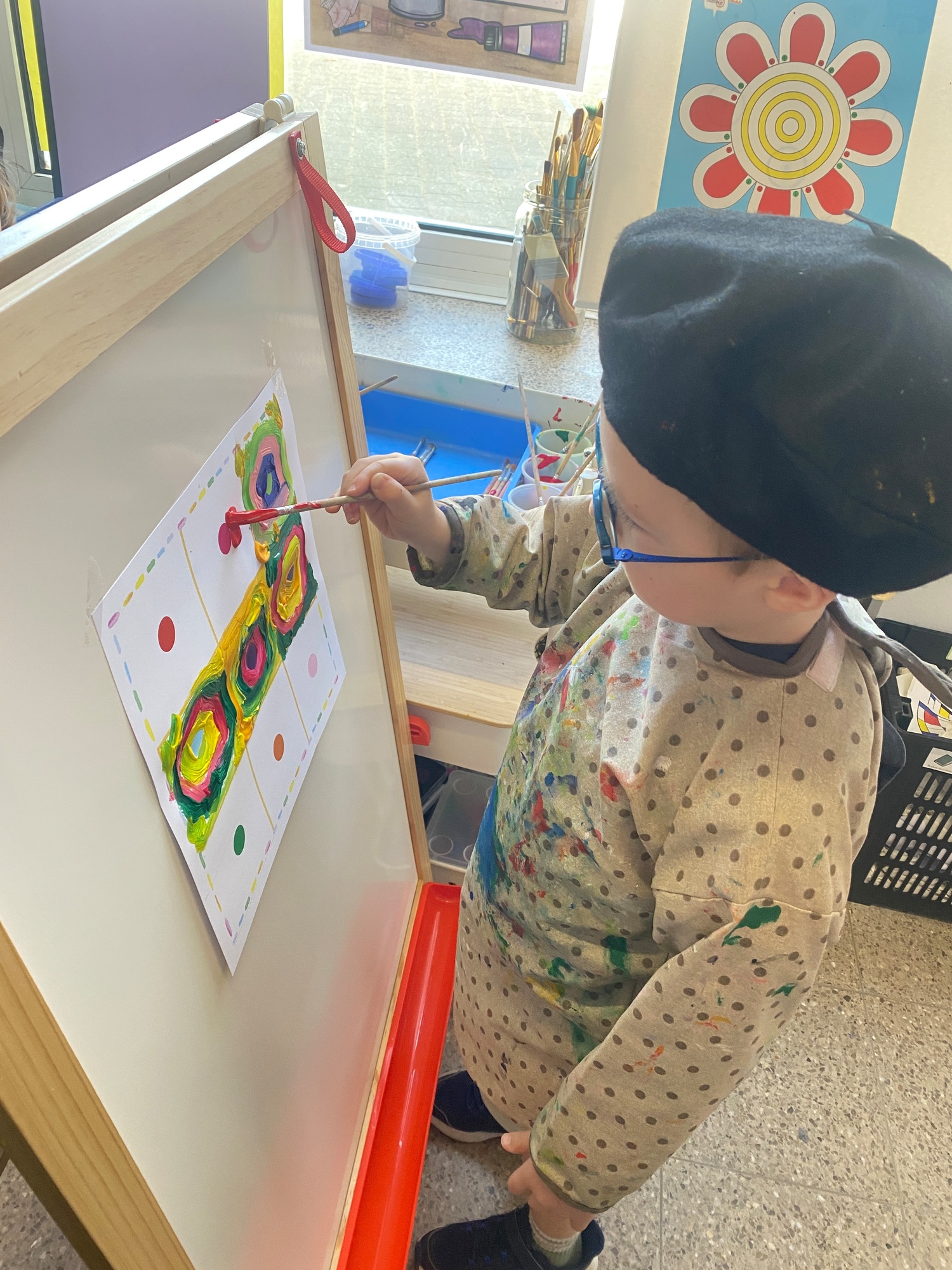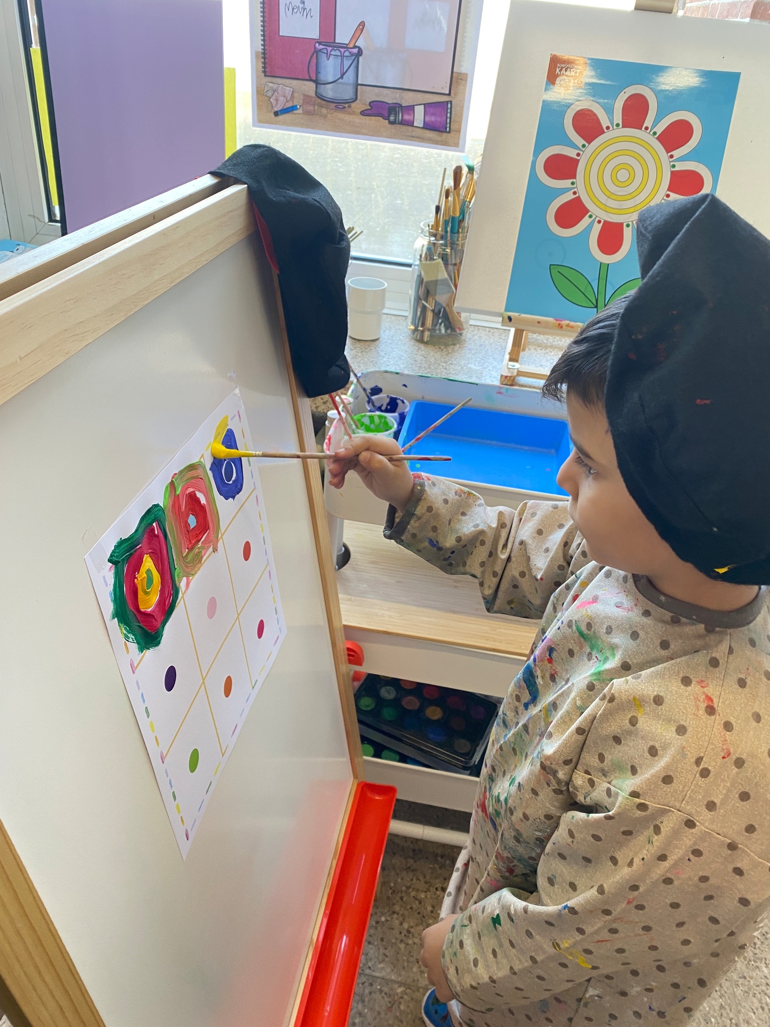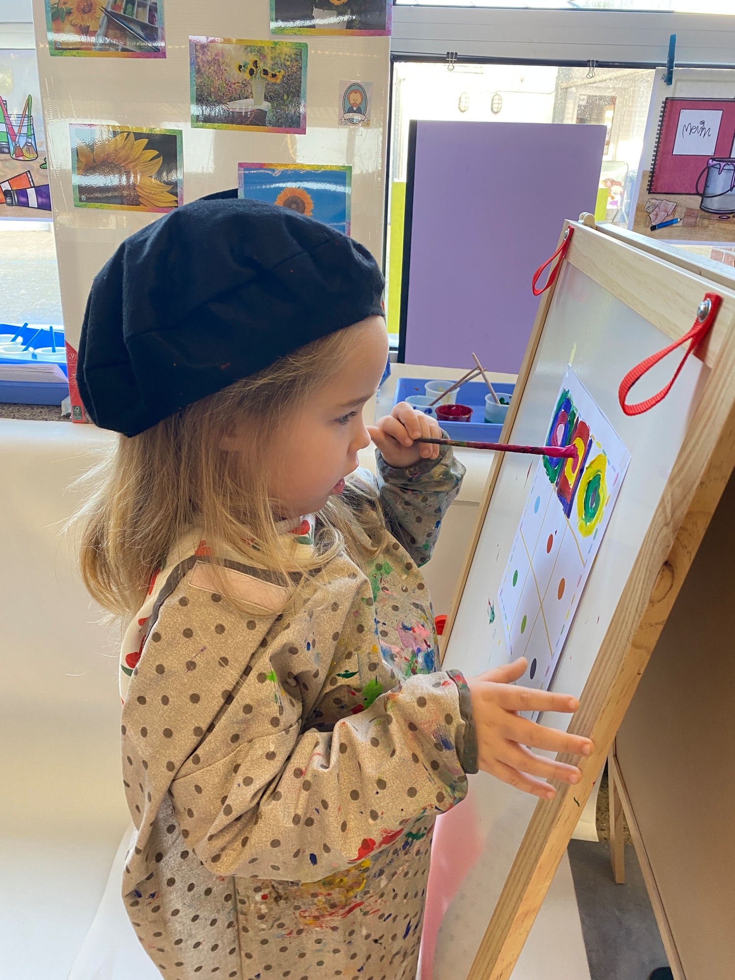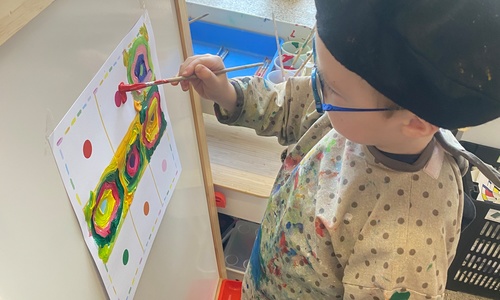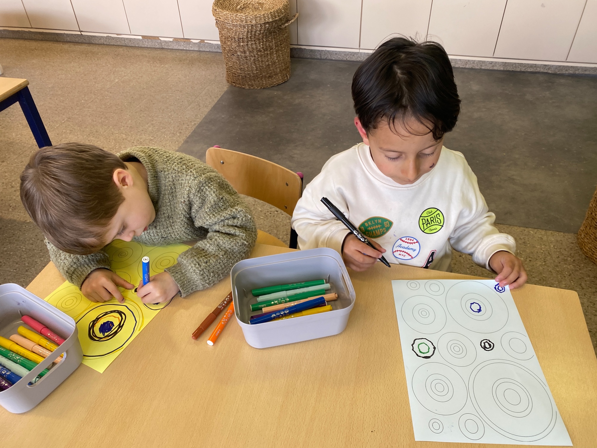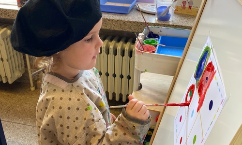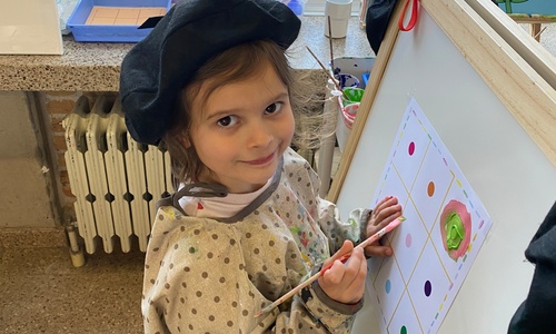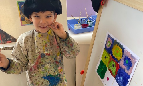 Cirkels groot en cirkels klein. In alle kleuren van wie zou dit toch zijn? Kandinsky wist wat hij tekenen zou. Cirkeltjes voor jou. Wij gingen ook aan de slag met vele cirkels groot en klein.