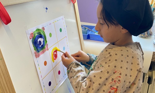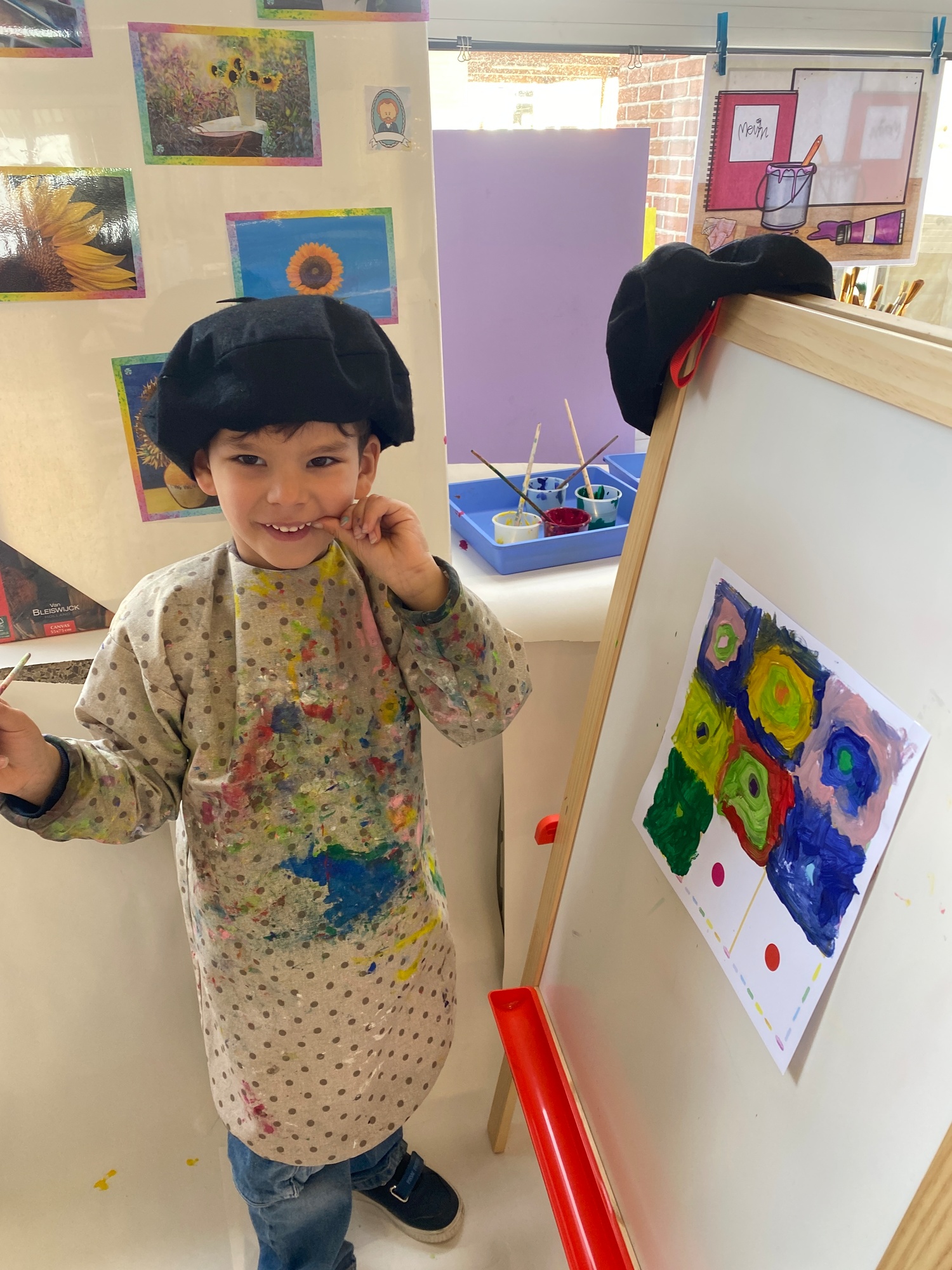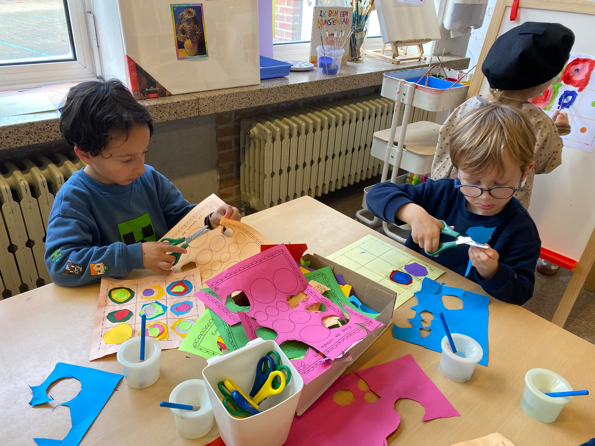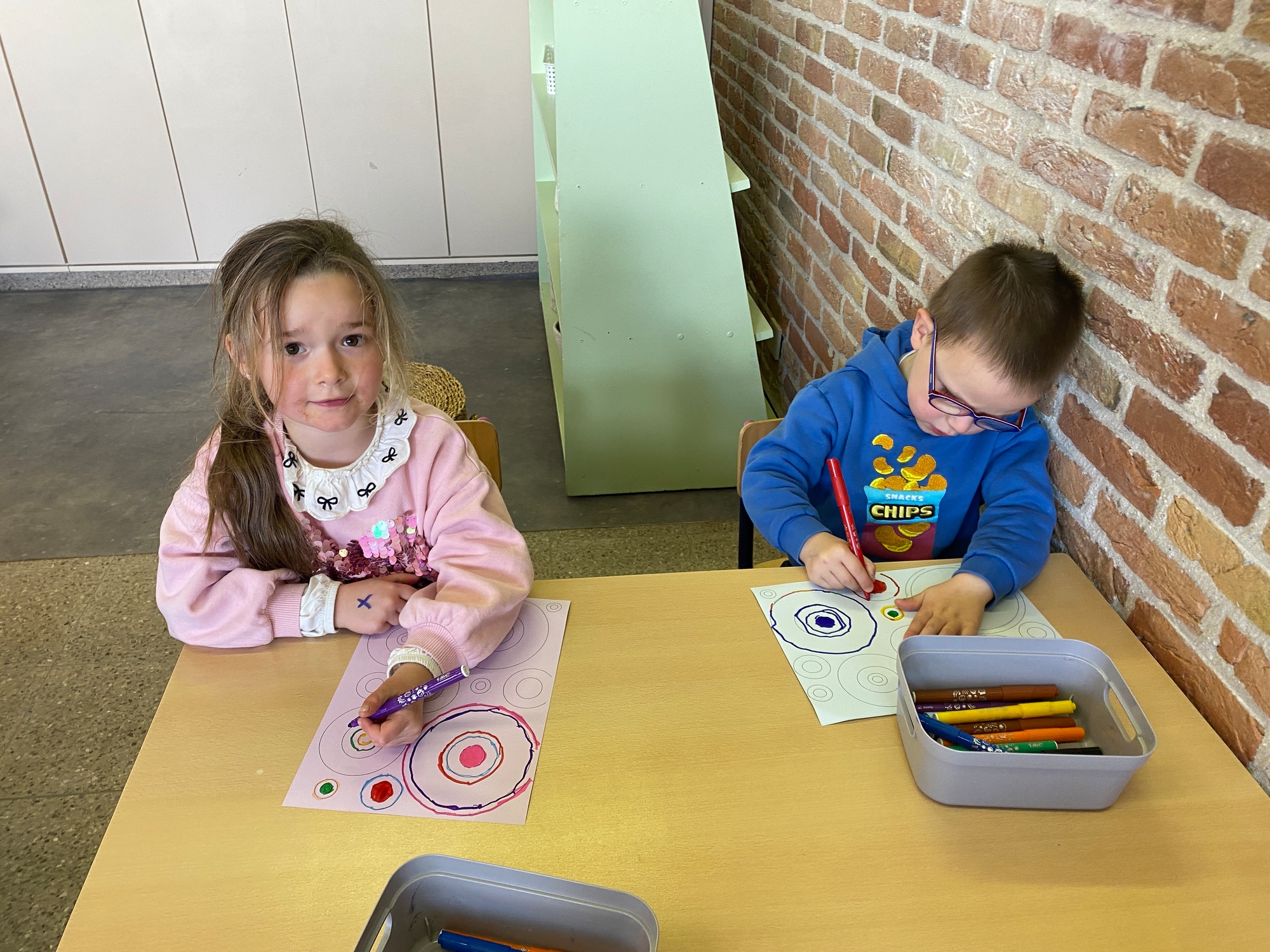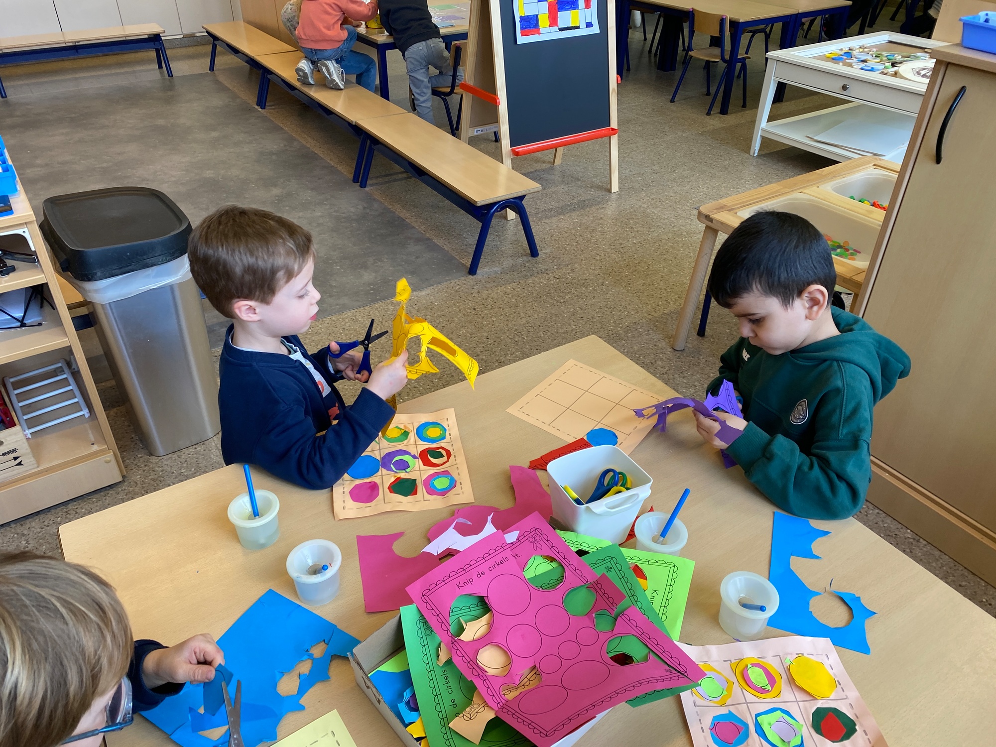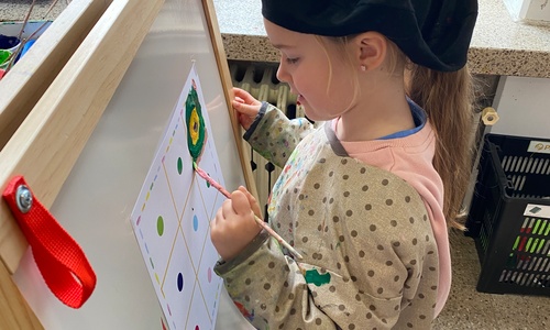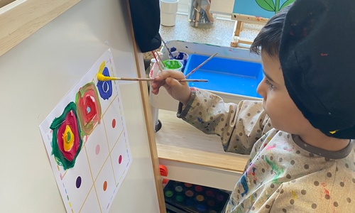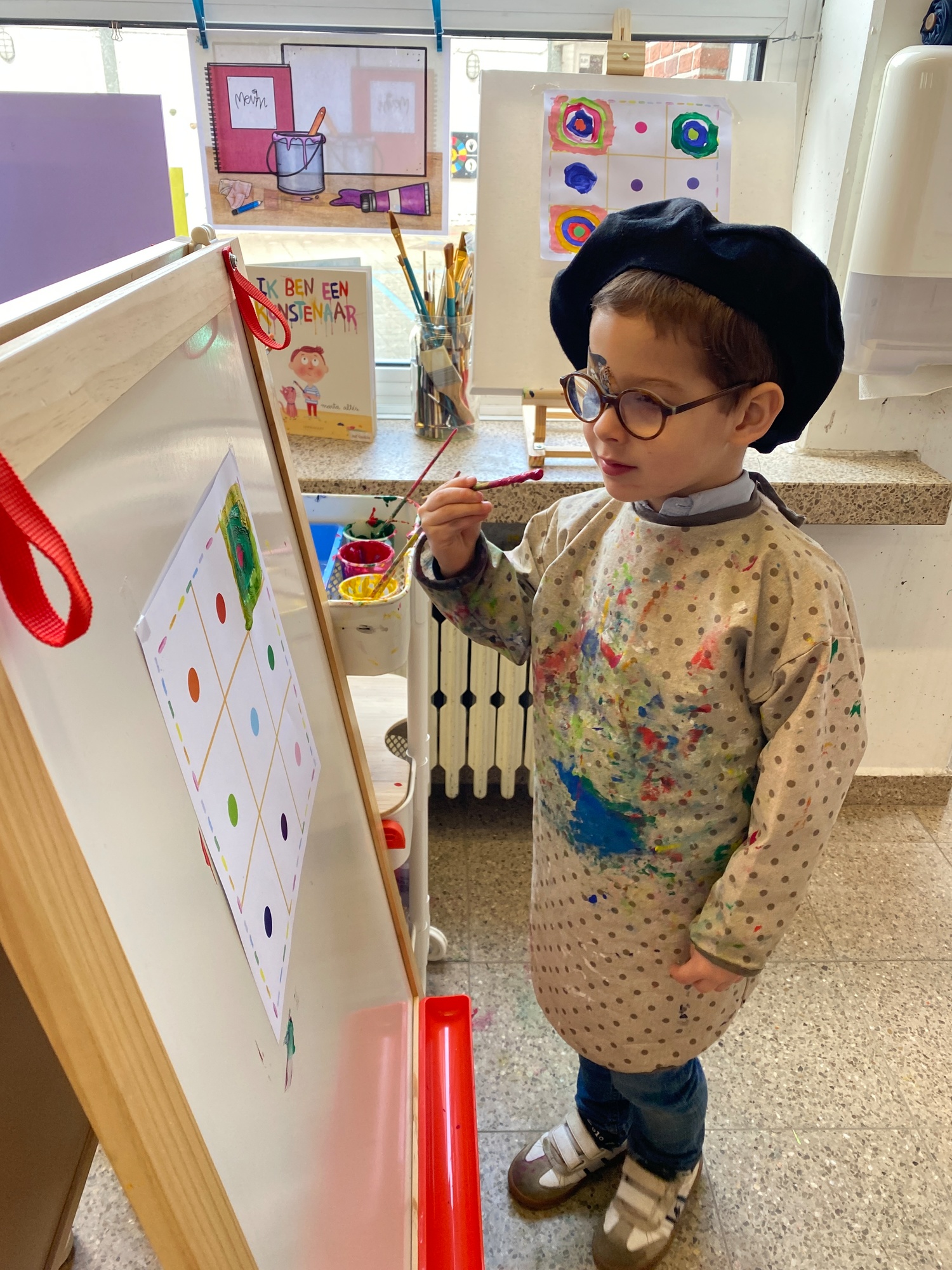 Cirkels groot en cirkels klein. In alle kleuren van wie zou dit toch zijn? Kandinsky wist wat hij tekenen zou. Cirkeltjes voor jou. Wij gingen ook aan de slag met vele cirkels groot en klein.