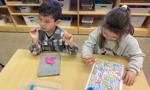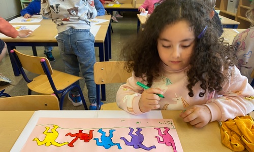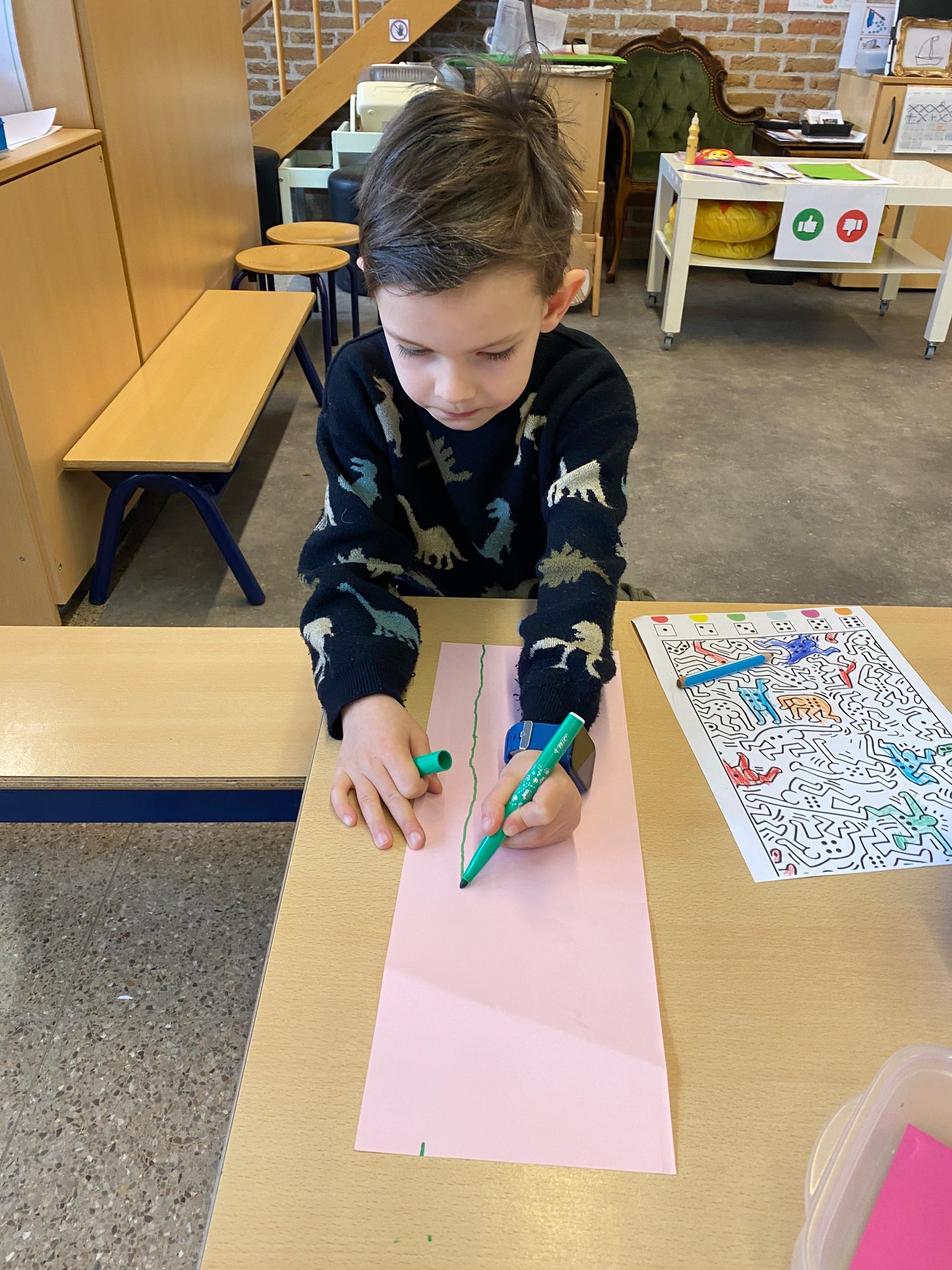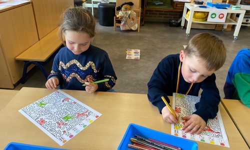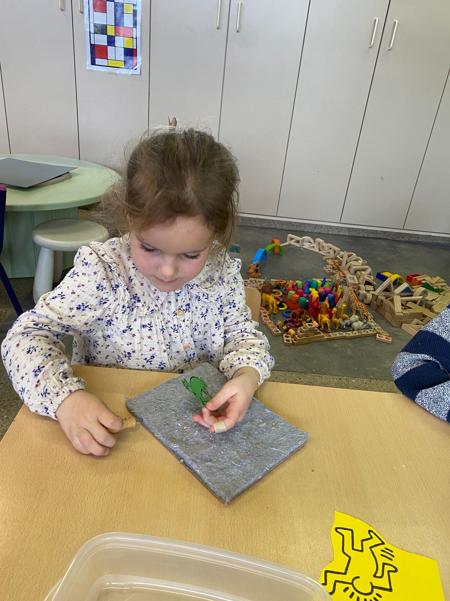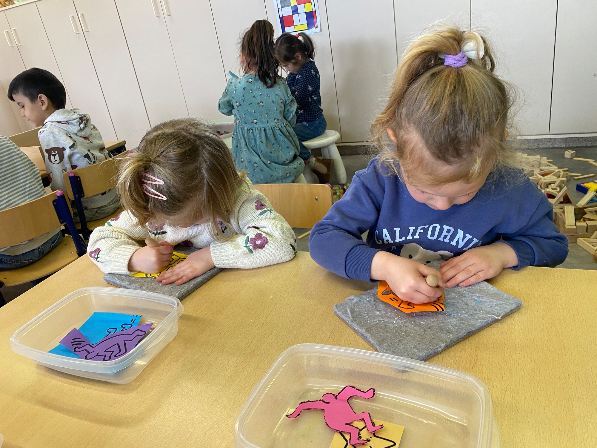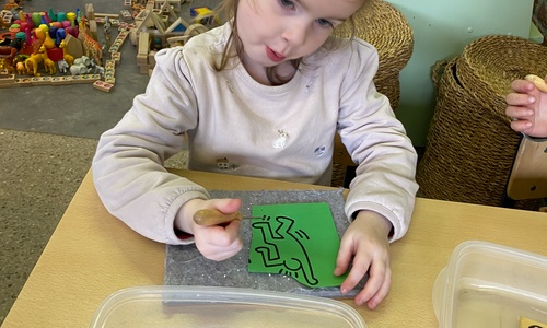 Kleuren volgens legende Mannetjes knippen en plakken in een matrix 5 Mannetjes prikken Een lange rechte lijn tekenen, korte grassprietjes tekenen. Figuurtjes maken met knopen. Keith Haring wist wat hij tekenen zou... Mannetjes voor jou!