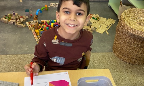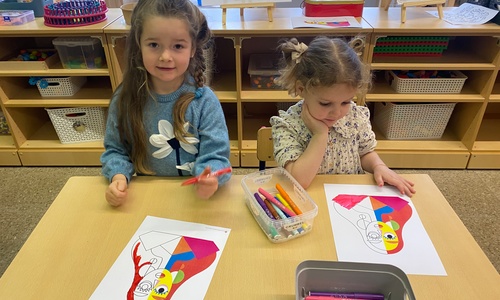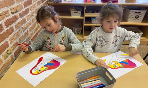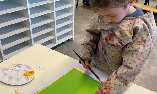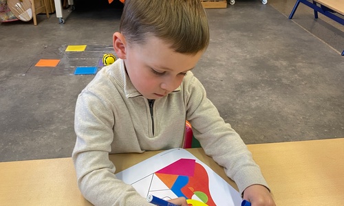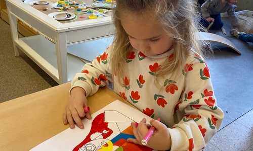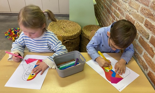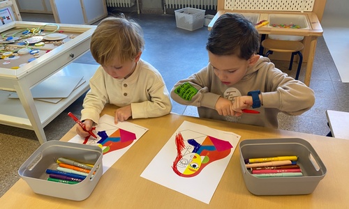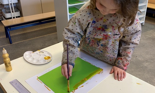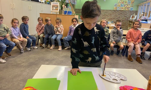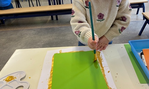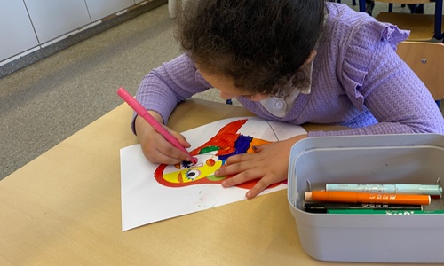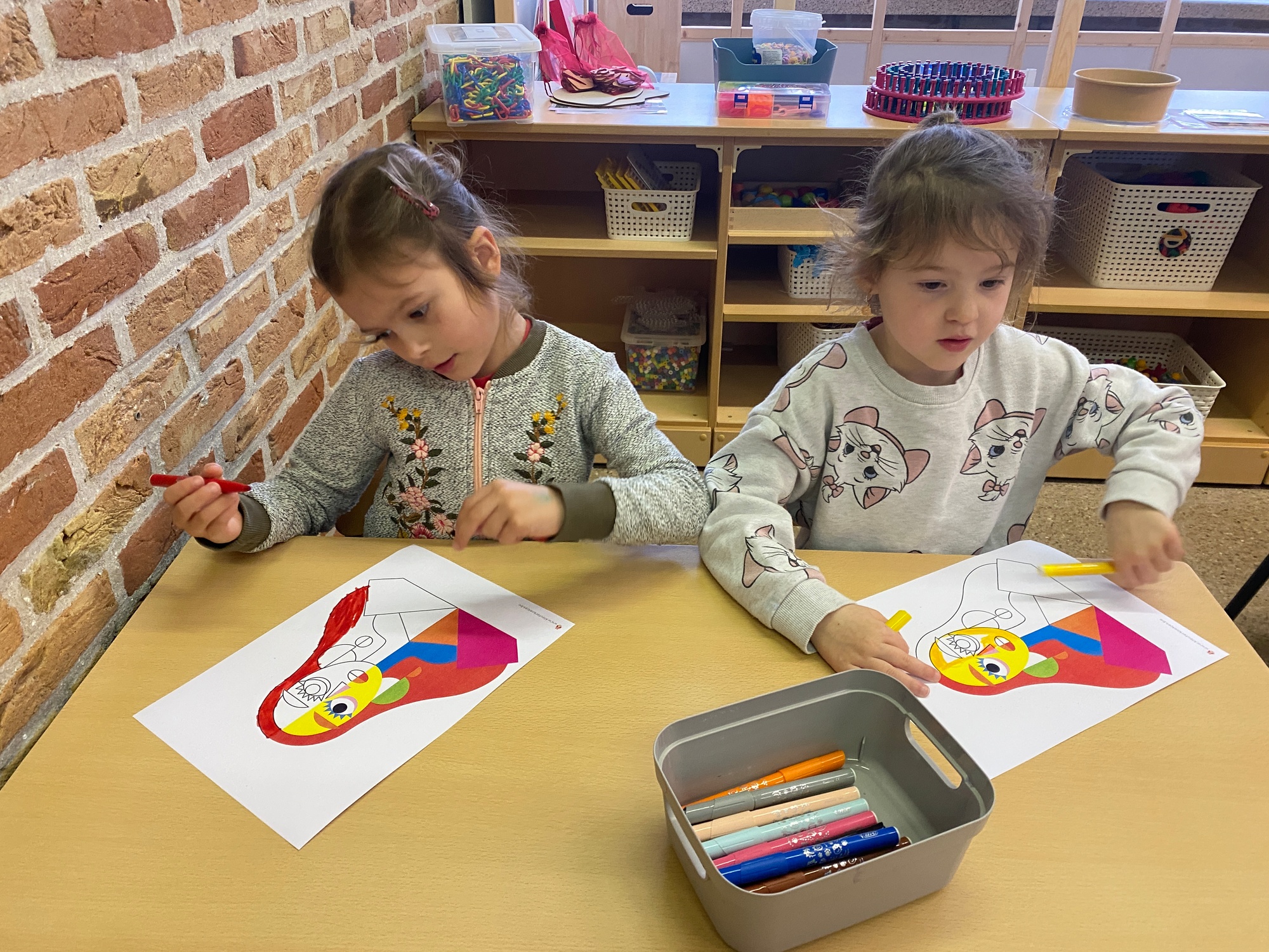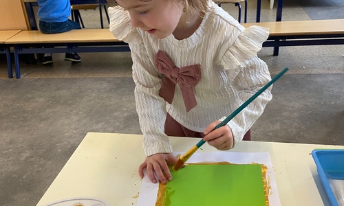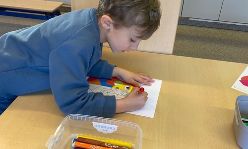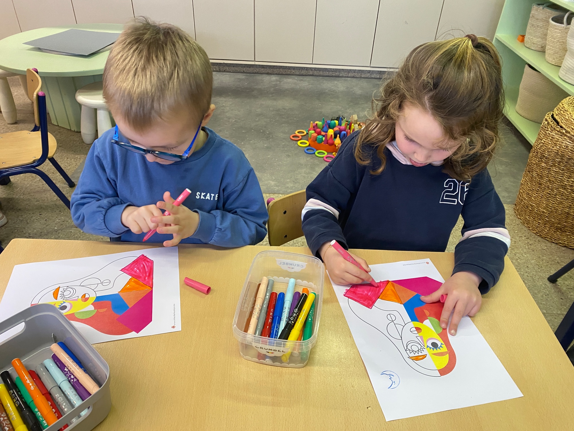 We spiegelden een beeld met stift. Een gek gezicht zoals Picasso maakte. Met een gouden lijst is het een prachtig werkje!