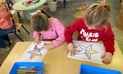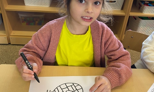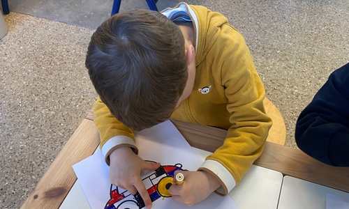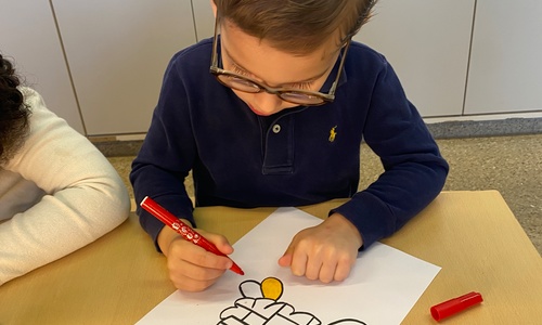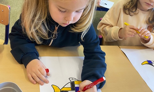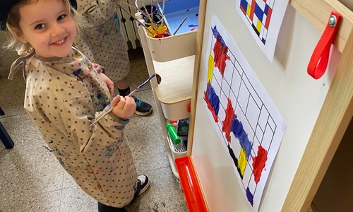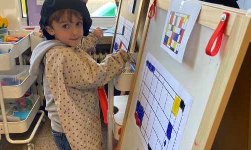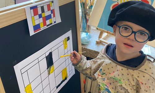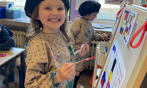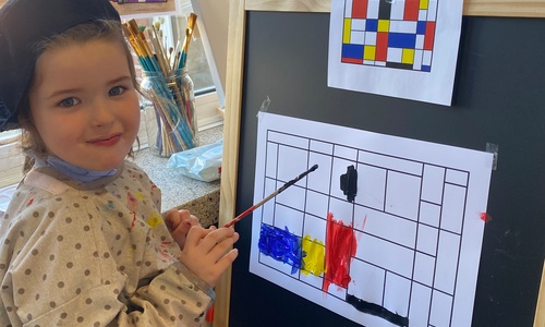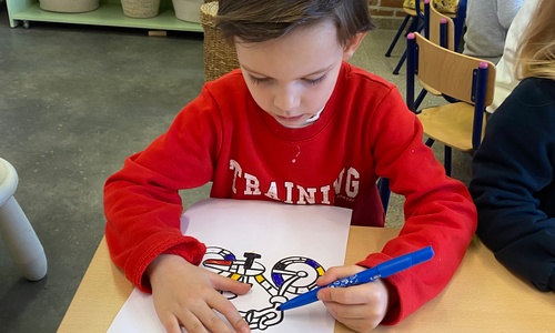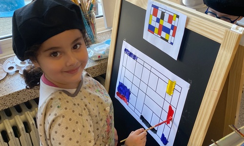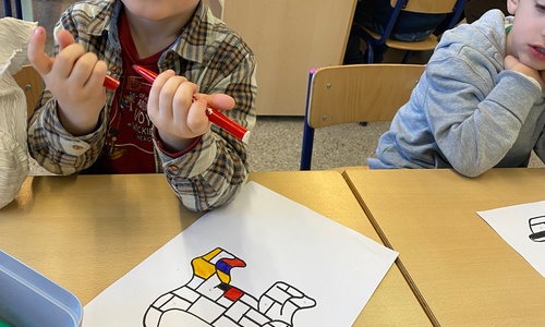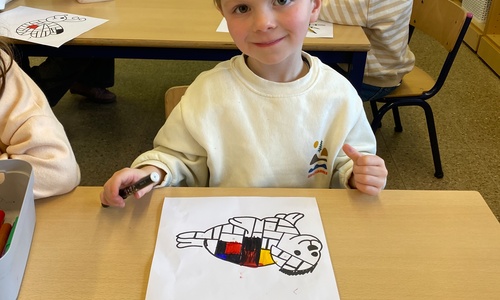 Ook hebben ze hun klassymbool gemaakt in de stijl van Mondriaan.