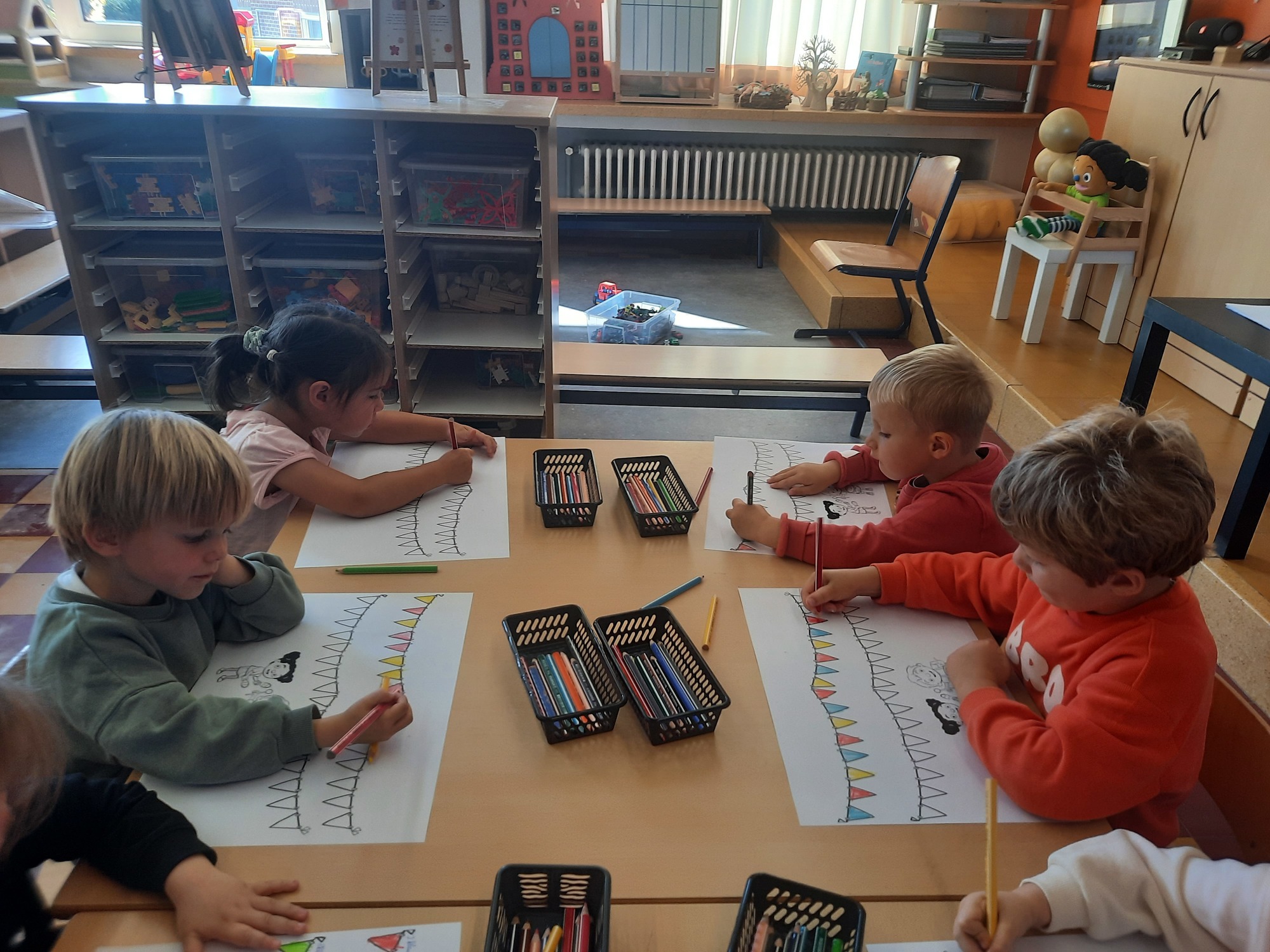2KC: De vlaggenlijn: Maak het juiste patroon.